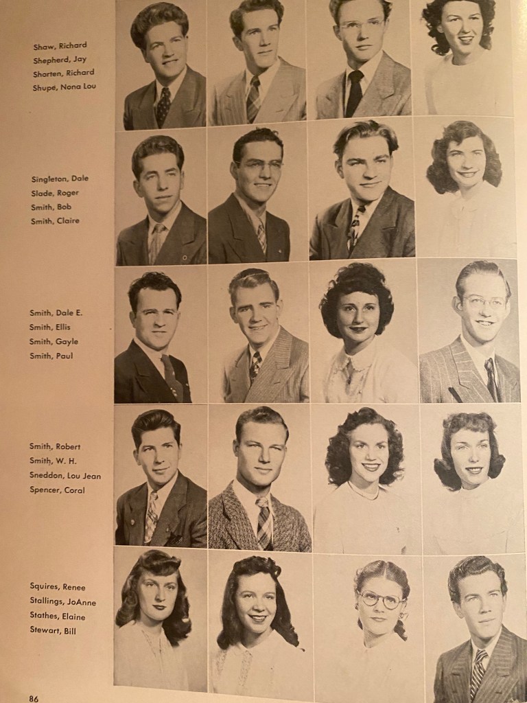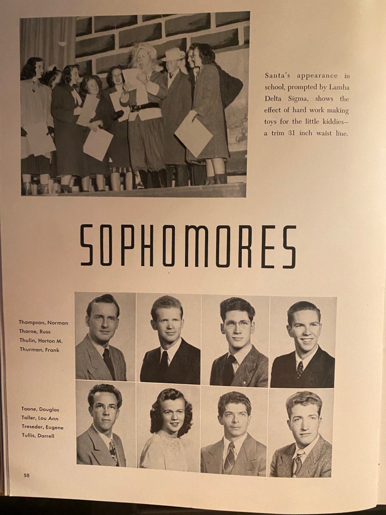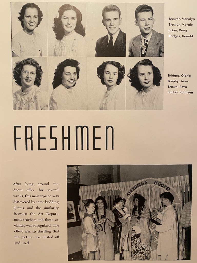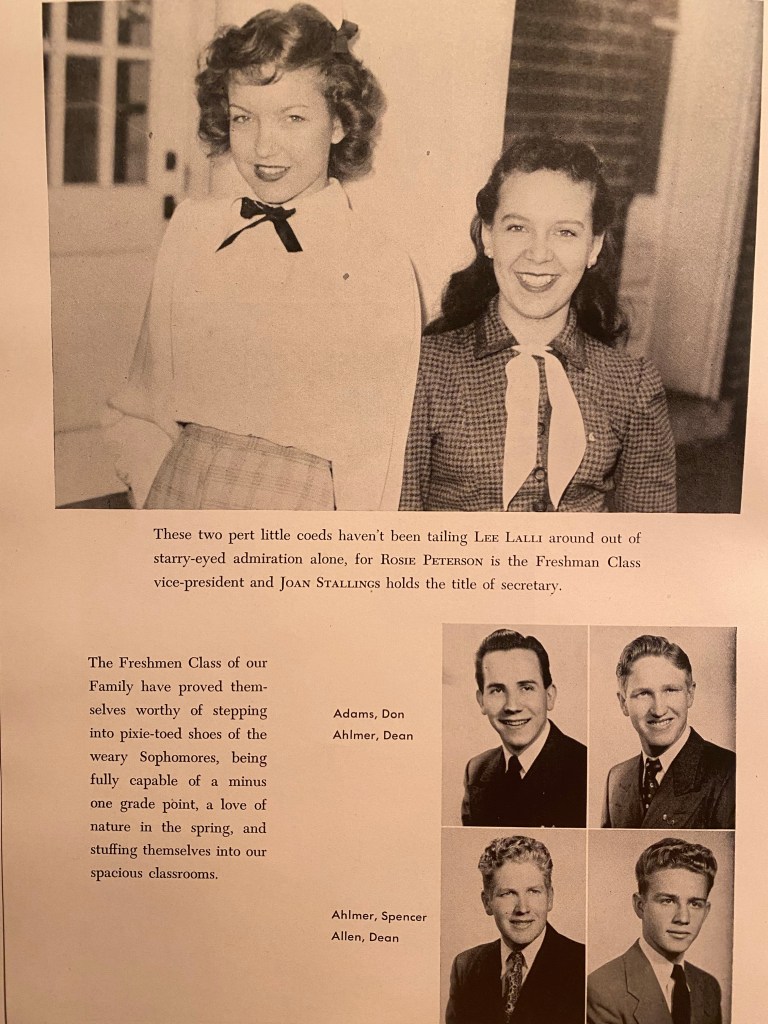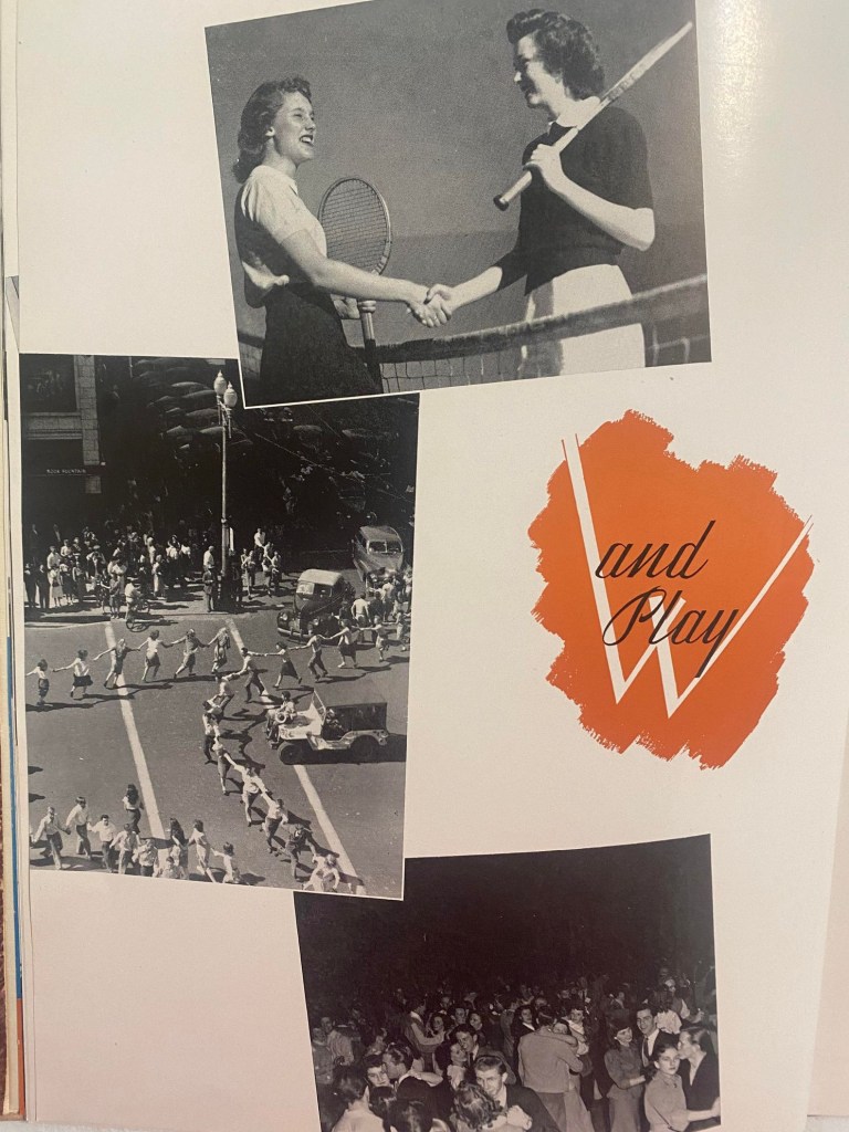 While working on this, thoughts of lost brothers, sweethearts, and friends surrounded me. After all, the war was not long over. This generation of kids had endured much. And the Korean Conflict was just around the bend. How many were married while still in college – and pregnant?