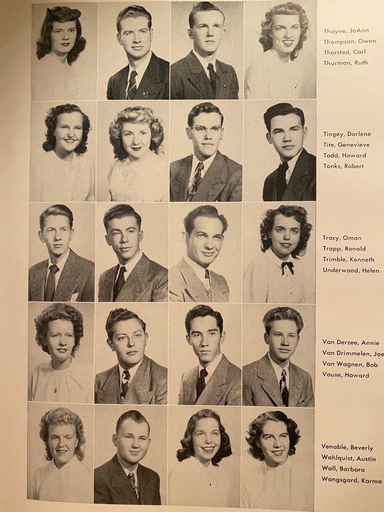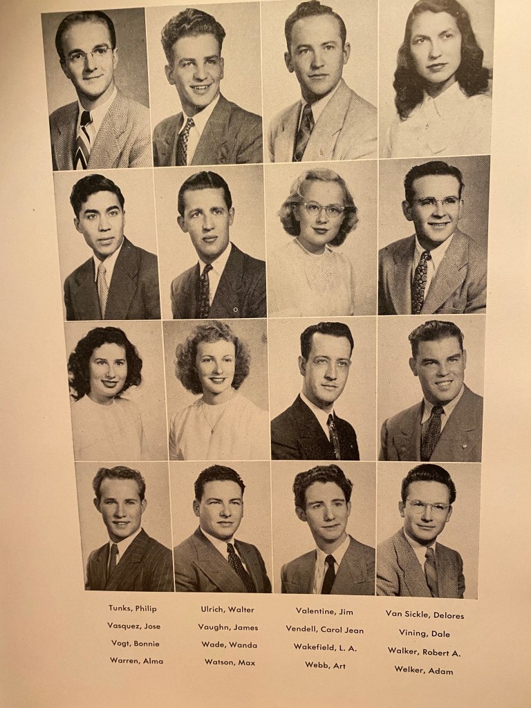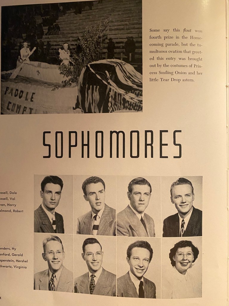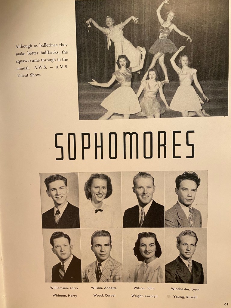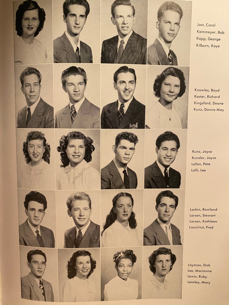 While working on this, thoughts of lost brothers, sweethearts, and friends surrounded me. After all, the war was not long over. This generation of kids had endured much. And the Korean Conflict was just around the bend. How many were married while still in college – and pregnant?