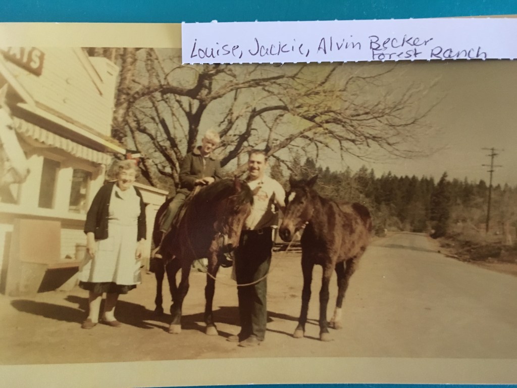 Cora and Perm’s home in Klamath Falls, OregonJacob Becker and his great-gand son Francis “Butch” PhelpsEmilie Louise and Jacob Becker. They were in the parade in Malalla, oregon.Alvin and Doretta Nelson Becker. Doretta was Alvin’s 1st wife. He was a sheep sheerer.Forrest Ranch, CaliforniaBorn 1911 in Oklahoma. She was married to Alvin “Buzz” Becker in 1930 who was born in 1909. She was 16 when she was married. They had a daughter, Ruby Rose Becker, who was born in 1929. At the time of the 1930 census when this information was gathered they were living at 560 East Olney Avey, Bend, Deschutes, Oregon. Alvin was working at a logging camp. He was 21 years old. Her father was born in Kansas. Her mother was born in Tennessee.CoraBox Factory in Prineville, OregonDee McGuffy and Grandma BeckerCoraGrandma Becker is on the far leftBack row: Sophie Becker Gibson, ?, ?, Jacob Becker