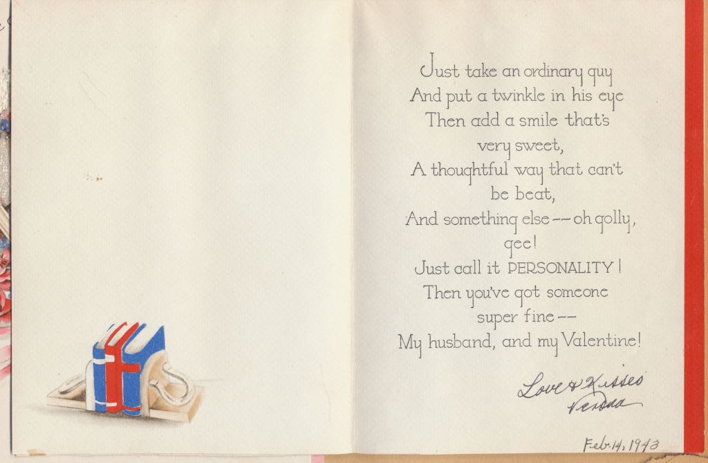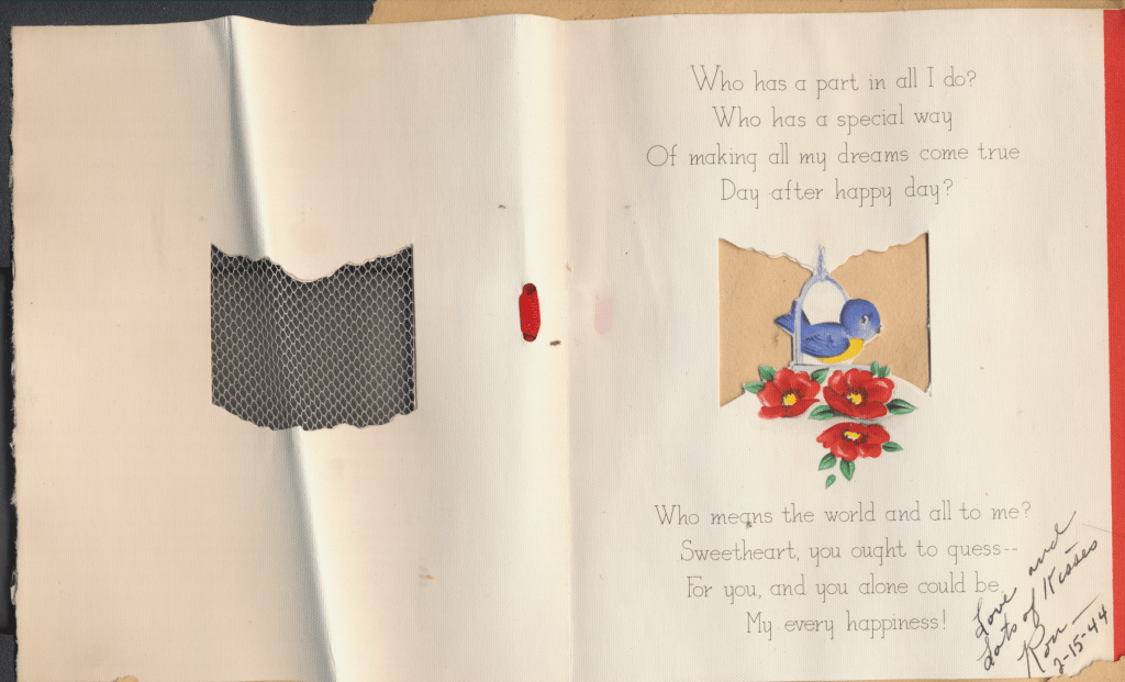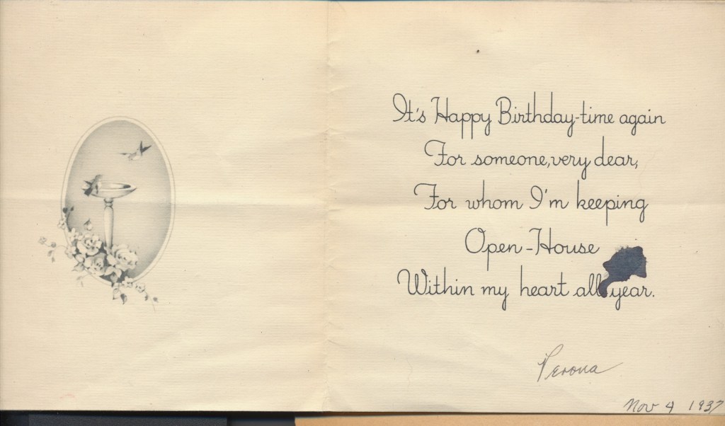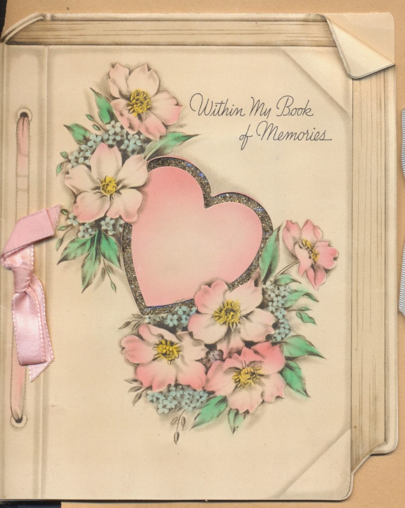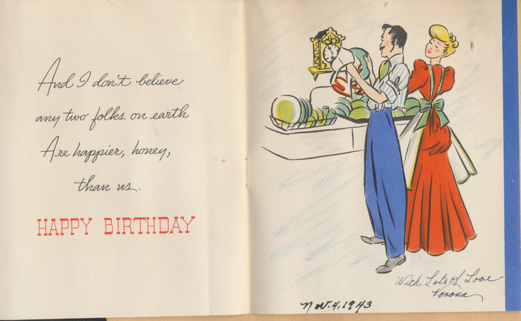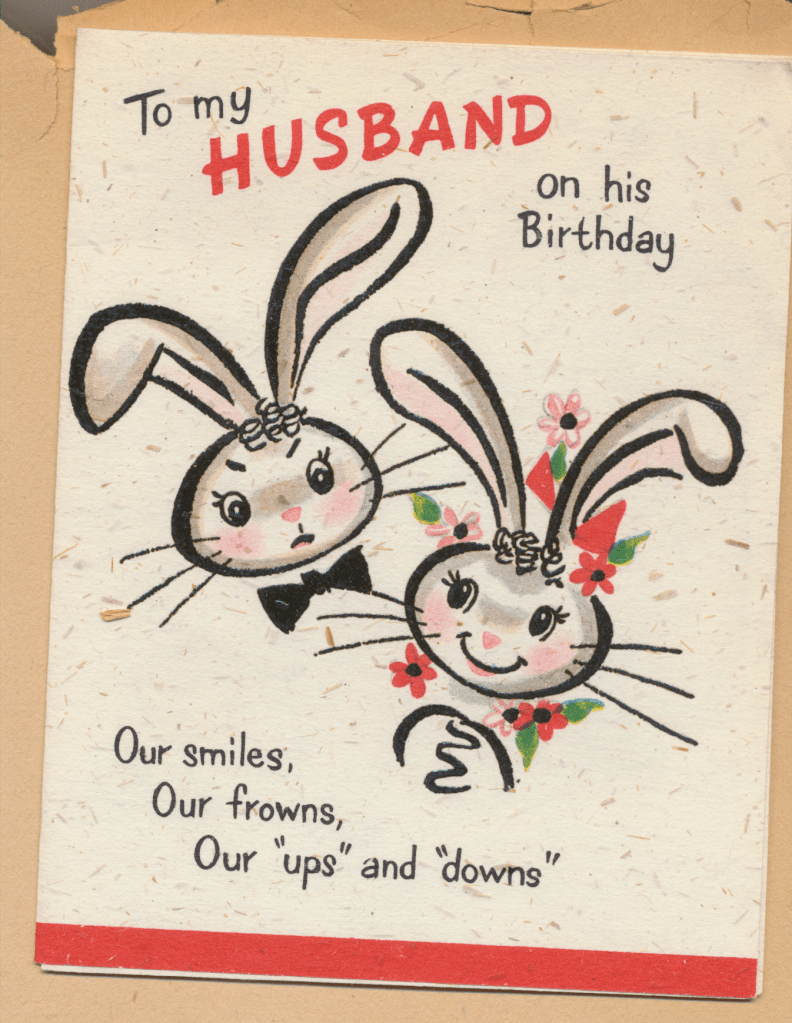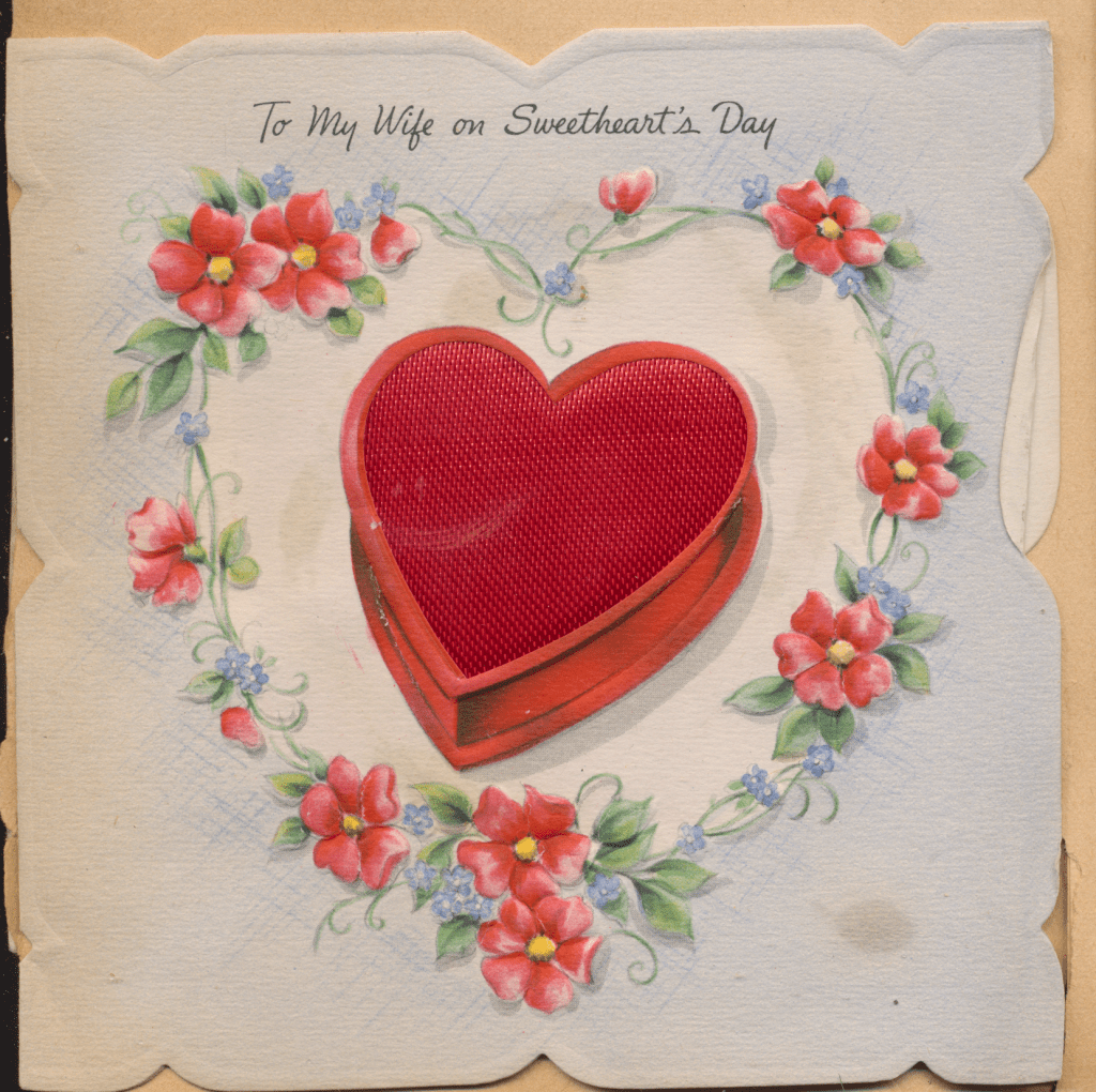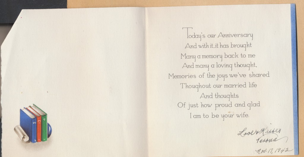 I came across the following treasure of a love story between Ronald and Verona. The cards span from 1937 to 1968. The one clue as to their last name was in a card labeled by their small son, Scott, when he put his full name as little ones do when they are learning to write. Curious, I found more information about them on familysearch.org. There, their daughter, Jan, added photos of this family giving additional life to the cards. Immerse with me as we travel in awe at their devotion to one another. Mystery still surrounds the cards such as what happened to Scott and Jan. And how did I end up with this special song of the heart.