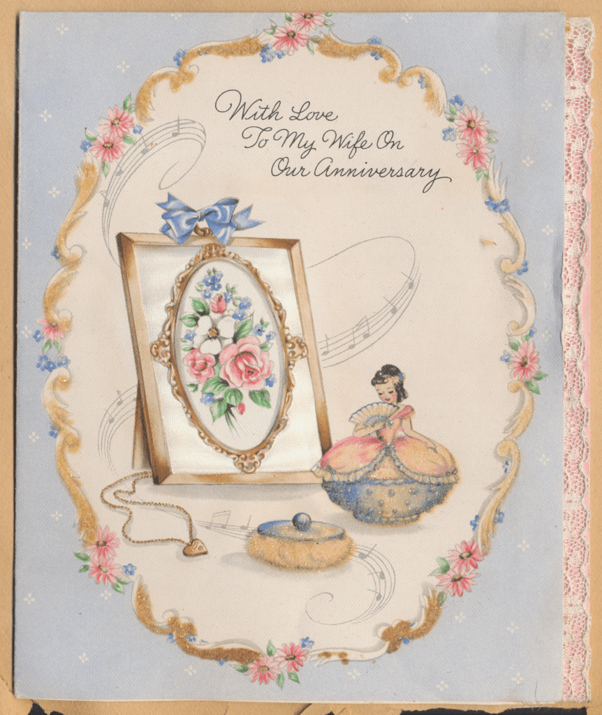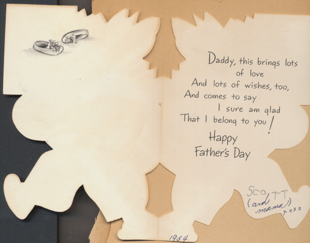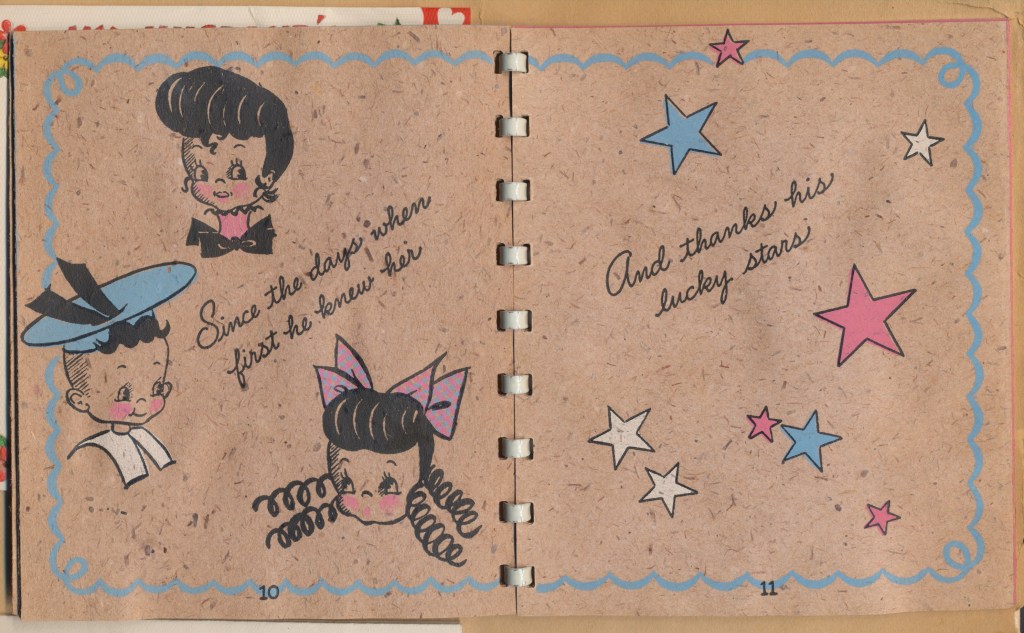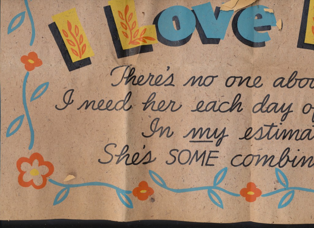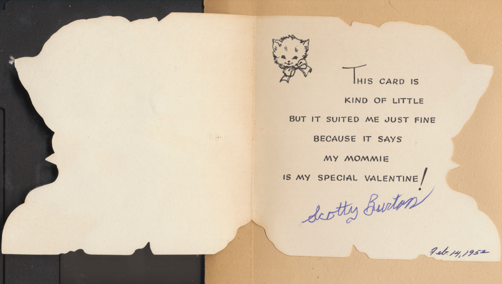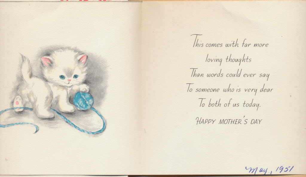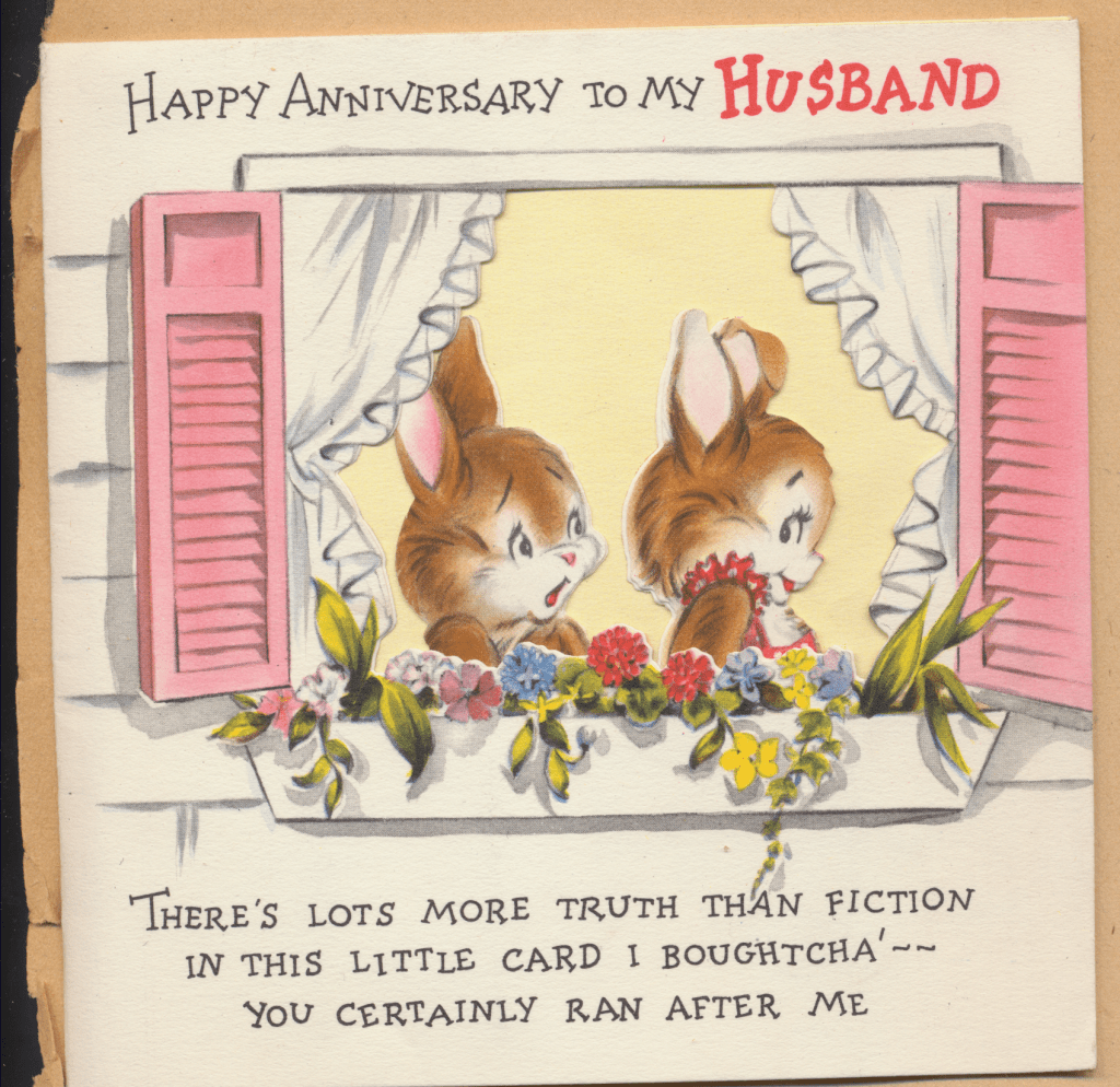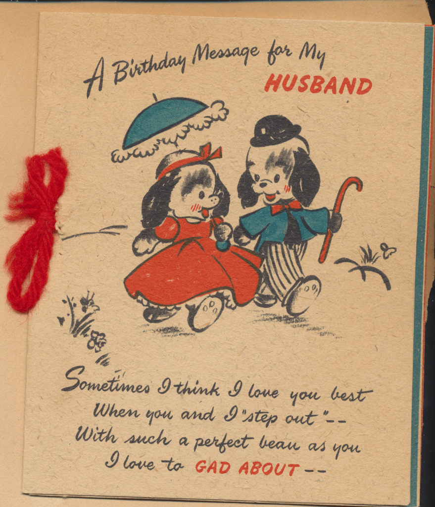 I came across the following treasure of a love story between Ronald and Verona. The cards span from 1937 to 1968. The one clue as to their last name was in a card labeled by their small son, Scott, when he put his full name as little ones do when they are learning to write. Curious, I found more information about them on familysearch.org. There, their daughter, Jan, added photos of this family giving additional life to the cards. Immerse with me as we travel in awe at their devotion to one another. Mystery still surrounds the cards such as what happened to Scott and Jan. And how did I end up with this special song of the heart.