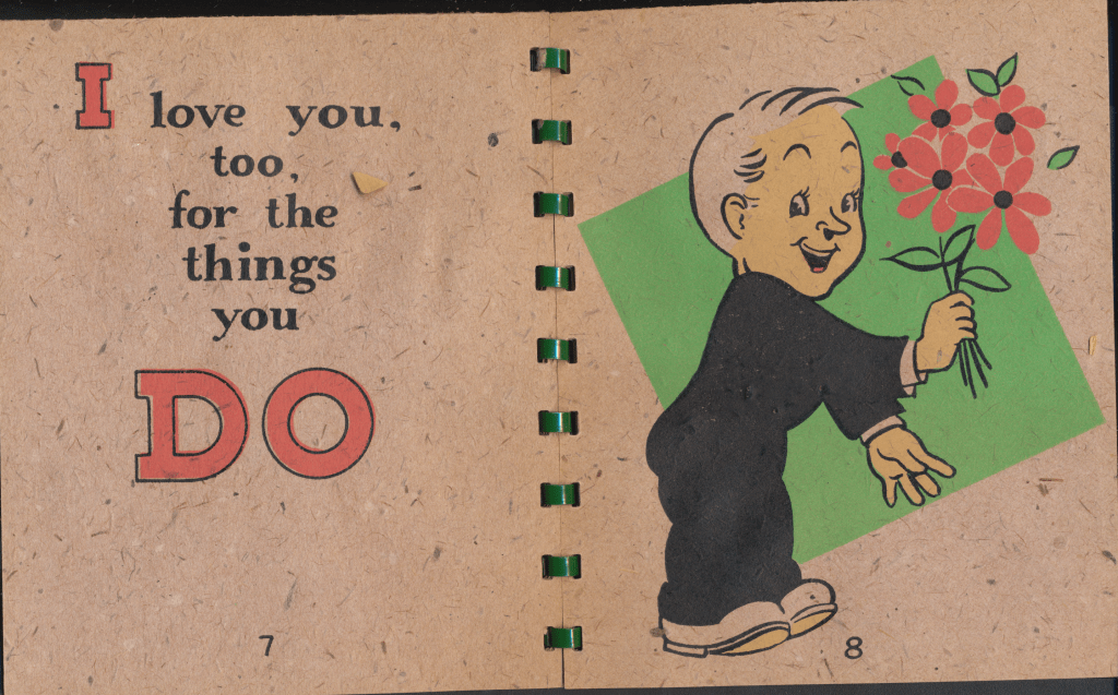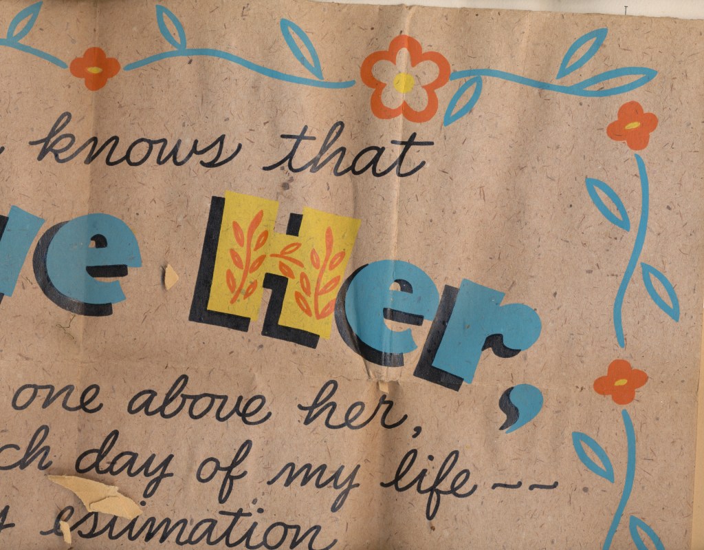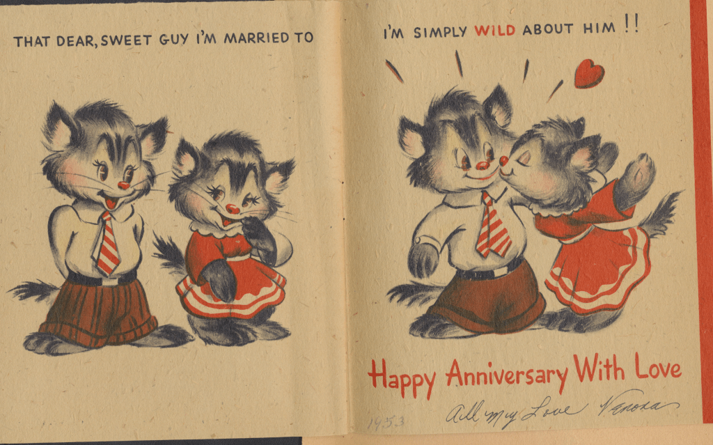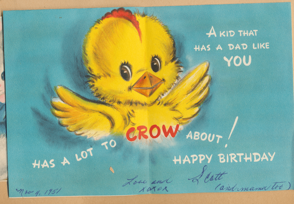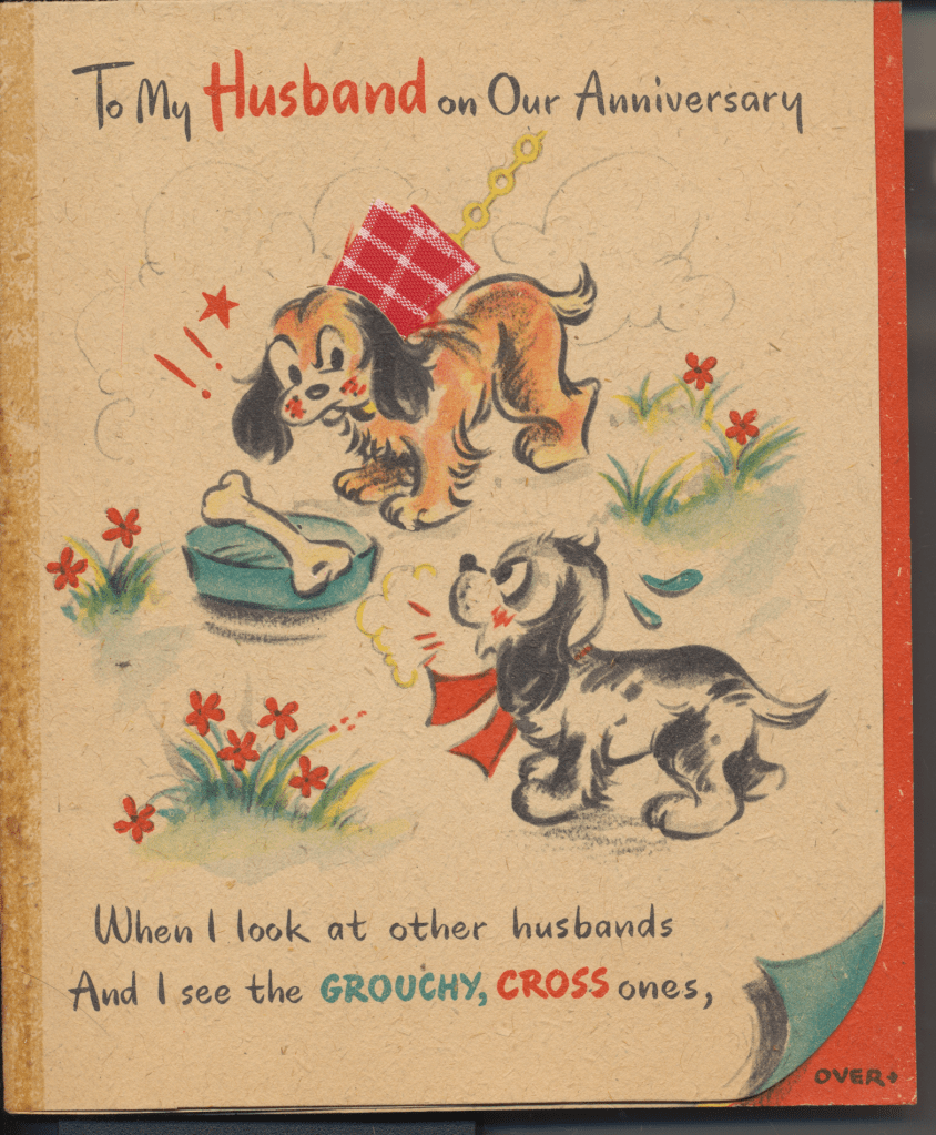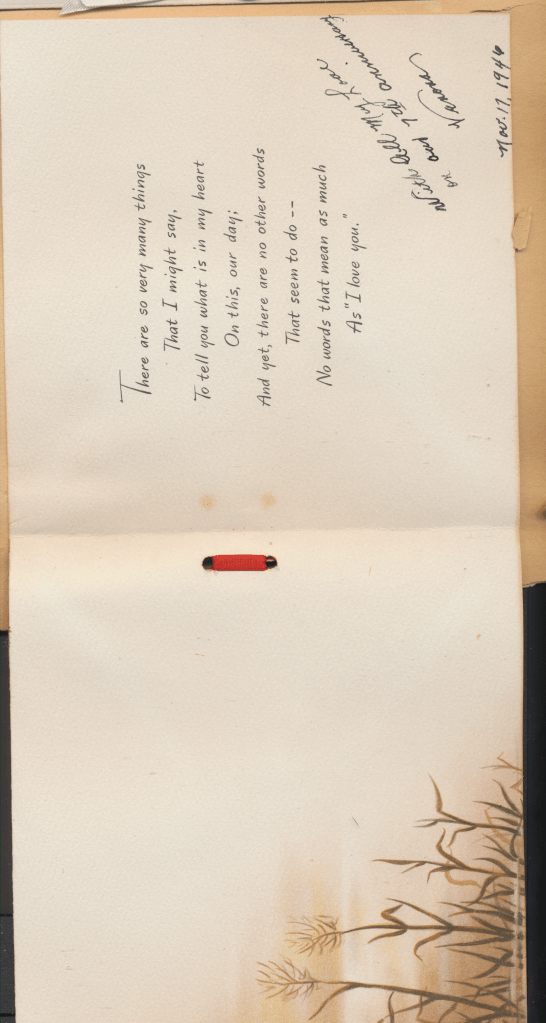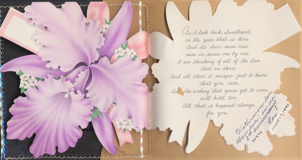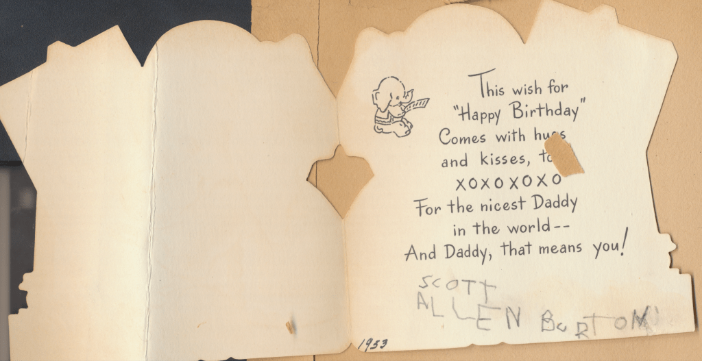 I came across the following treasure of a love story between Ronald and Verona. The cards span from 1937 to 1968. The one clue as to their last name was in a card labeled by their small son, Scott, when he put his full name as little ones do when they are learning to write. Curious, I found more information about them on familysearch.org. There, their daughter, Jan, added photos of this family giving additional life to the cards. Immerse with me as we travel in awe at their devotion to one another. Mystery still surrounds the cards such as what happened to Scott and Jan. And how did I end up with this special song of the heart.