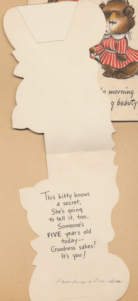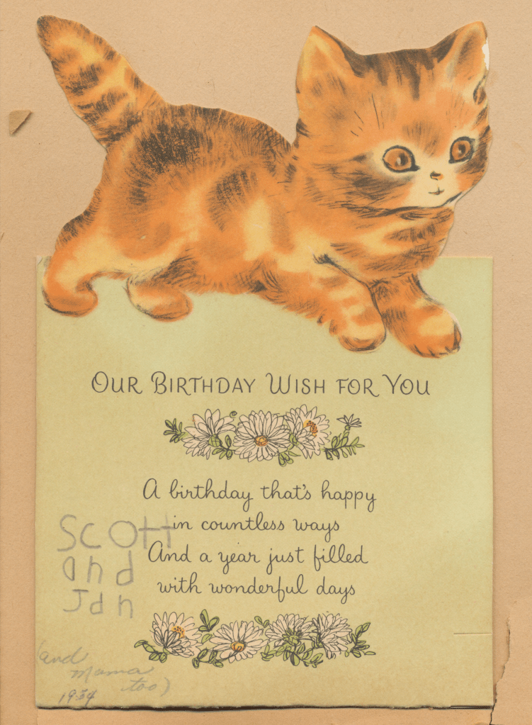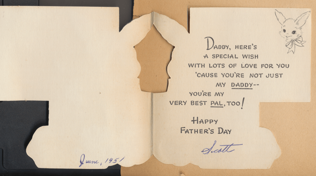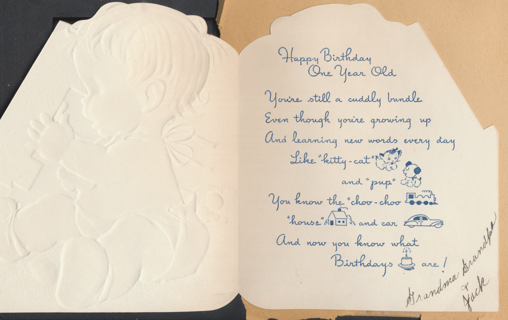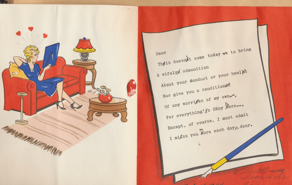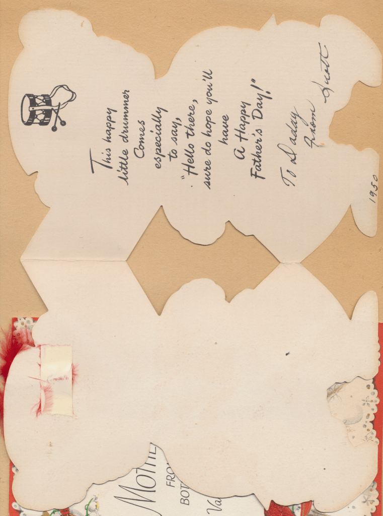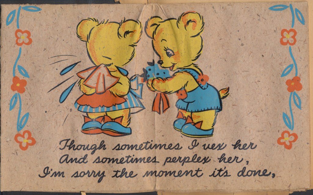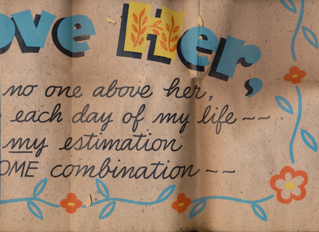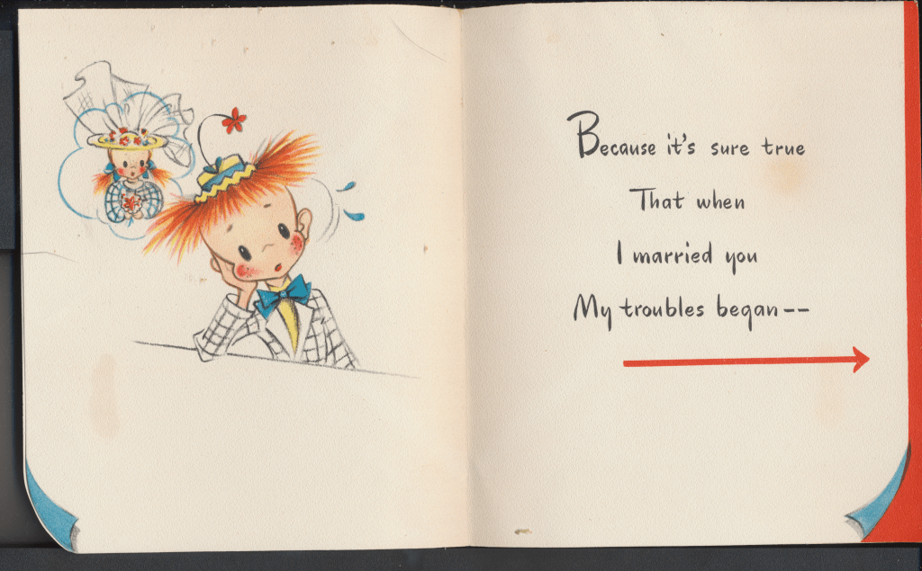 I came across the following treasure of a love story between Ronald and Verona. The cards span from 1937 to 1968. The one clue as to their last name was in a card labeled by their small son, Scott, when he put his full name as little ones do when they are learning to write. Curious, I found more information about them on familysearch.org. There, their daughter, Jan, added photos of this family giving additional life to the cards. Immerse with me as we travel in awe at their devotion to one another. Mystery still surrounds the cards such as what happened to Scott and Jan. And how did I end up with this special song of the heart.