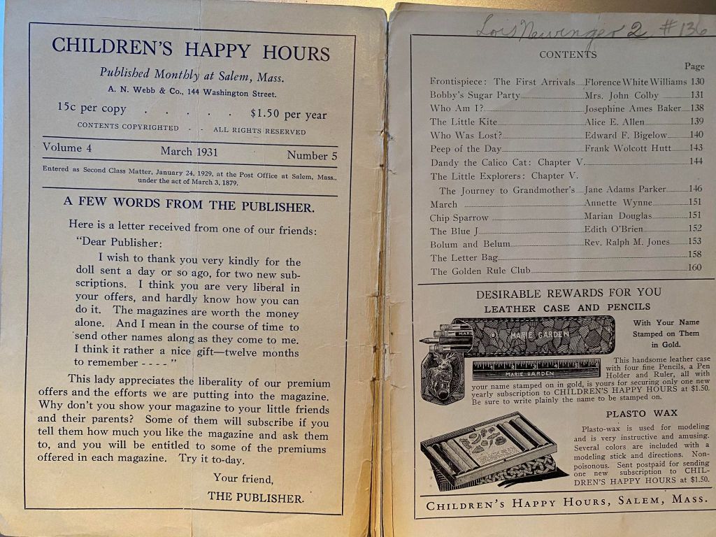 Children’s Happy Hours, March 1931 Share this: Click to share on X (Opens in new window) X Like Loading...