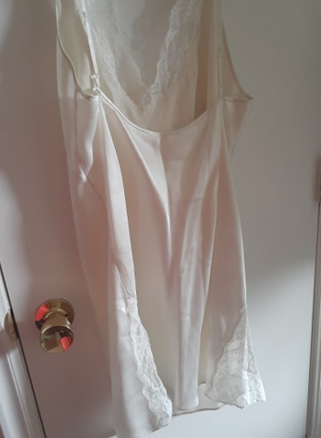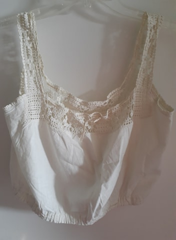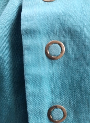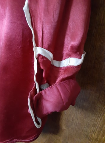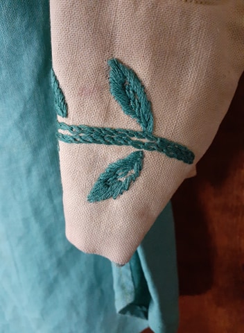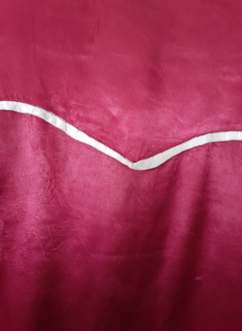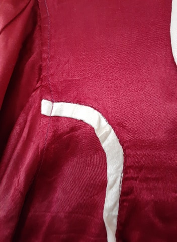 Notice the uneven stitching. The left side has a definite point whereas the right side has a softer corner. The far right design in the lace is obviously worn from age.