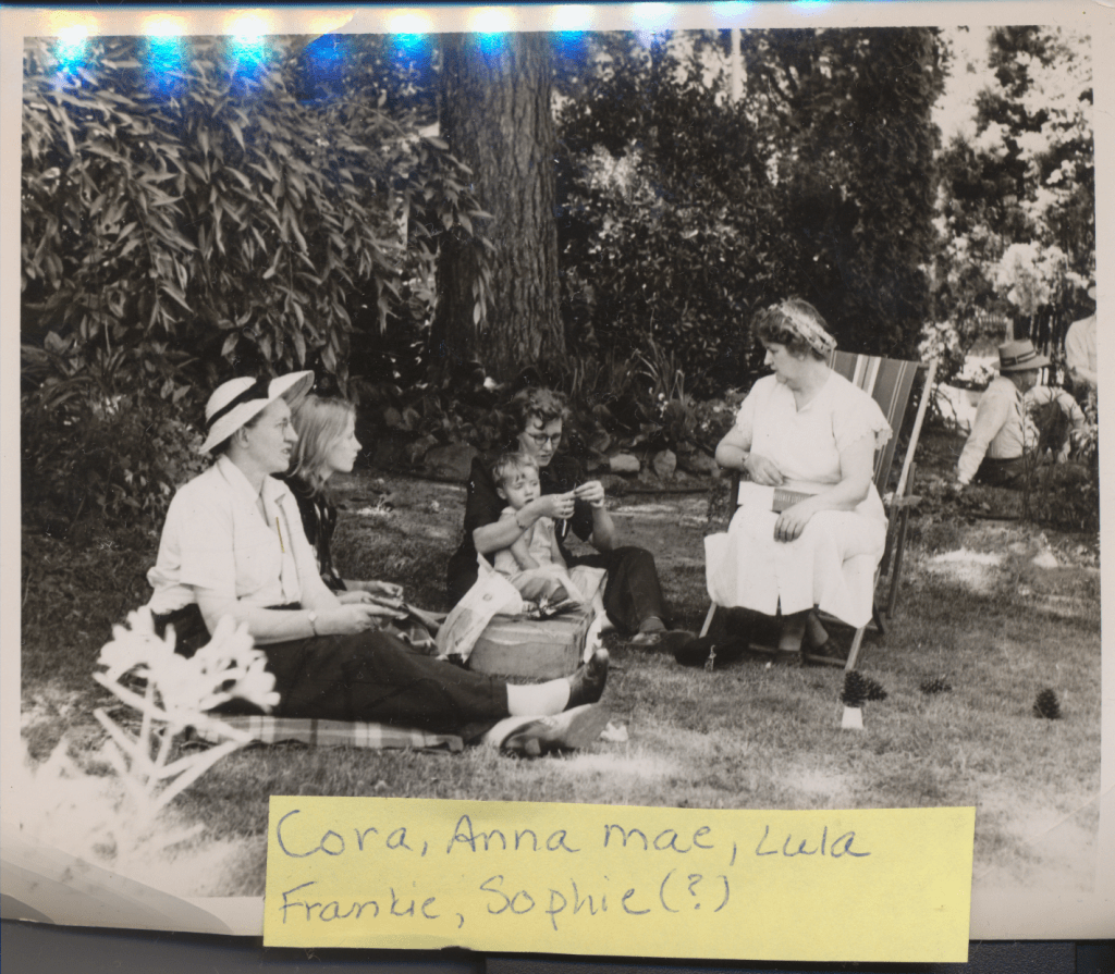 Joyce Gibson 4 monthsJoyce Gibson 4 months Cora, Dorethea, Ruby, Sophie, Perm Not sure who these ladies are. Their photos were in the same album with the Marker and Becker families.Back row: Sophie Becker Gibson, ?, ?, Jacob Becker