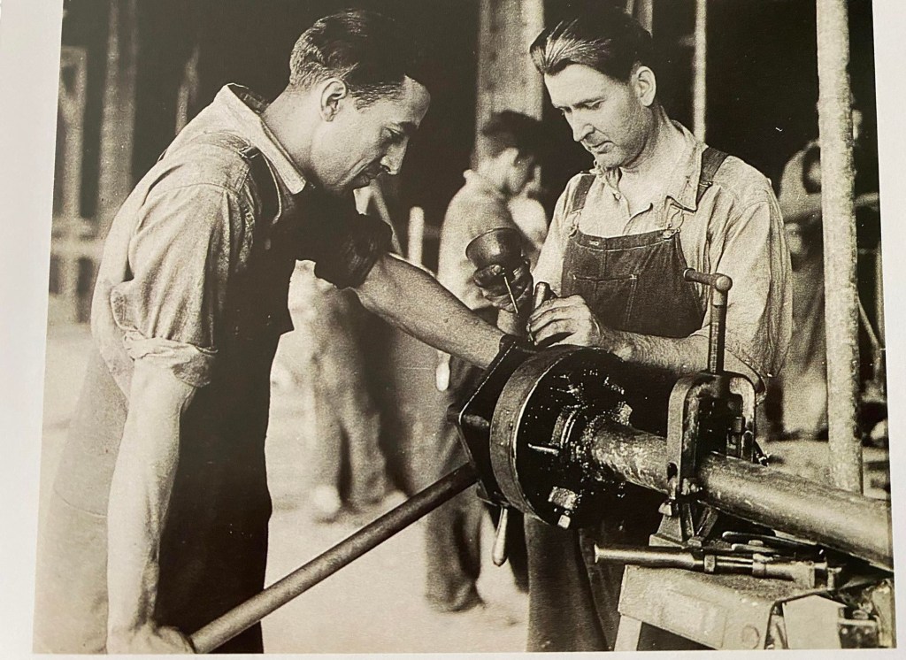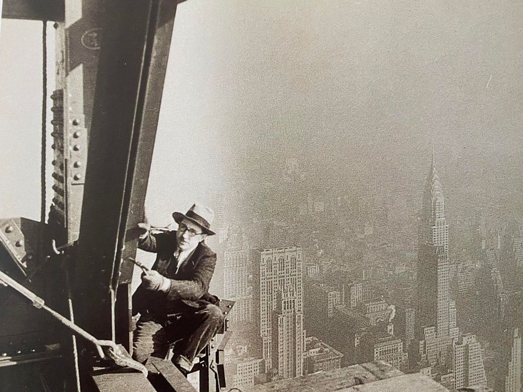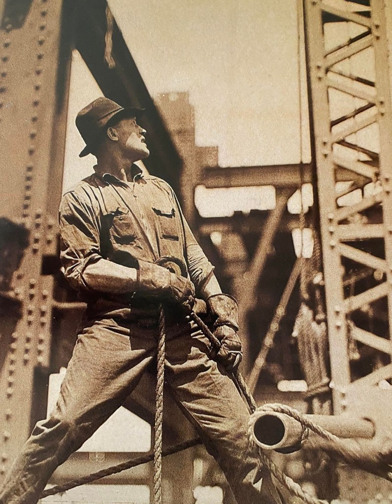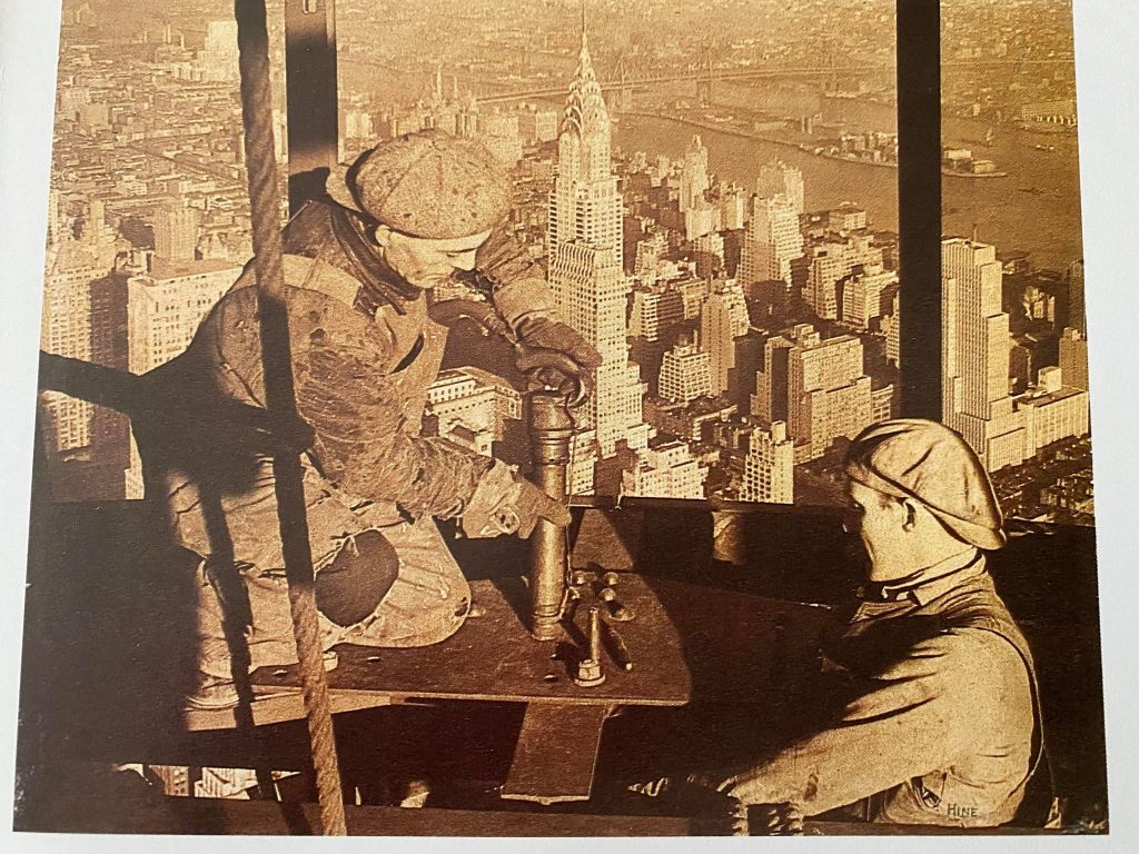 A derrick manA hoisting gang at work on 34th Street elevationA burner cutting a beam with his acetylene torchPutting a beam in placeAn inspector on the job“Topping out” the Empire State BuildingA view of Manhattan skyline and the Hudson River from the George Washington BridgeA derrick manA view of the Empire State Building from inside the tower of the Chrysler BuildingA view of downtown Manhattan from the Empire State BuildingA view of the Empire State Building from 34th Street and Madison AvenueRiveters at workMason at WorkA member of the derrick crewA break from workA break from workConstructing the frame of the observatory towerDerrick crew hoisting a beamA view of midtown Manhattan from the Empire State BuildingMachinist at workPutting a beam in placeOn the frame of the observatory towerMachinist at workA heater getting bolts red-hot to toss to rivetersPutting a beam in placeA bolter at workAt work on the structureA pause in workBolters waiting for a new beamThe sky boy
