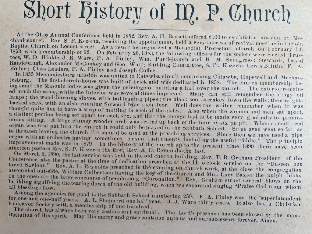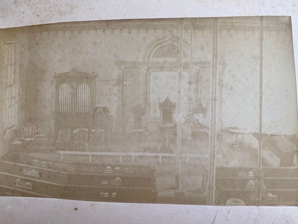 M.P. CHURCH ALBUM 1858-1890 This looks to be the organ Although picture is faded, this is part of the chandelier. Three chairs at the front of the chapel or sanctuary. Pews and books Another view of pews and books. Wooden chairs in the background. The pole to the right of the picture Picture of a woman located on the right wall Picture of a man located on the right wall What appears to be sacramental items Lighting located above what looked to be sacramental items You have a better view when you hold the picture a foot or so in front of you. Notice the detail and exactness of this lady’s skirt. This man seems to be looking straight into history at the rest of us. The children’s sad eyes. What were they thinking? Were they hungary? Did they realize the importance of the moment? Again, notice the lines on her dress. Notice the feet. This is an Ohio winter. Take note of their hands. I am imagining her hands to be very, very cold. Share this: Click to share on X (Opens in new window) X Like Loading...