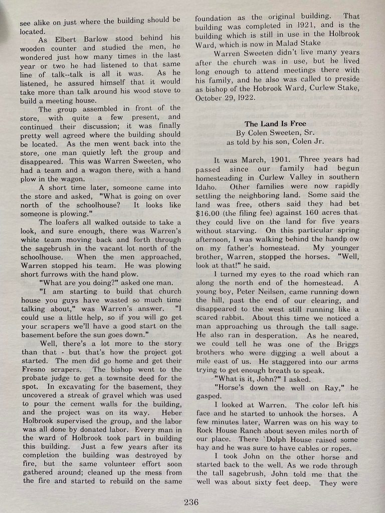 Church and community have always gone hand-in-hand. In Oneida County, this was no different. Predominantly LDS, they lived, worked, gained an education, mourned, and worshipped together. Herein is a fine example of that lifestyle that is quickly disappearing.
