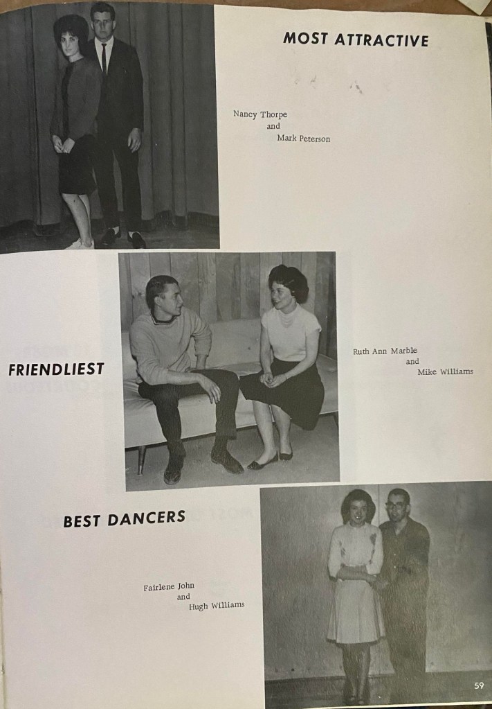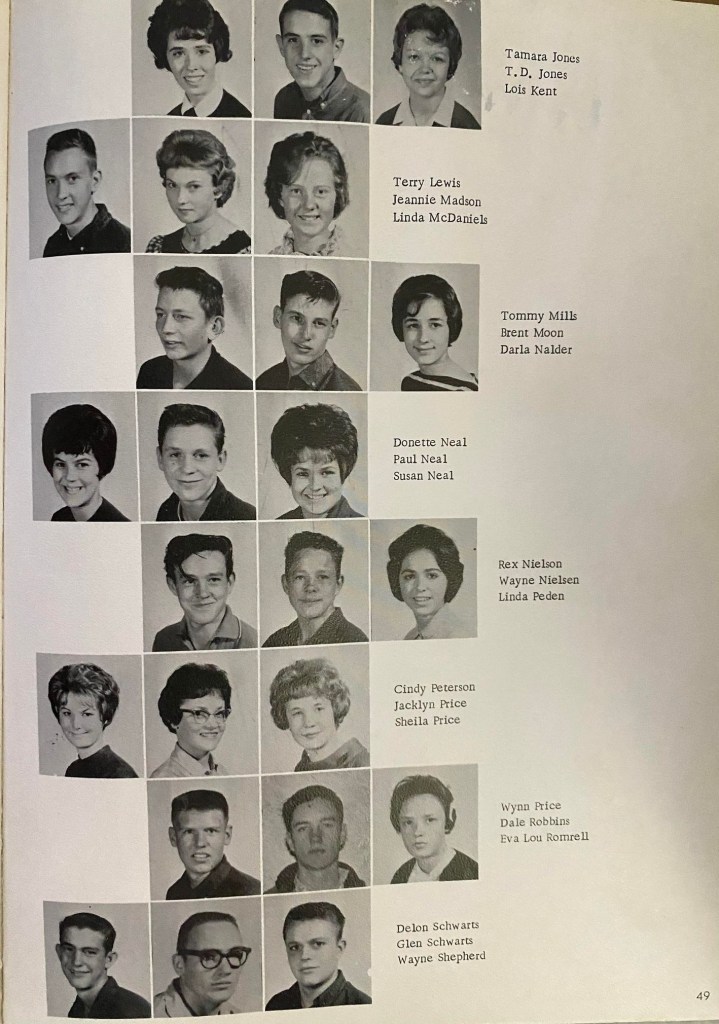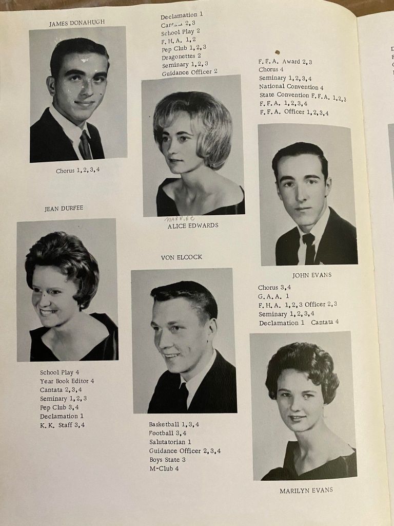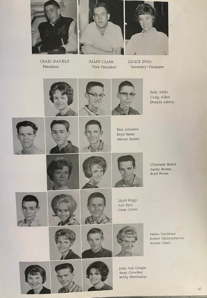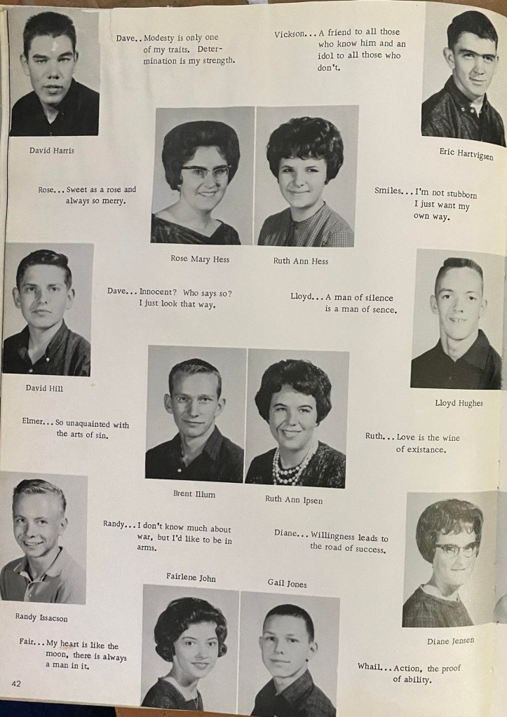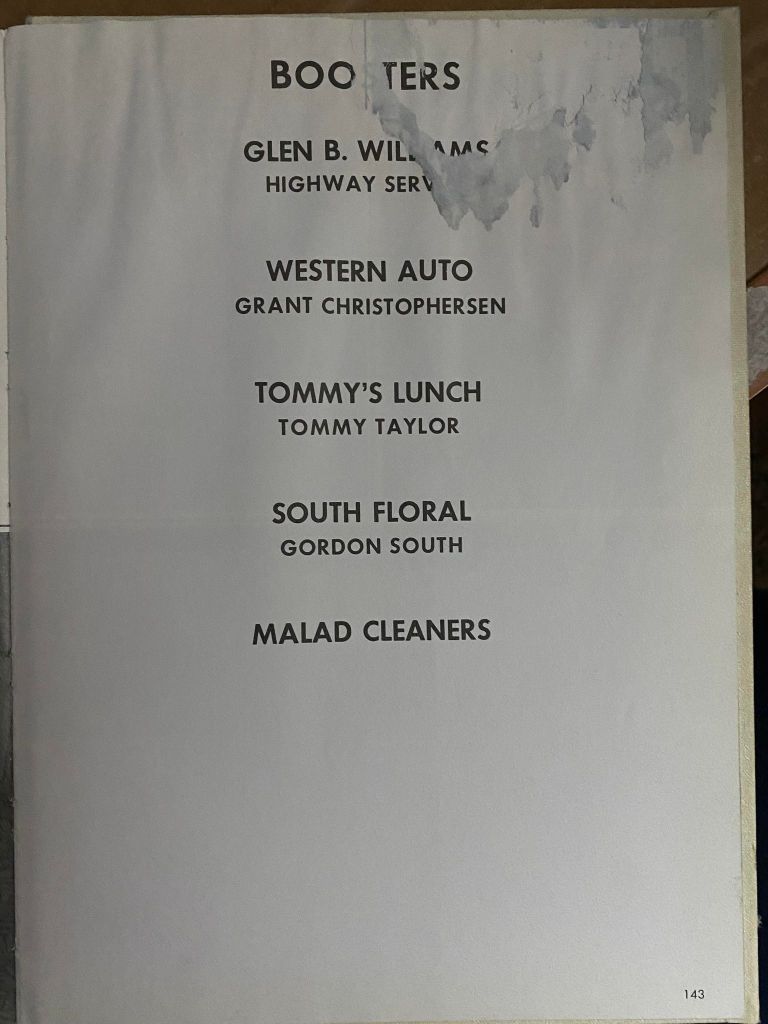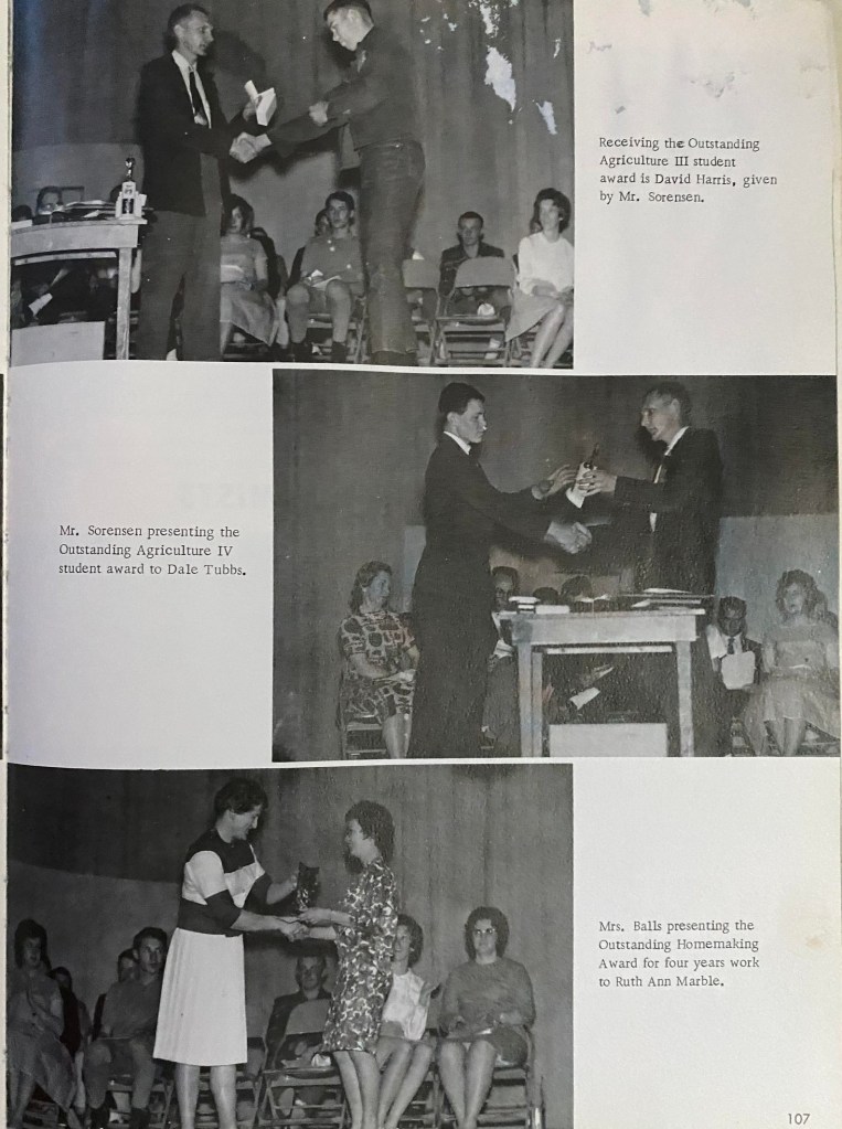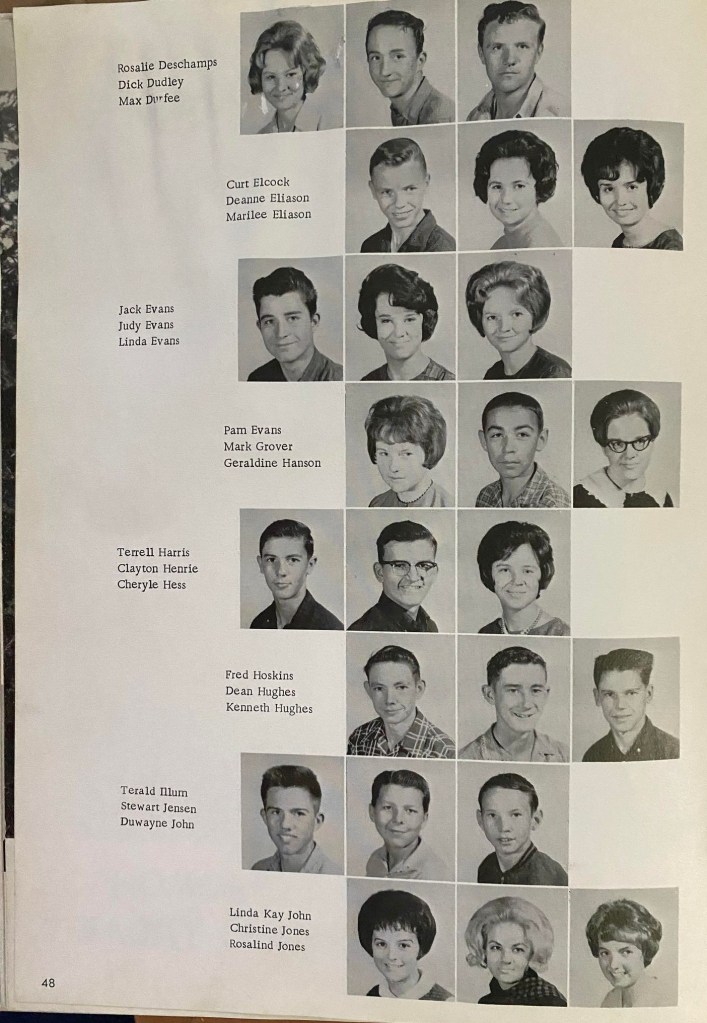 Interesting to note from the advertisements that some things are slow to change. Take the Chat and Chew Inn shorten to the Chat n Chew in the 1963 edition. It was advertised in the 1940 edition. And Evans Co-Op. Compare for yourself what others are the same. Look at the sayings from the Junior’s section. Hard to avoid laughing, such as Ben Call’s “work fascinates me; I can sit and watch it for hours.” Or, Patsy Davis, “I’m nobody’s fool, I can play the part.”