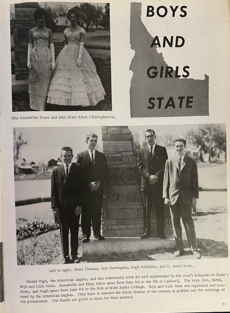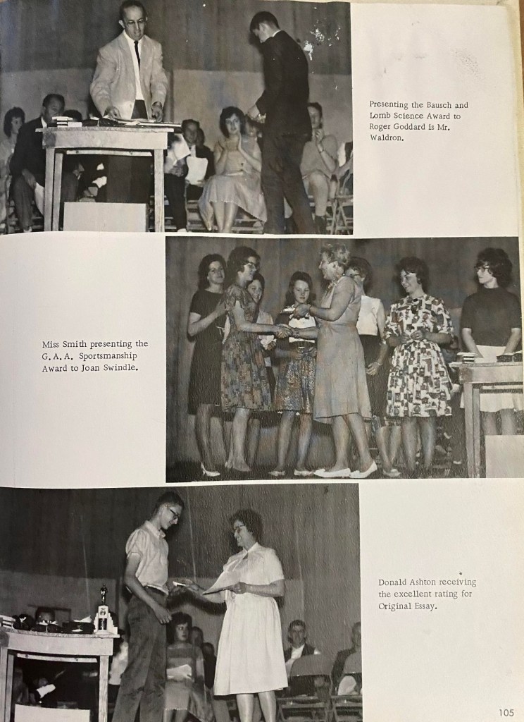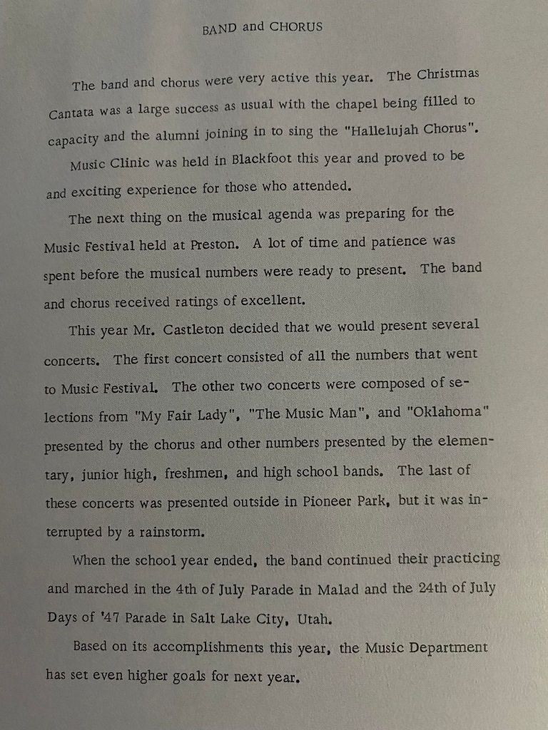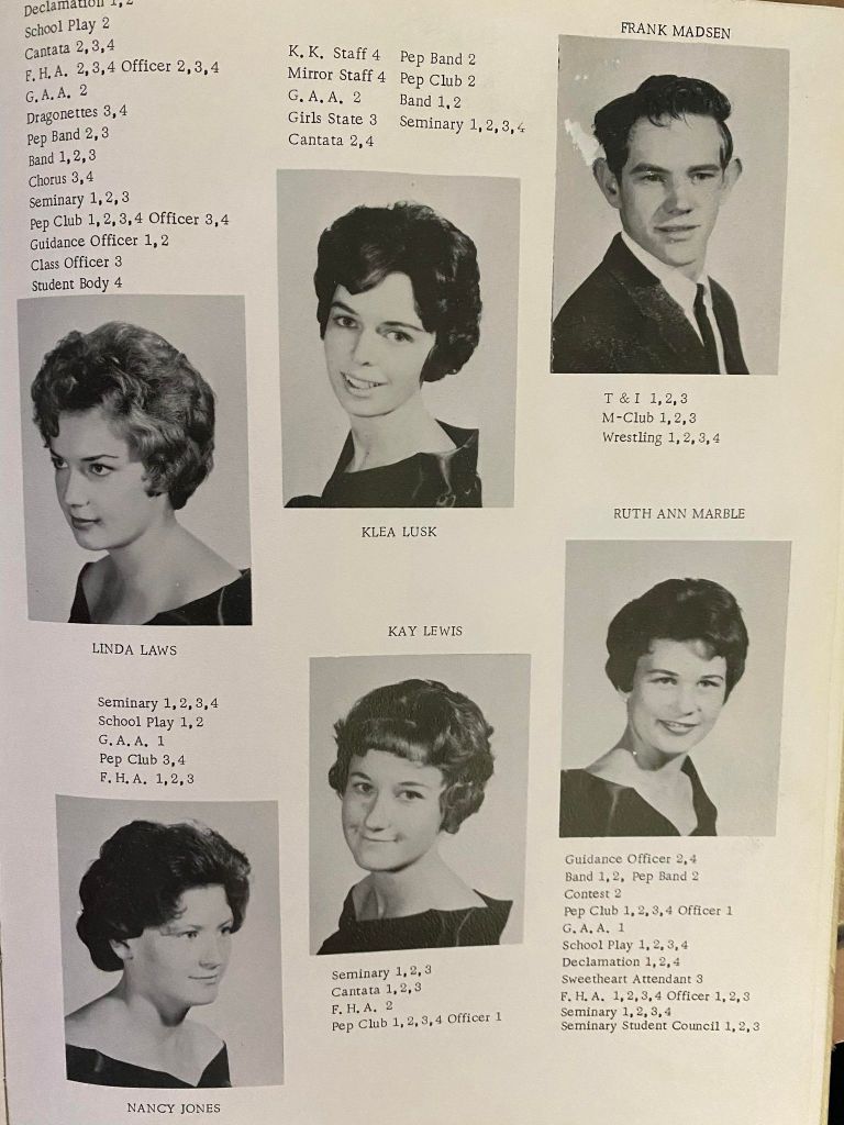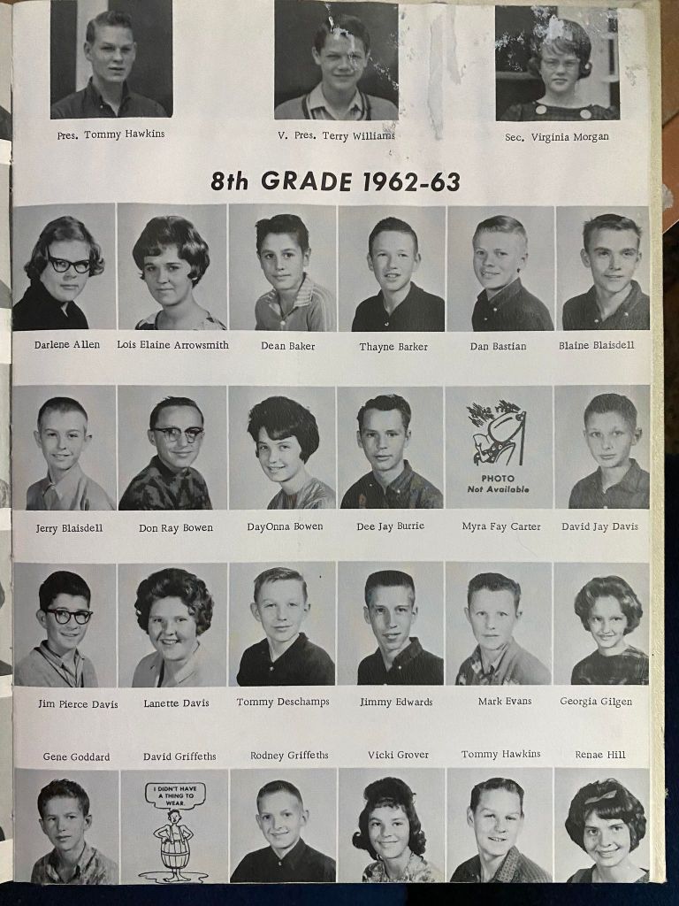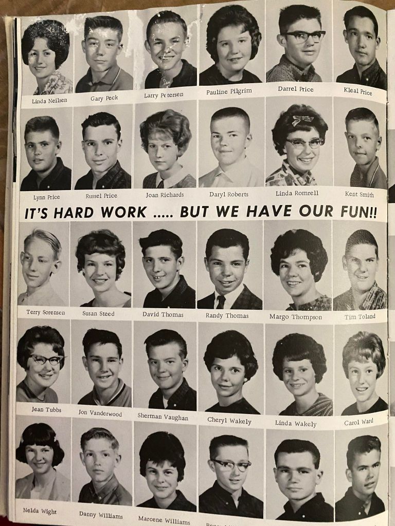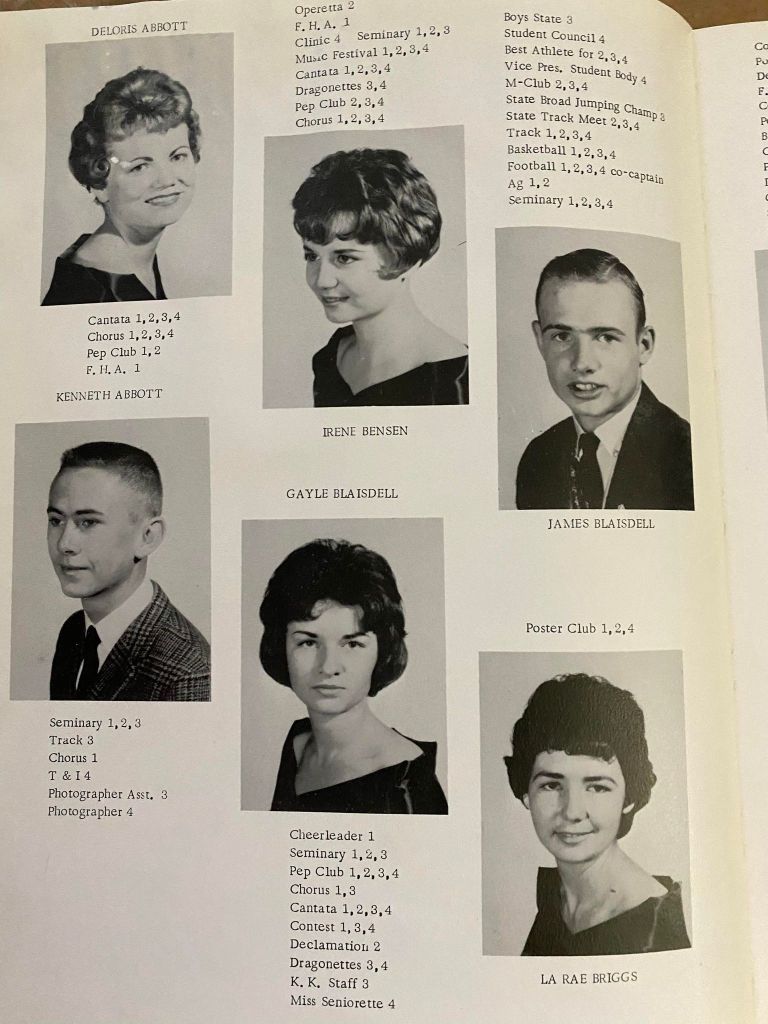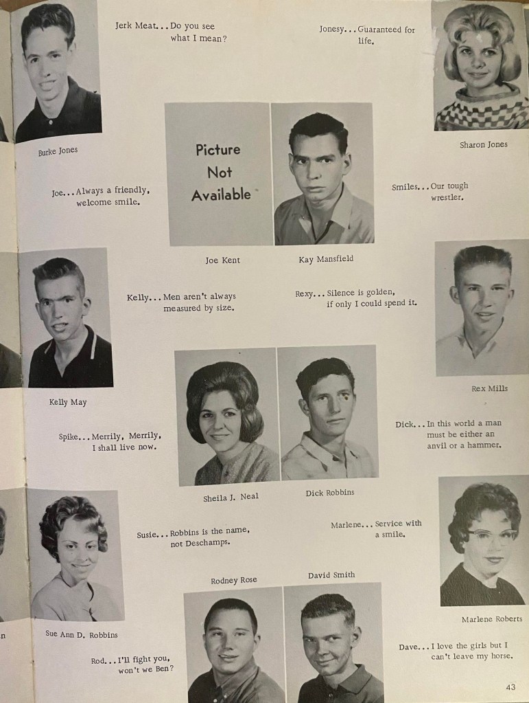 Interesting to note from the advertisements that some things are slow to change. Take the Chat and Chew Inn shorten to the Chat n Chew in the 1963 edition. It was advertised in the 1940 edition. And Evans Co-Op. Compare for yourself what others are the same. Look at the sayings from the Junior’s section. Hard to avoid laughing, such as Ben Call’s “work fascinates me; I can sit and watch it for hours.” Or, Patsy Davis, “I’m nobody’s fool, I can play the part.”