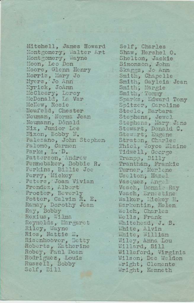 Dad: Oh I had a few friends. Bobby Nixon, Roger Campbell. Roger Campbell was from another school. Kyle Hill. His uncle was a big cotton farmer, real lucky…I can’t remember a lot of em.
