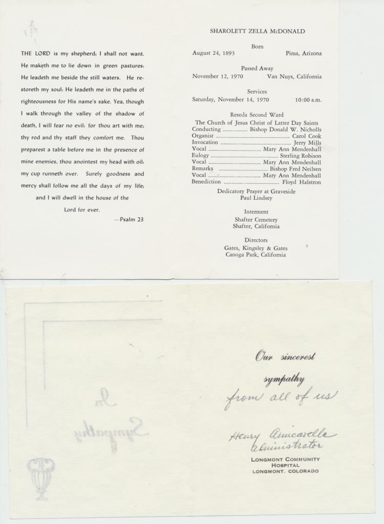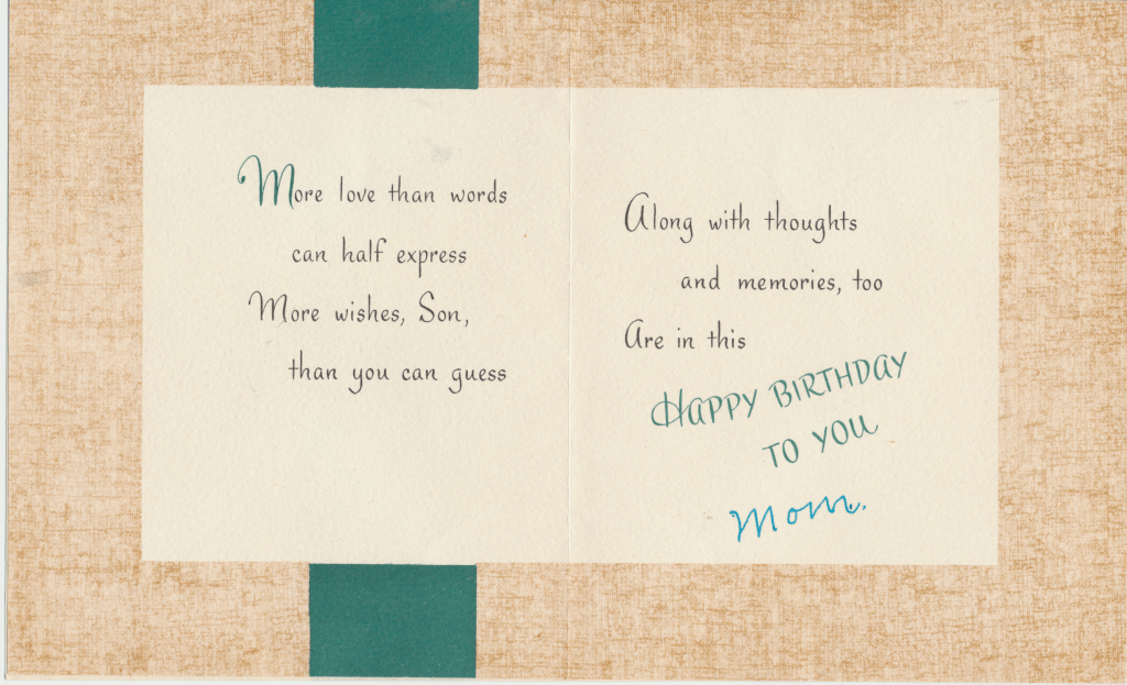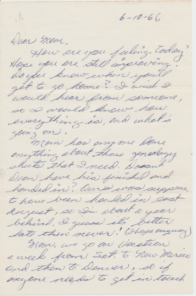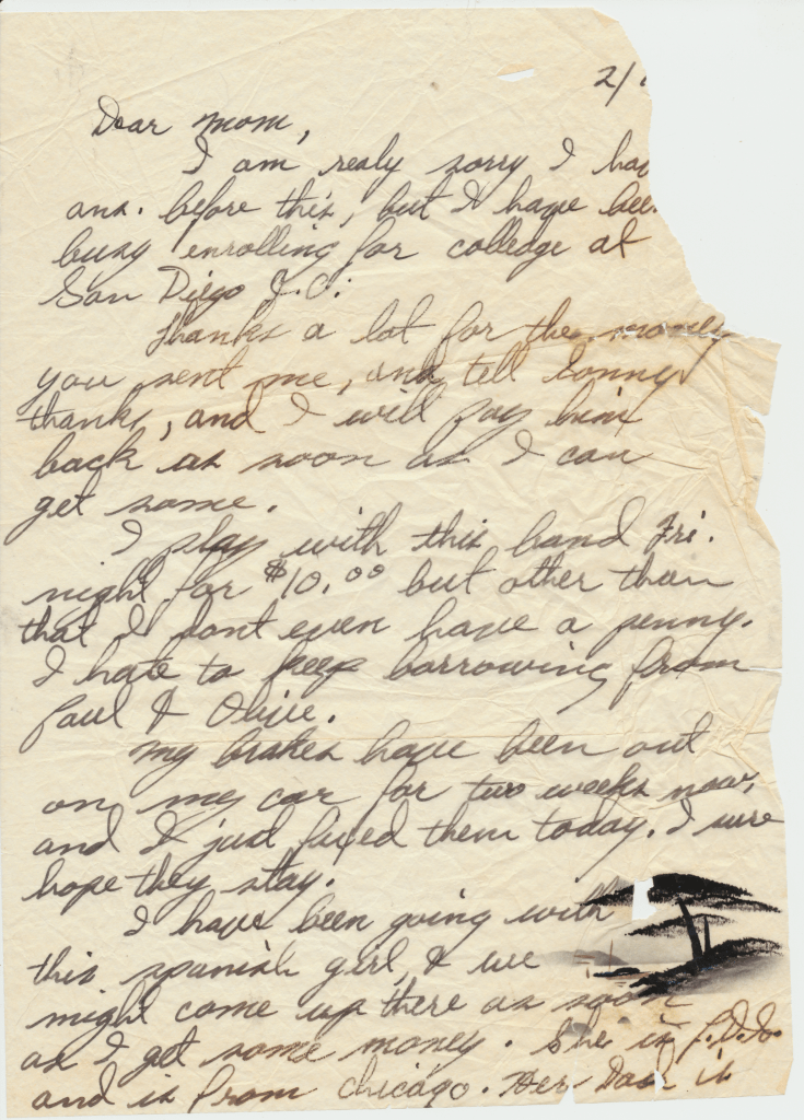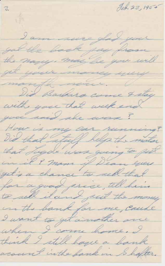 Dad: Ah, that’s before I was born. But they did. They helped some people move. I guess the car was broken down and something. They stopped to help these people. The people ended up stealing the truck with furniture in it. And the last time they saw that truck, it was in a wrecking yard up in Modesto, California. Completely lost it.