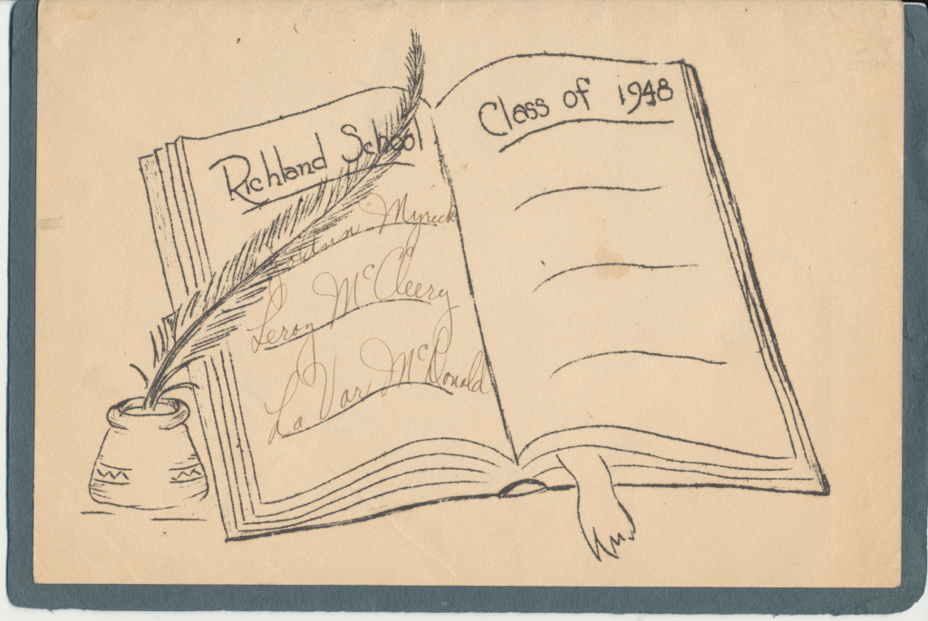Dad: When I was a real little kid, we moved way up to Cowpella by Ukiah. That’s the school you saw. And we lived in an old store building that had plaited glass in the front windows. Your Uncle Deand and I used to sleep in one of those big rooms in the front. The bums used to sit out side and drink their wines and you could see em through the window. We were in bed at night. Then, one of the big rooms we used roll our wagon around there on the wood floor and it was kind of a strange store. Had a big basement down underneath it.