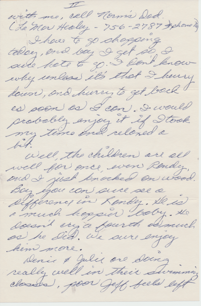 Dad: Used to throw cotton balls at cars, throw green oranges at cars. Used to swim down the rapids & get a canoe. We were at a mutual party one night. Roger & I & some more kids we swam down the rapids. We weren’t supposed to.