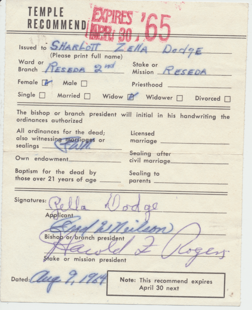 House at 7544 Eaton Avenue, Canoga Park, California. On this particular day they had been “sealed” in the Los Angeles LDS Temple. This ceremony meant that they were now an eternal family. September, 1964.