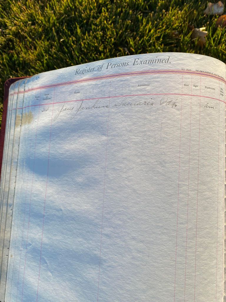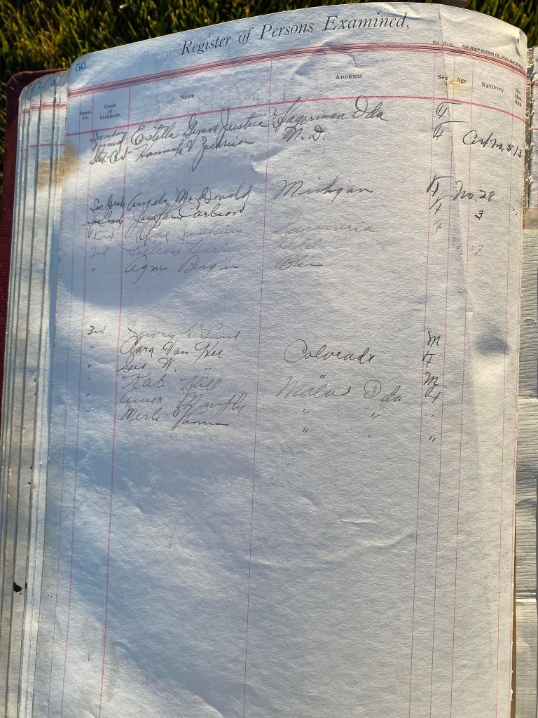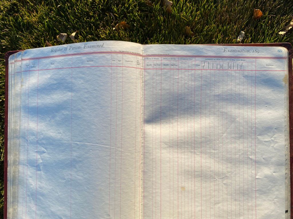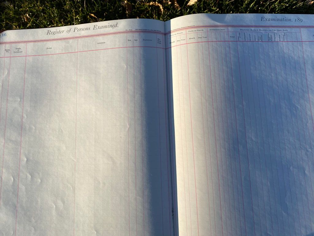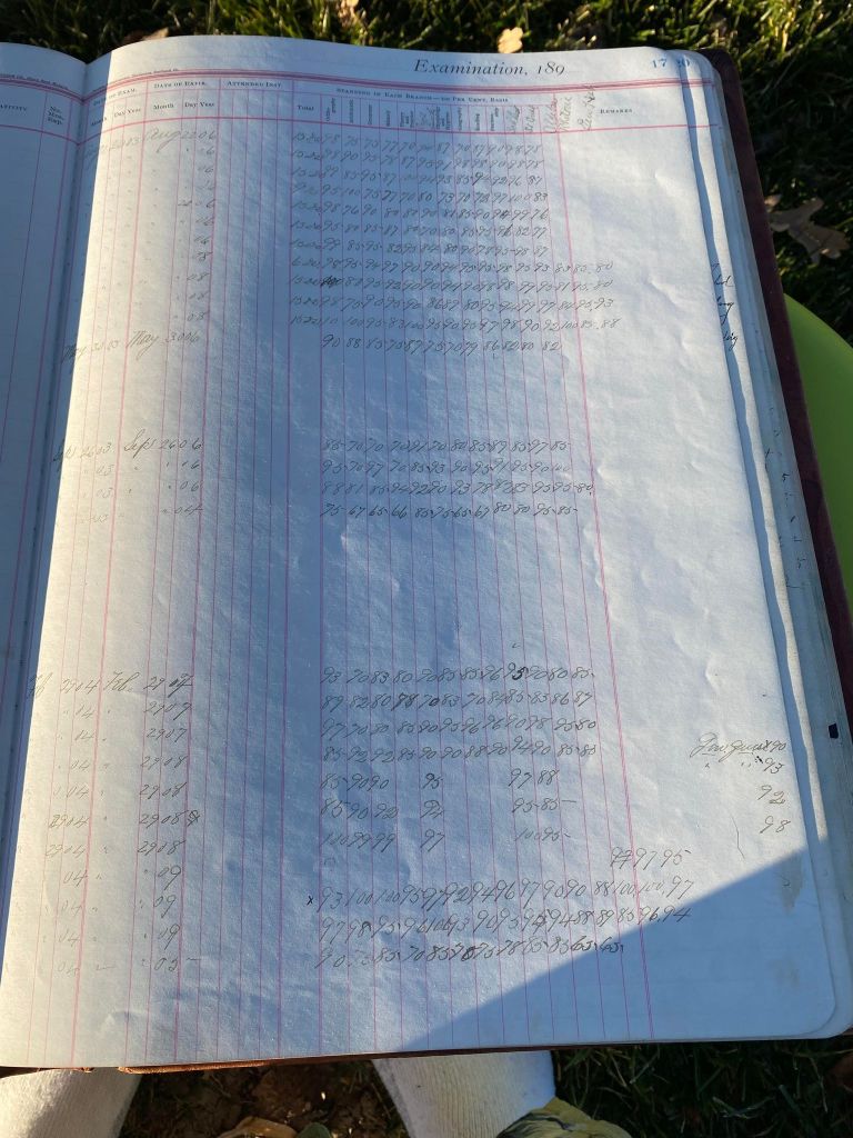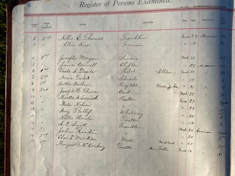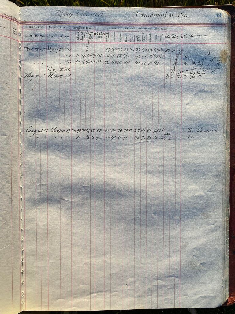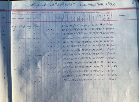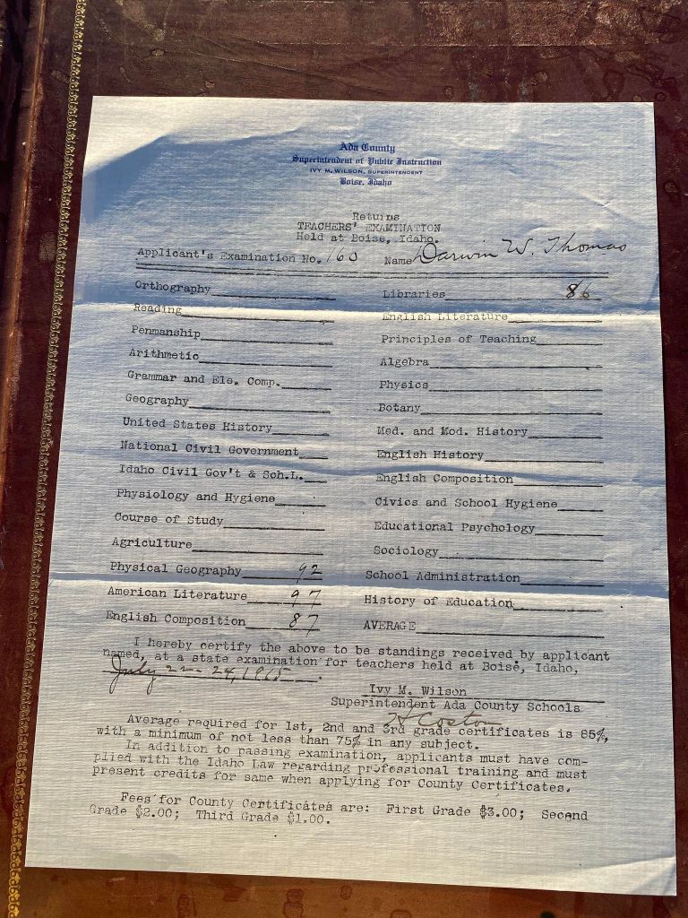 This is exciting information that was found at the old Malad High School before it was torn down. It has the teacher’s examination scores with information including: Name, Grade of Certificate, Address, Gender, Age, Nativity, Number of Months Experience, Date of Exam, Date of Expiration, Standing in Each Branch-100 Per Cent. Basis. At one point I thought that I could feel the presence of at least 2 women and 1 man while working on the dates between 1901 and 1905. It seemed that I could even discern the clothing they were wearing. This was in the evening while my children were in the room being overly silly.