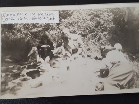 Milwaukie, Oregon Perm Marker with the pipe in his mouth. Cora Marker is sitting at the far right. All others are unknown for this photo.