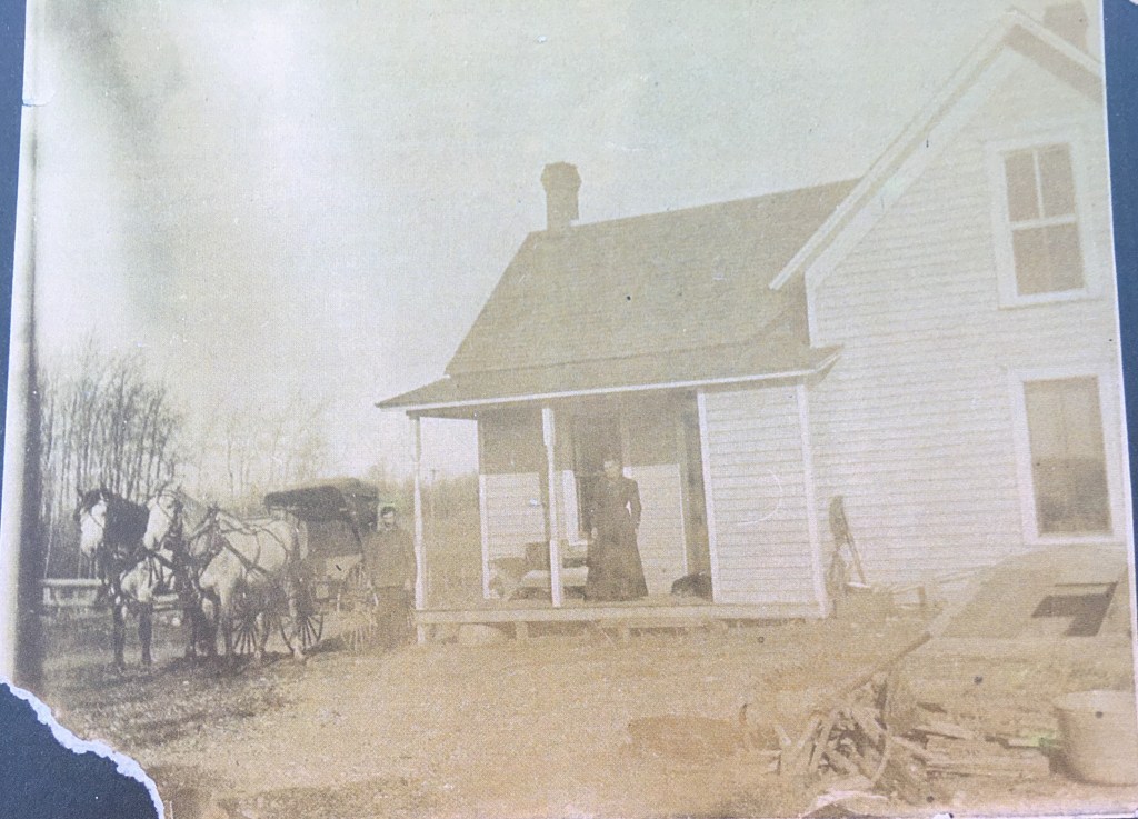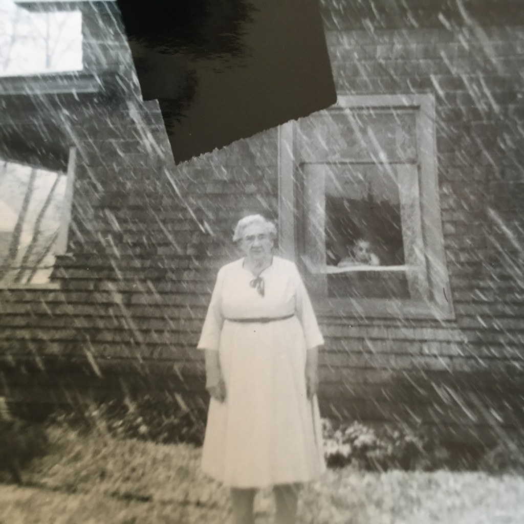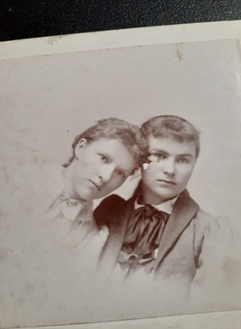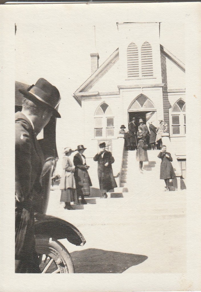 Emilie Louise Menge Becker and unknown person in the window. Snowing in Cove, OregonSophie Becker Gibson, Louise Menge Becker,…Prineville, Oregon???Minthorn Community ChurchBeaulah Becker