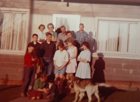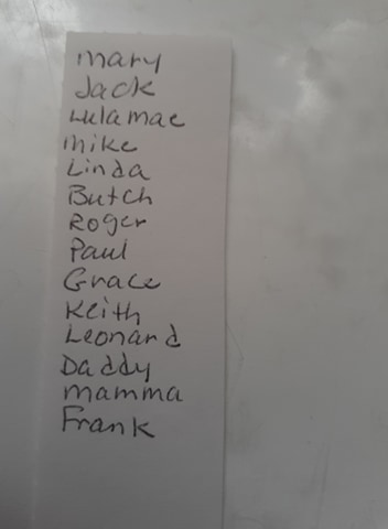 Lula Mae, Butch (center), Mike, Rex, (behind Butch), Jane & Jean (on Butch’s lap), Patty (directly in front of Lula).