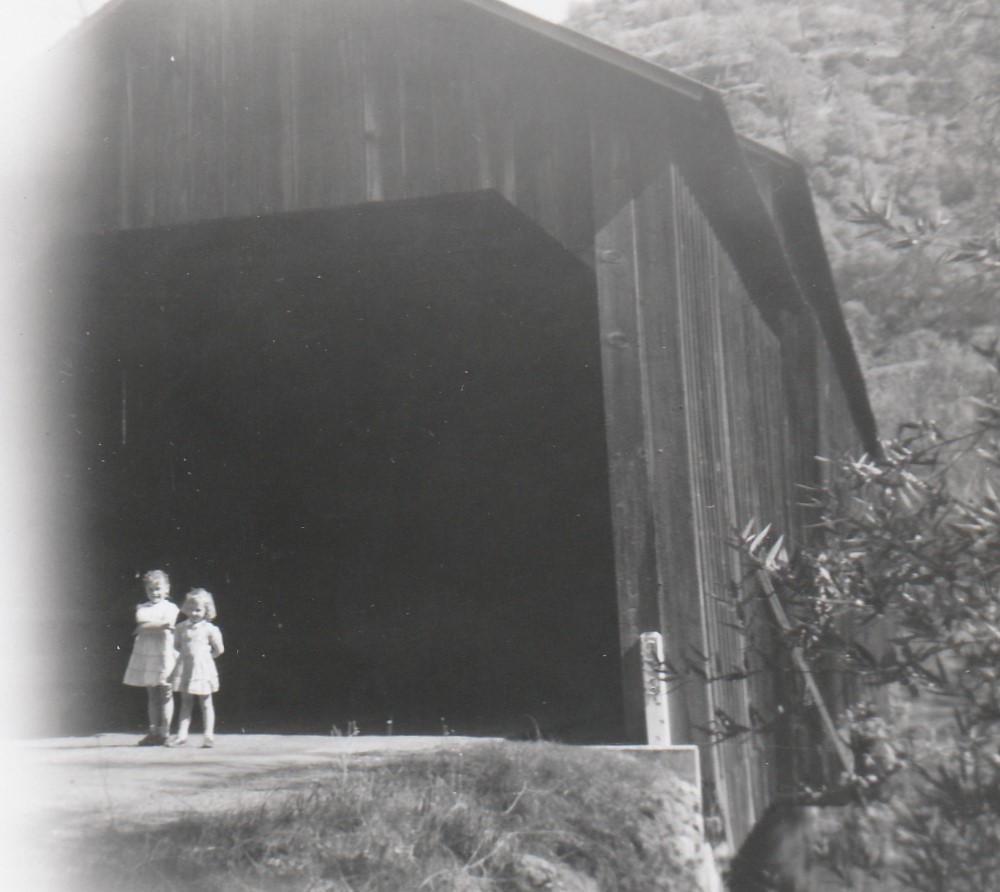 “Debora and Brenda on coverd bridge crosing Butte Creek