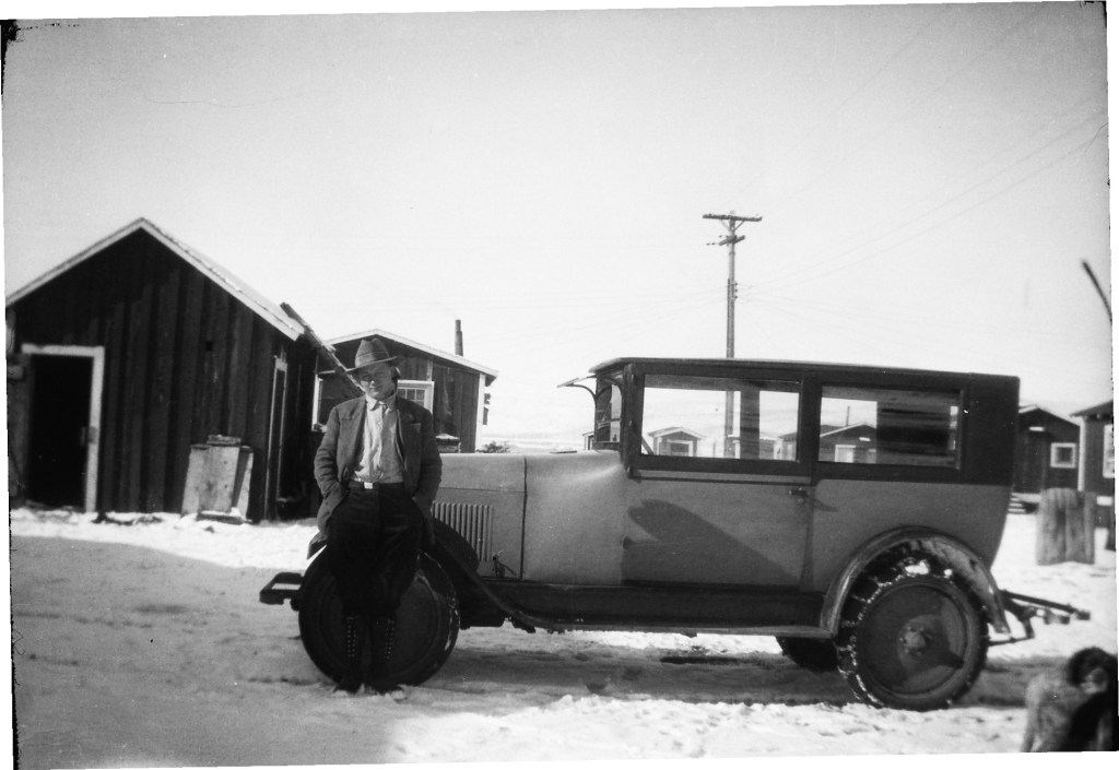 John Elmer Phelps with ? in Alaska. He worked in Alaska doing construction. He bought and old rusty saw and a rusty plane. He told the boss that he was a carpenter (even though he wasn’t) and got the job! ~Lula