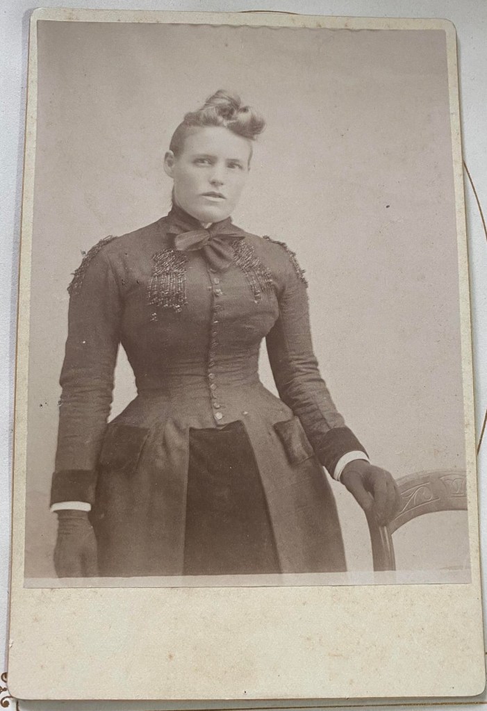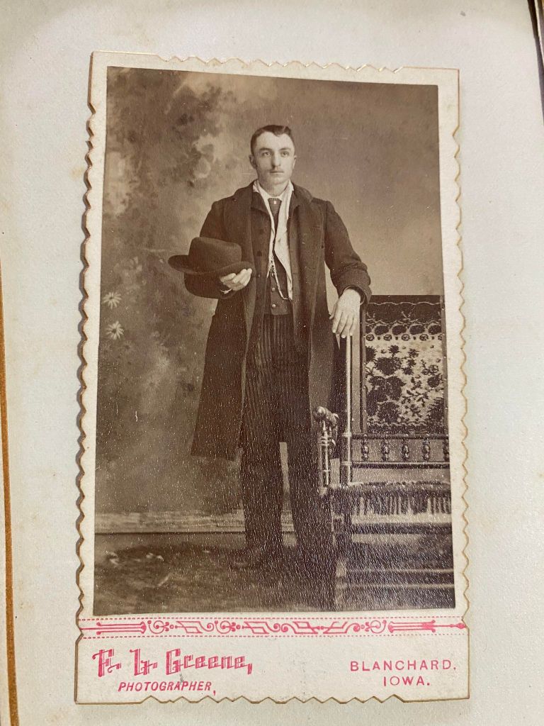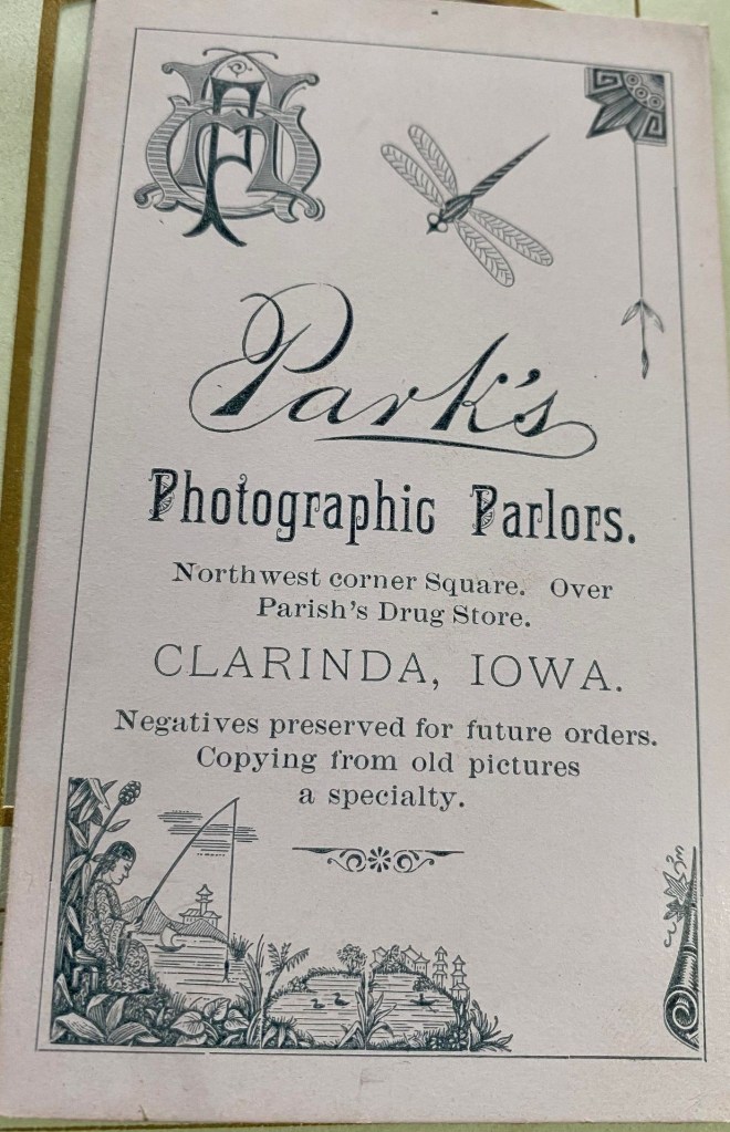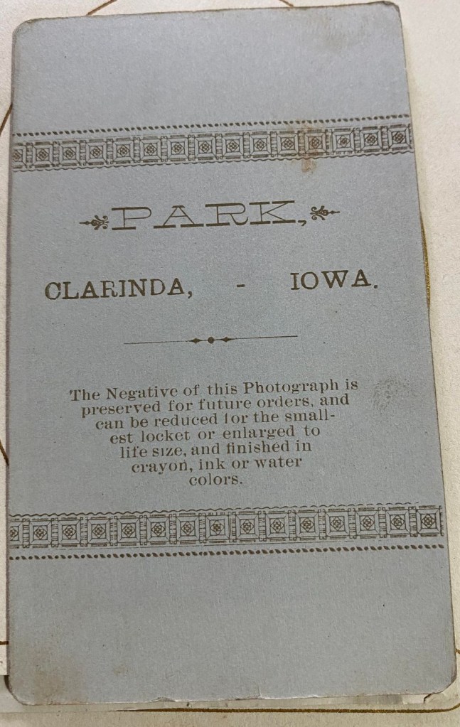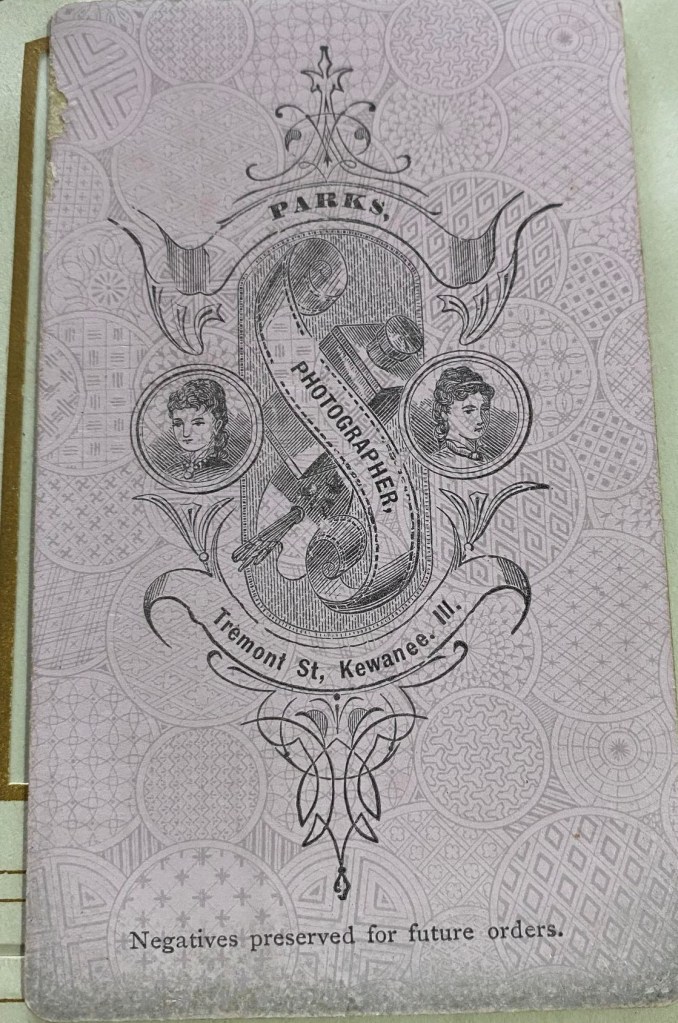 Happy Sunday! As my old friend, Adam, used to say. Some new pictures to view, copy, paste, reminisce, and research. Notice the intricate designs of the backside of the photos. The photos that came from the photo album were found at a thrift shop. From the advertisements of the photos, it seems that most of the people came from either Kansas, Illinois, and Iowa. For those doing the research, where the photo was taken is an important factor. This tells us that the individual was at this location at some point in time. Researching the company and then finding out what they still have could be useful in your search. Also, look into who might have bought out the company.