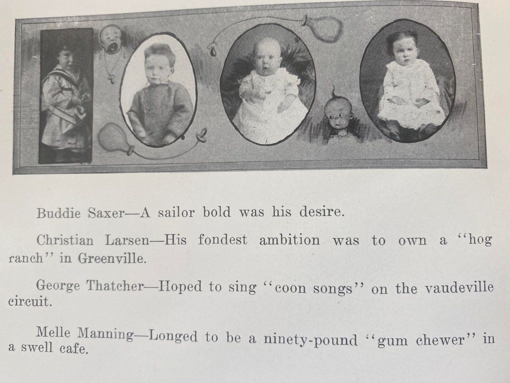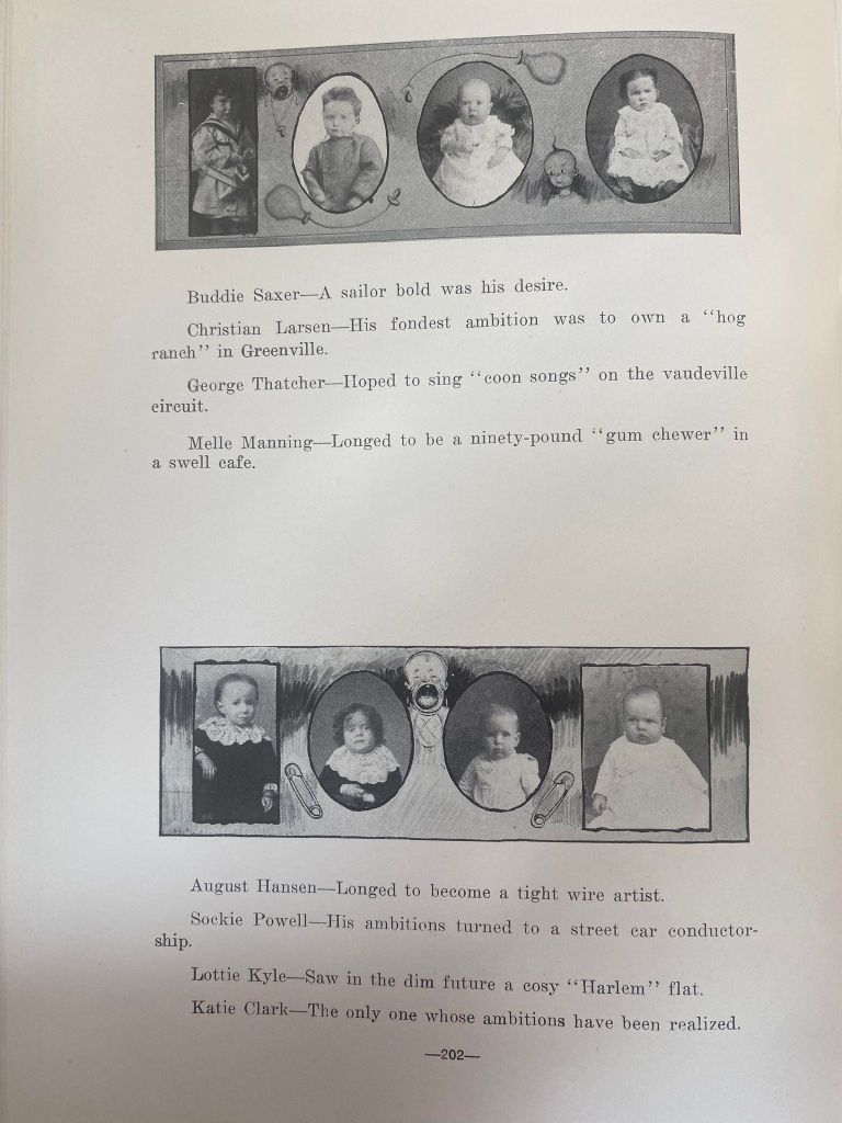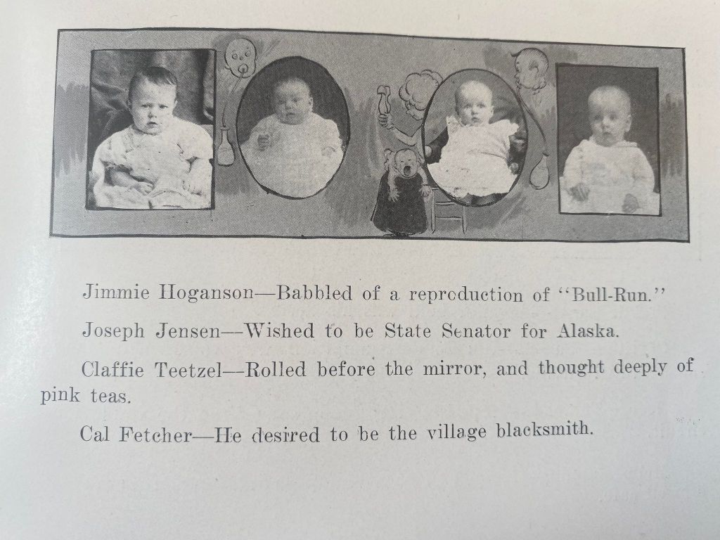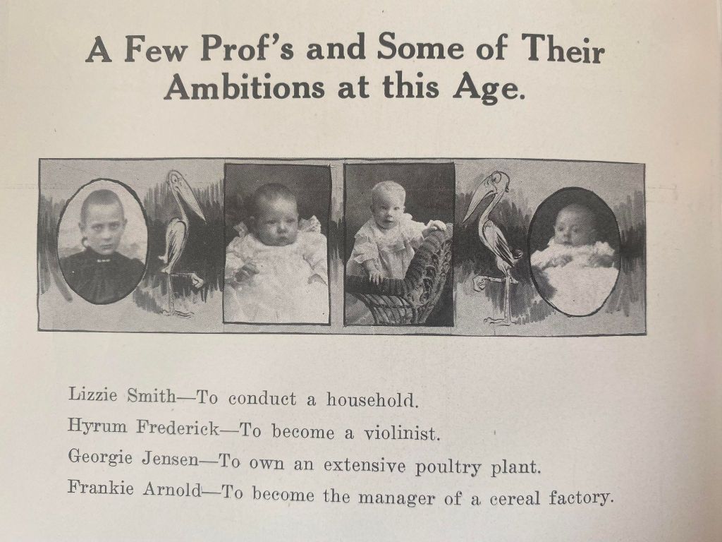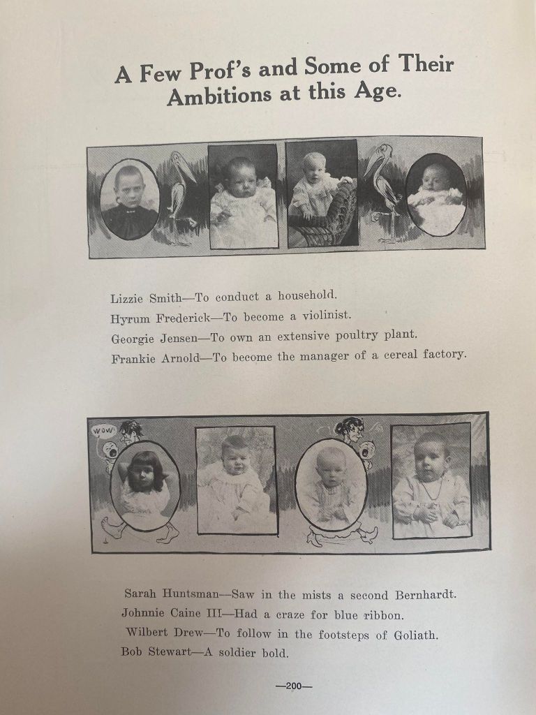 This volume includes rare and special pictures of “a few of the Prof’s baby pictures and their ambitions at this age.