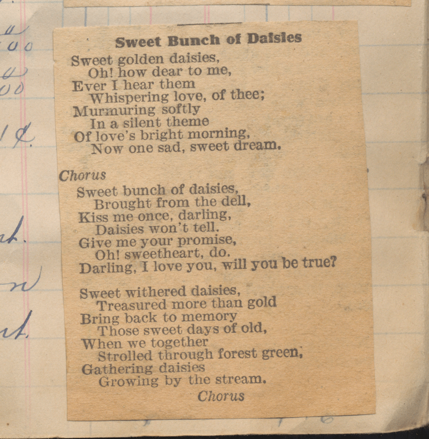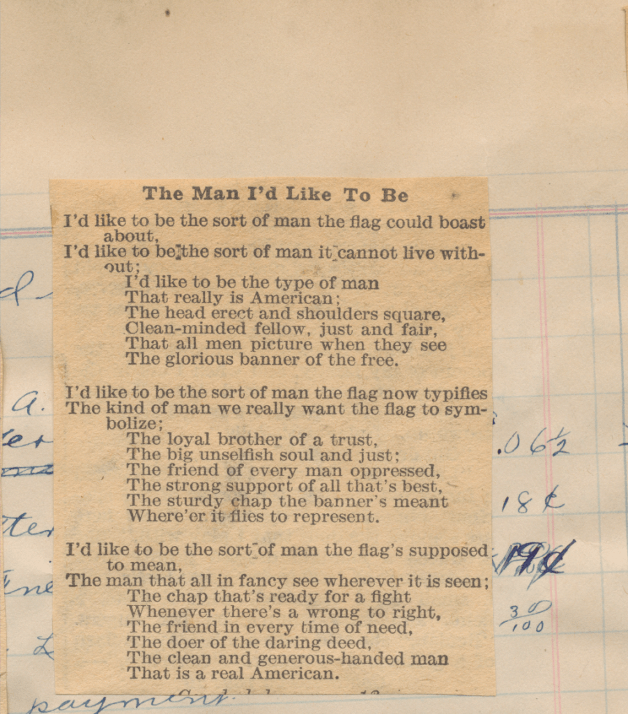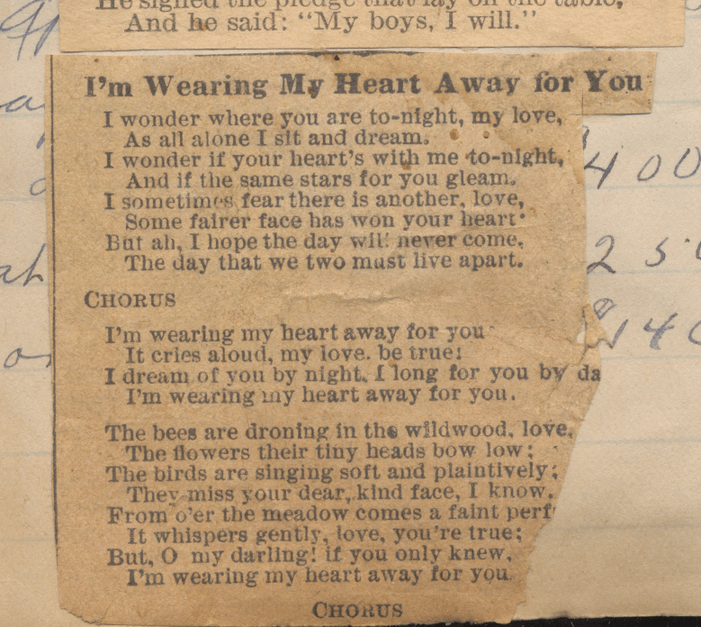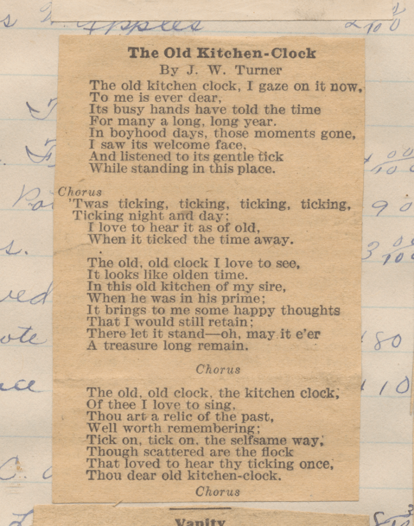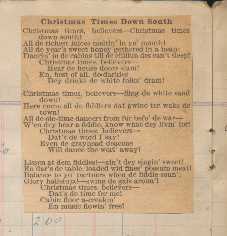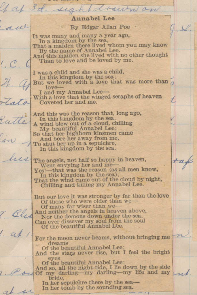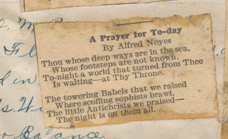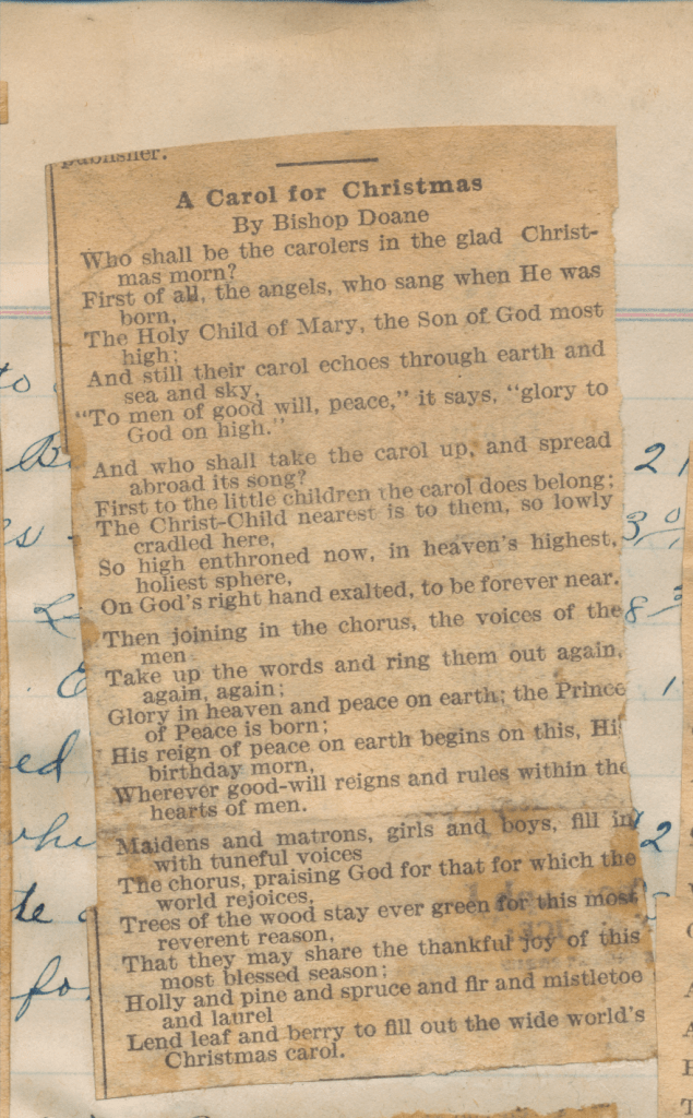 One can get a pretty good idea of what thoughts the person was immersed in when she cut this out of magazine, especially when the holidays were upon them and the individual was a mother. This particular piece and others like it were saved in a hand-written ledger. As you can see by other clippings, Cora has covered up the carefully written prices. Continues below