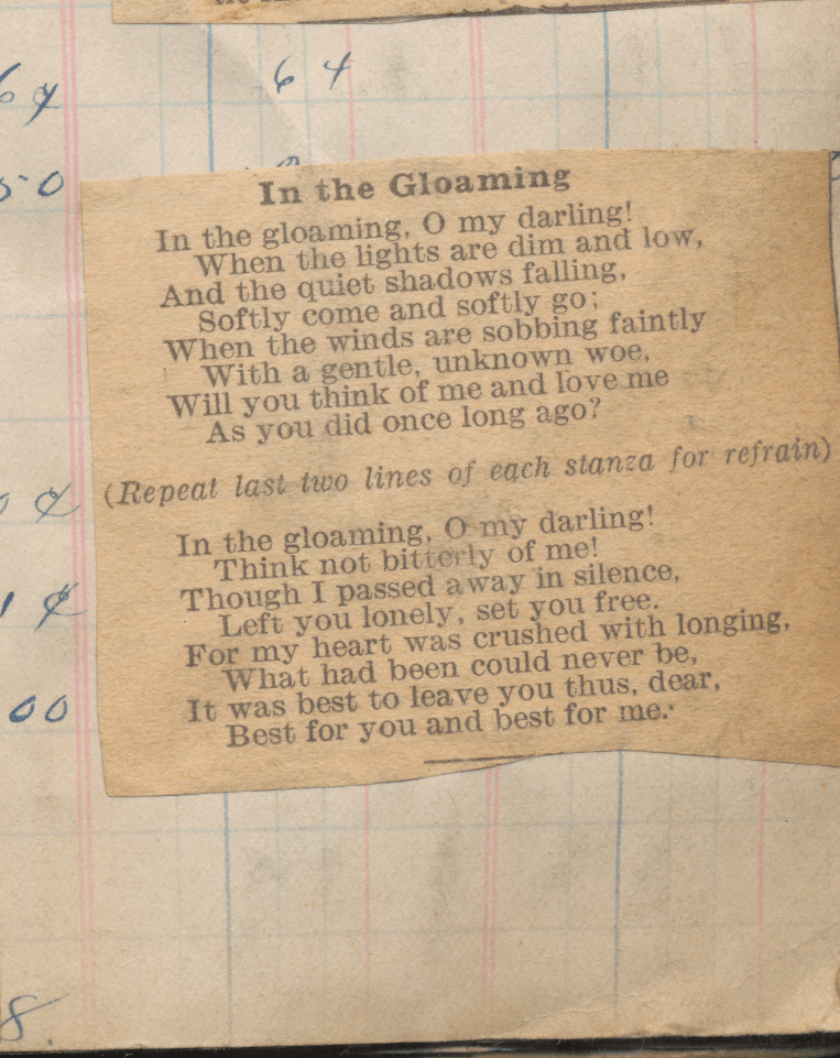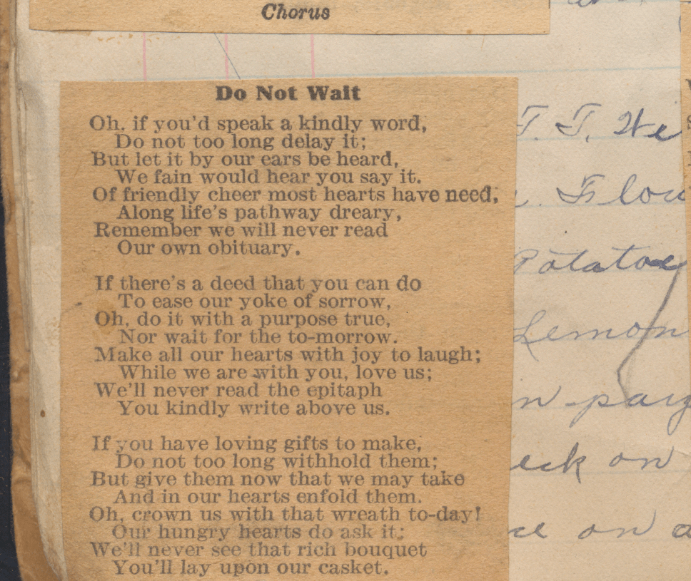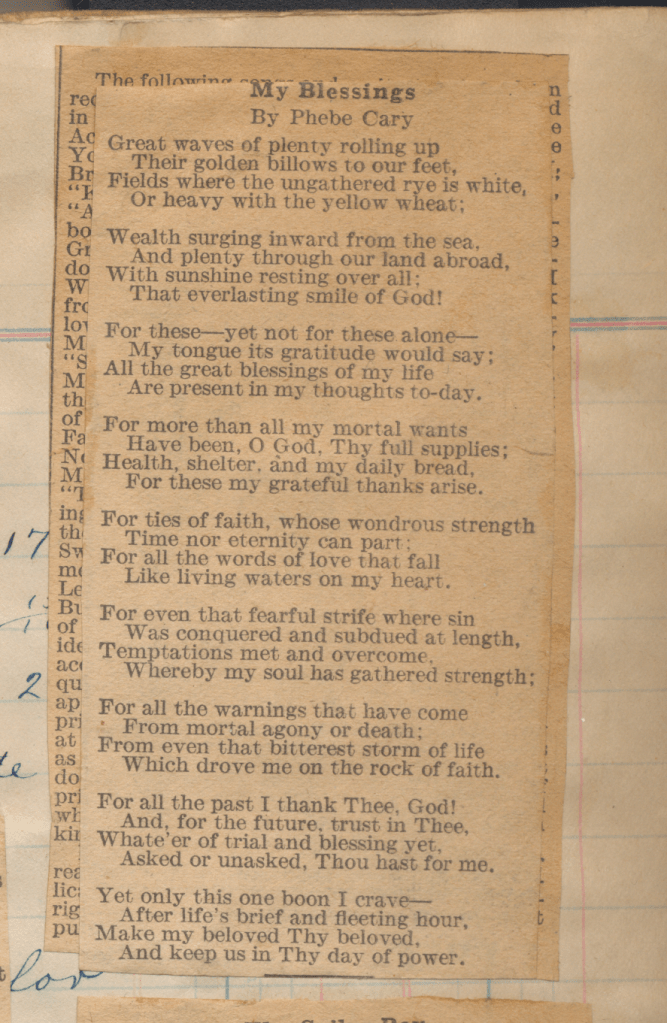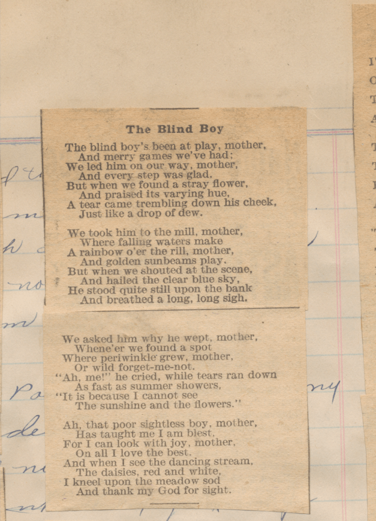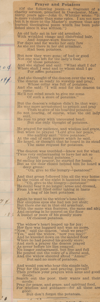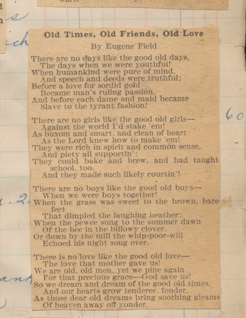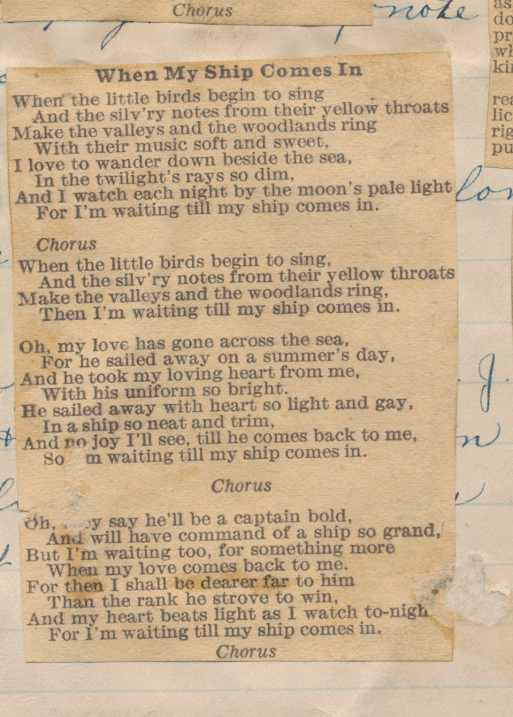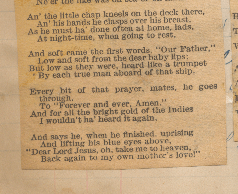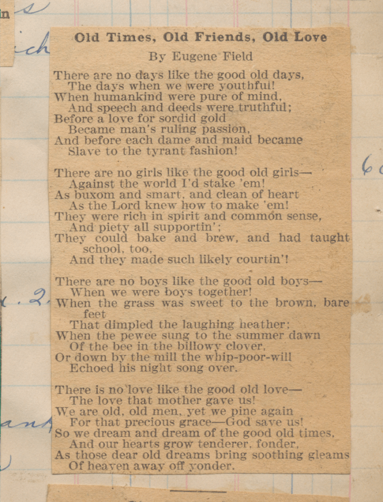 One can get a pretty good idea of what thoughts the person was immersed in when she cut this out of magazine, especially when the holidays were upon them and the individual was a mother. This particular piece and others like it were saved in a hand-written ledger. As you can see by other clippings, Cora has covered up the carefully written prices. Continues below