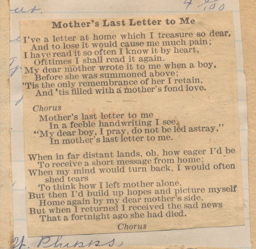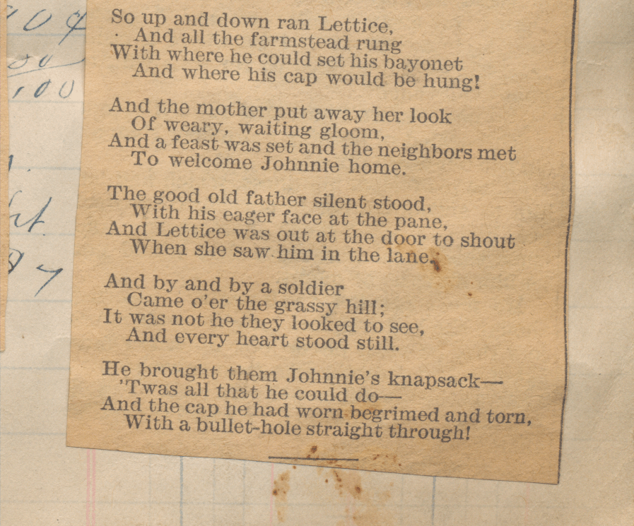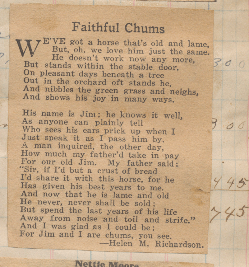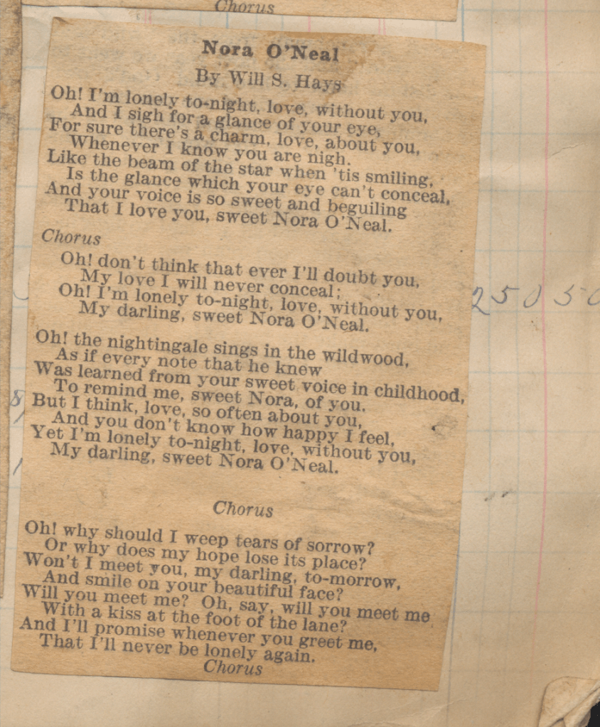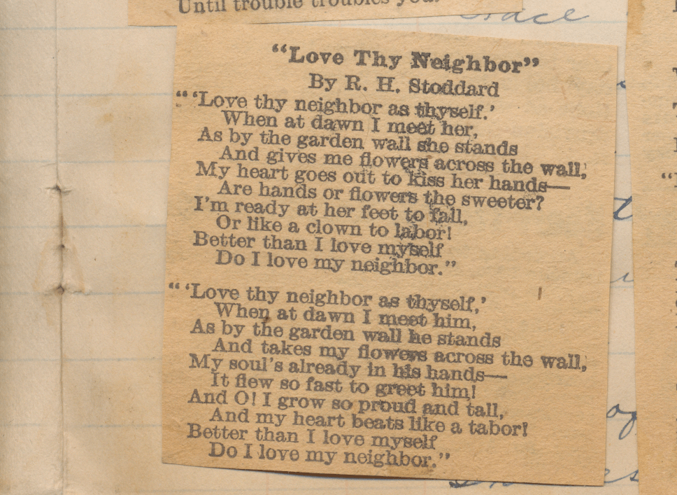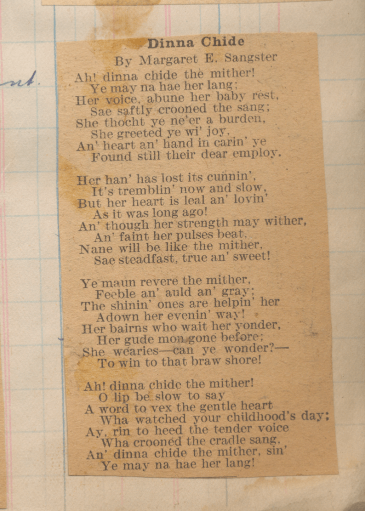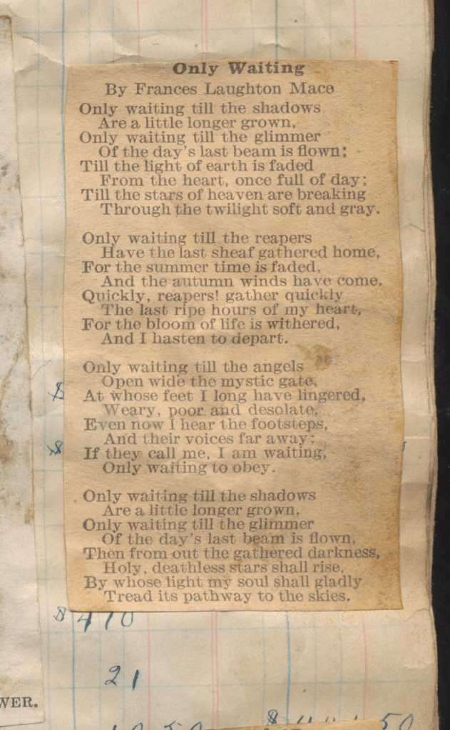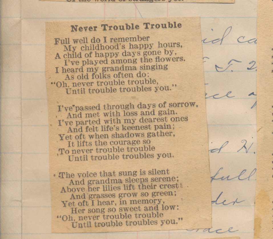 One can get a pretty good idea of what thoughts the person was immersed in when she cut this out of magazine, especially when the holidays were upon them and the individual was a mother. This particular piece and others like it were saved in a hand-written ledger. As you can see by other clippings, Cora has covered up the carefully written prices. Continues below