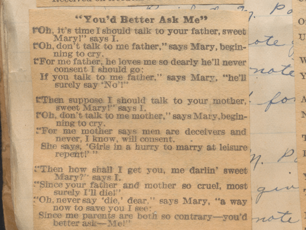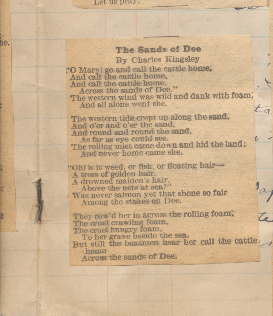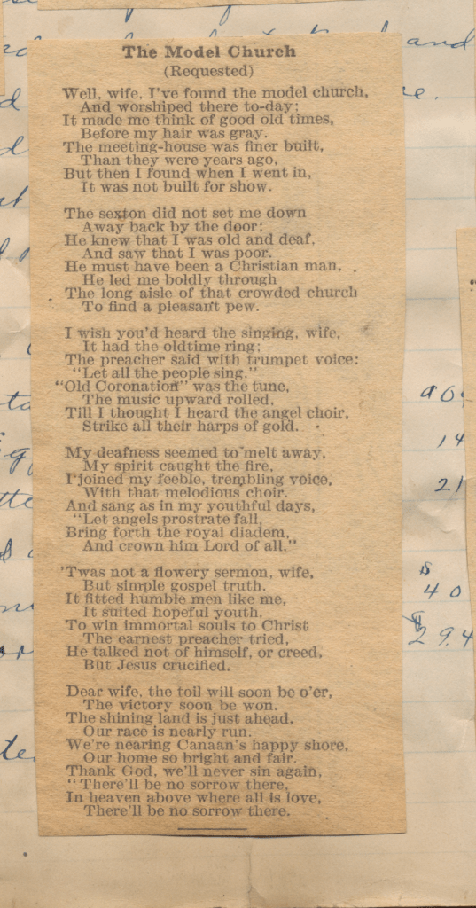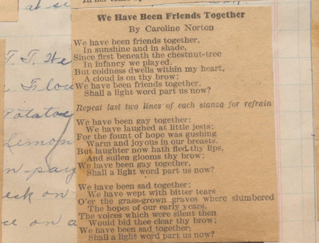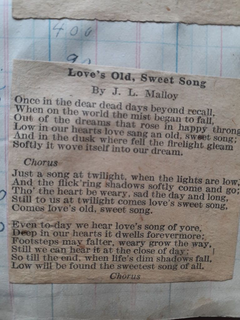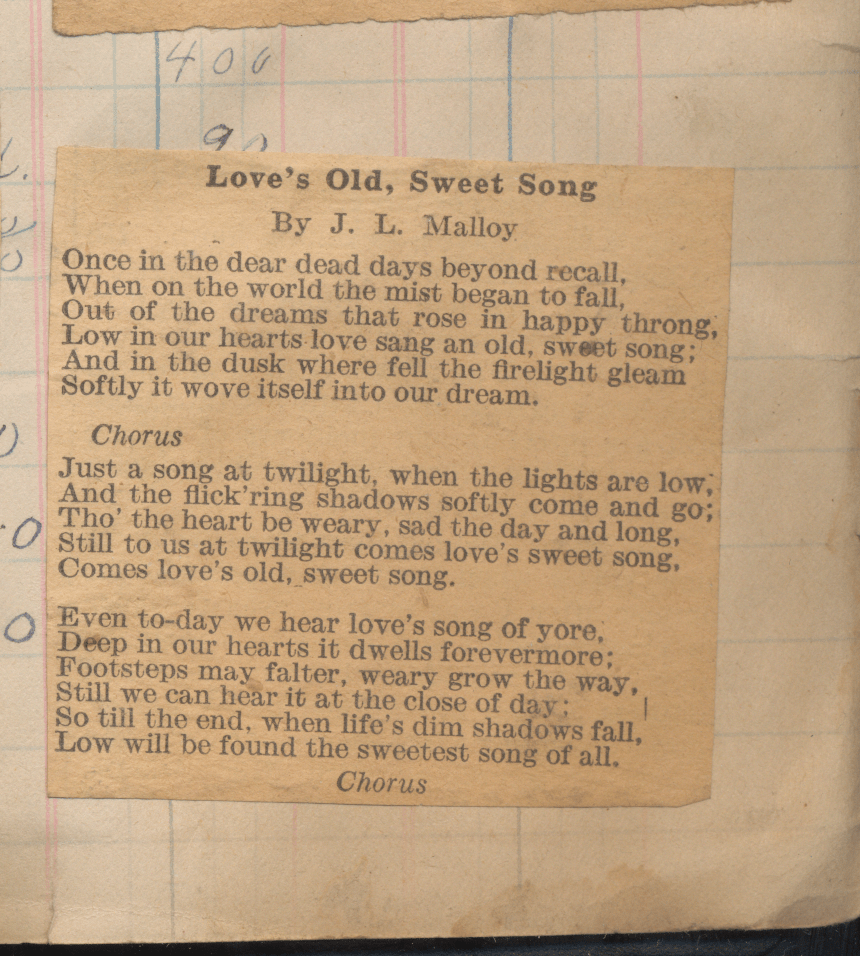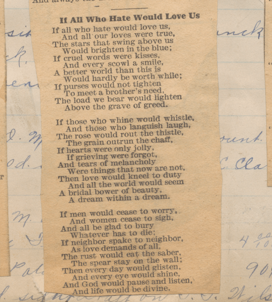 One can get a pretty good idea of what thoughts the person was immersed in when she cut this out of magazine, especially when the holidays were upon them and the individual was a mother. This particular piece and others like it were saved in a hand-written ledger. As you can see by other clippings, Cora has covered up the carefully written prices. Continues below