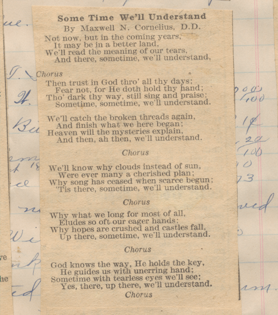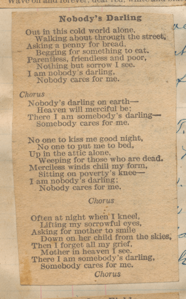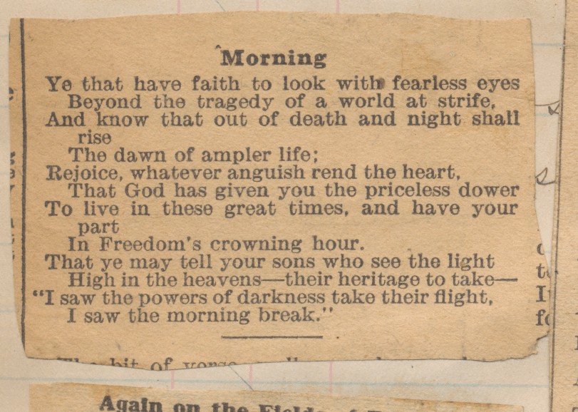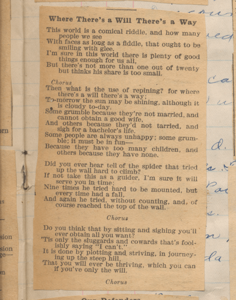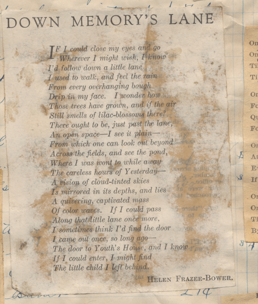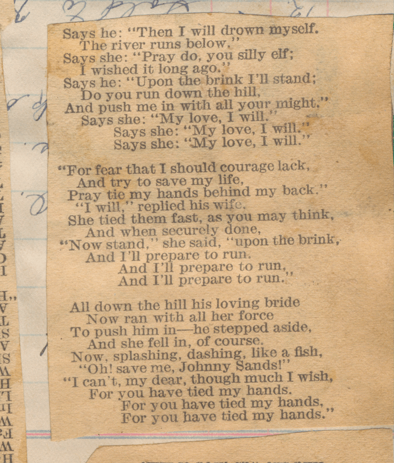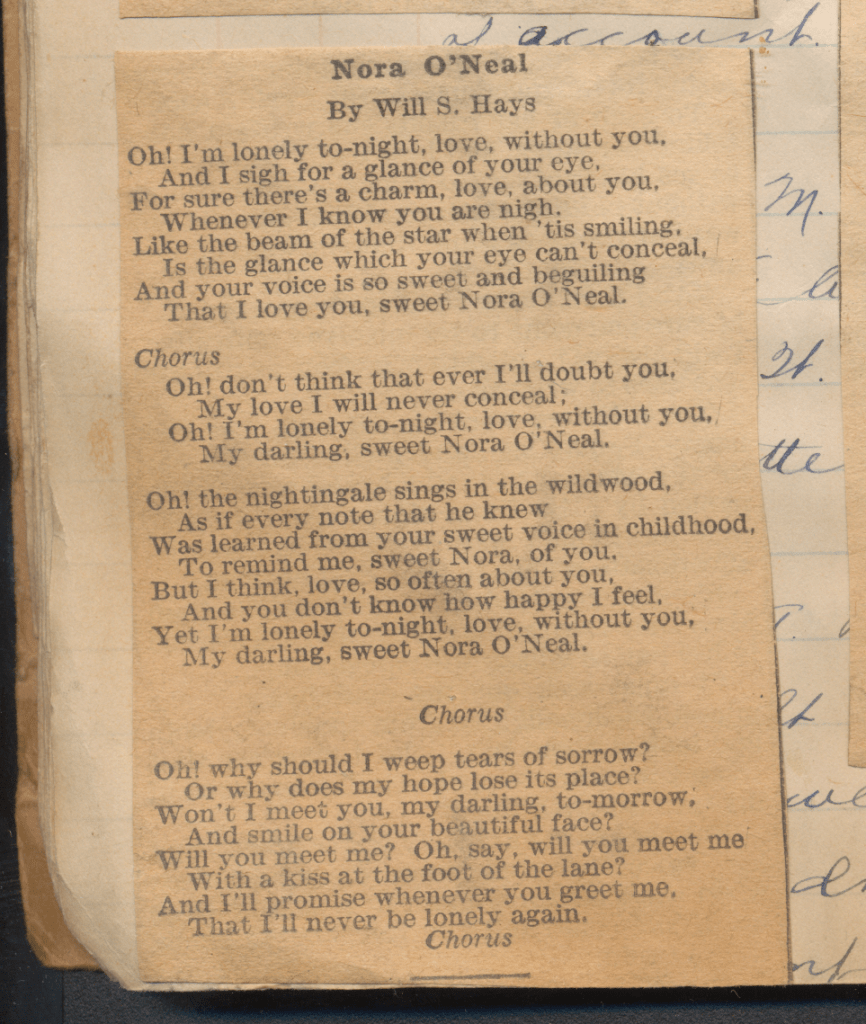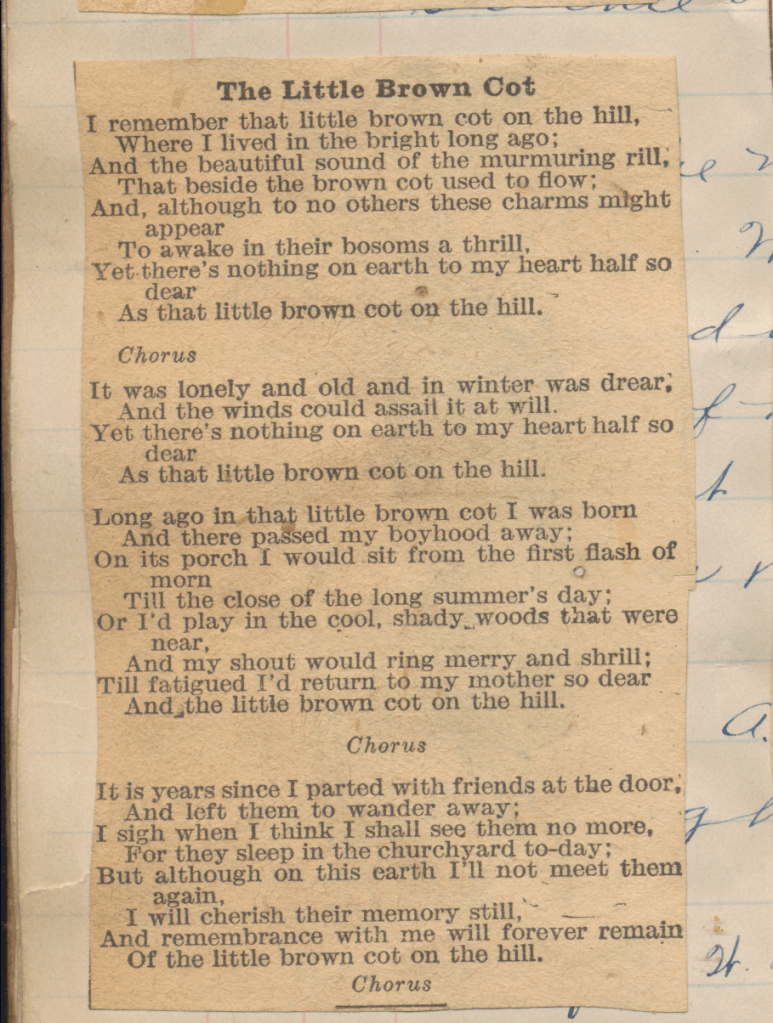 One can get a pretty good idea of what thoughts the person was immersed in when she cut this out of magazine, especially when the holidays were upon them and the individual was a mother. This particular piece and others like it were saved in a hand-written ledger. As you can see by other clippings, Cora has covered up the carefully written prices. Continues below