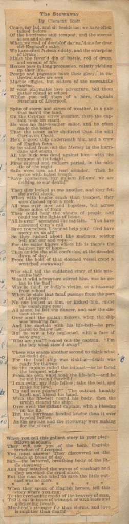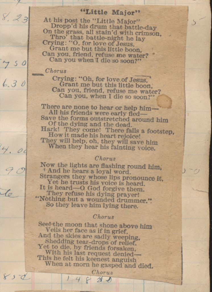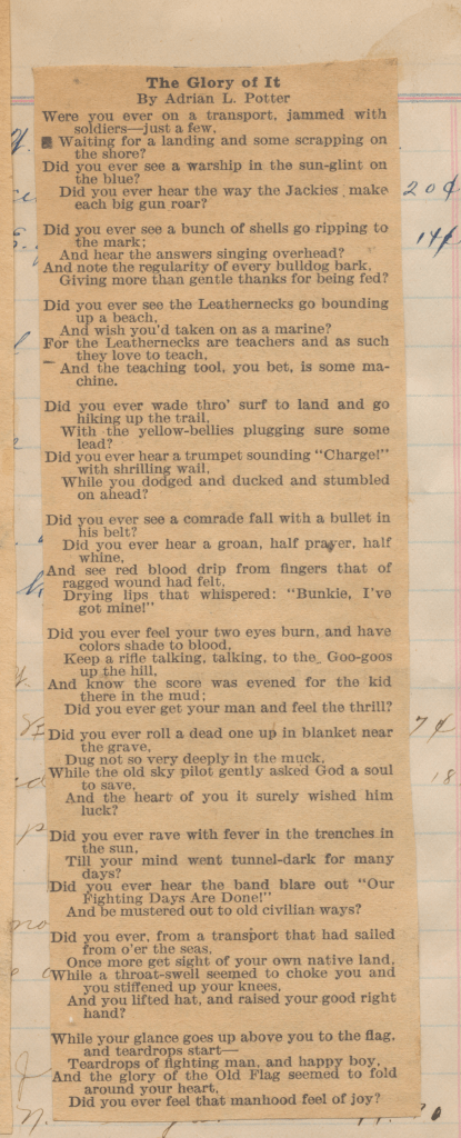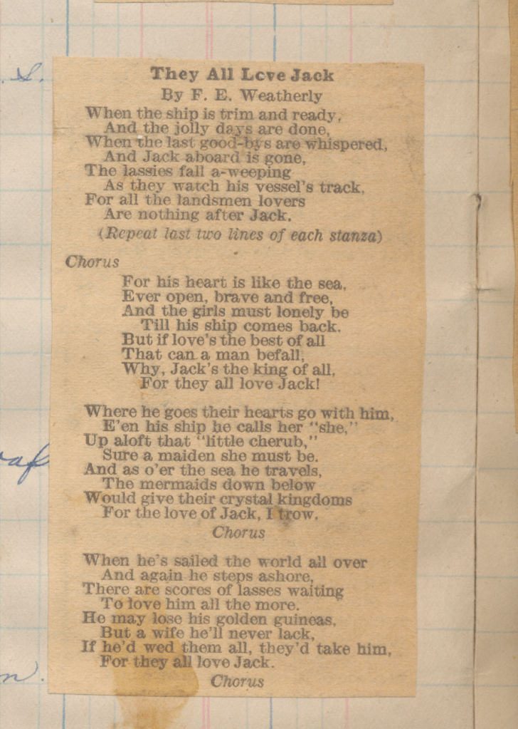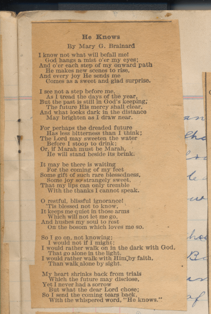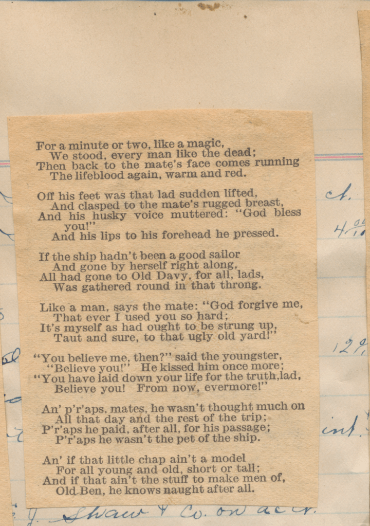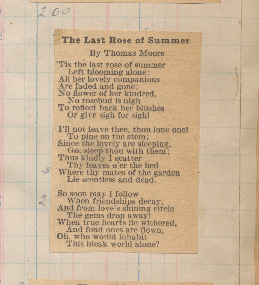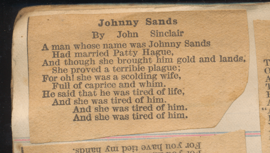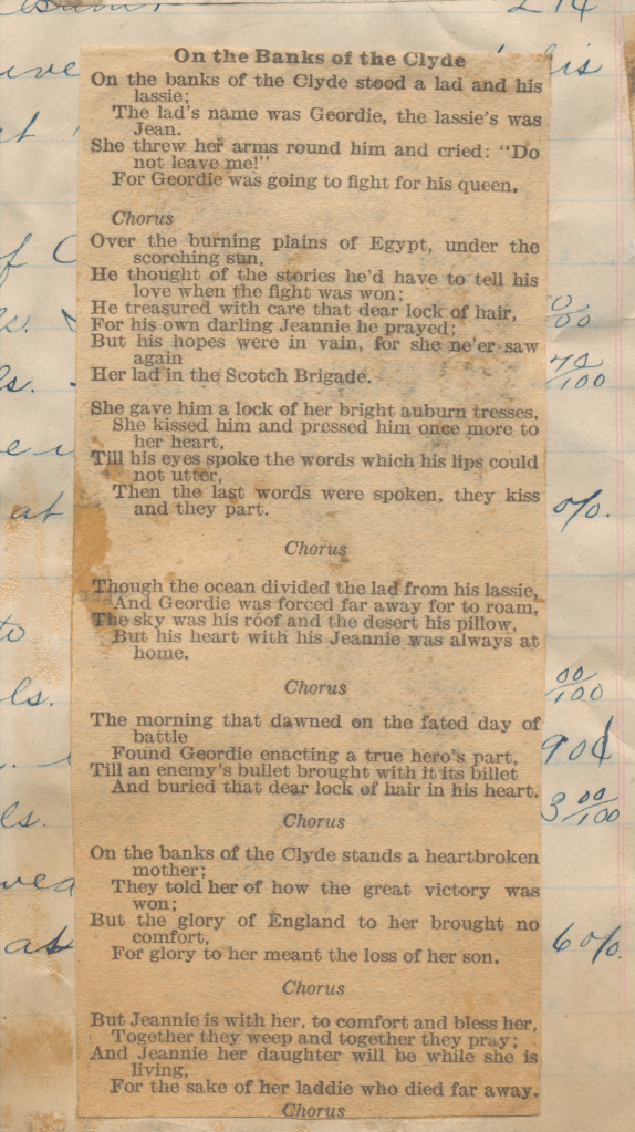 One can get a pretty good idea of what thoughts the person was immersed in when she cut this out of magazine, especially when the holidays were upon them and the individual was a mother. This particular piece and others like it were saved in a hand-written ledger. As you can see by other clippings, Cora has covered up the carefully written prices. Continues below