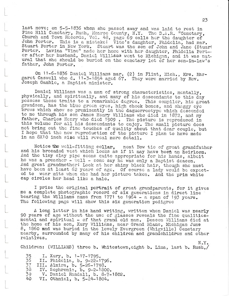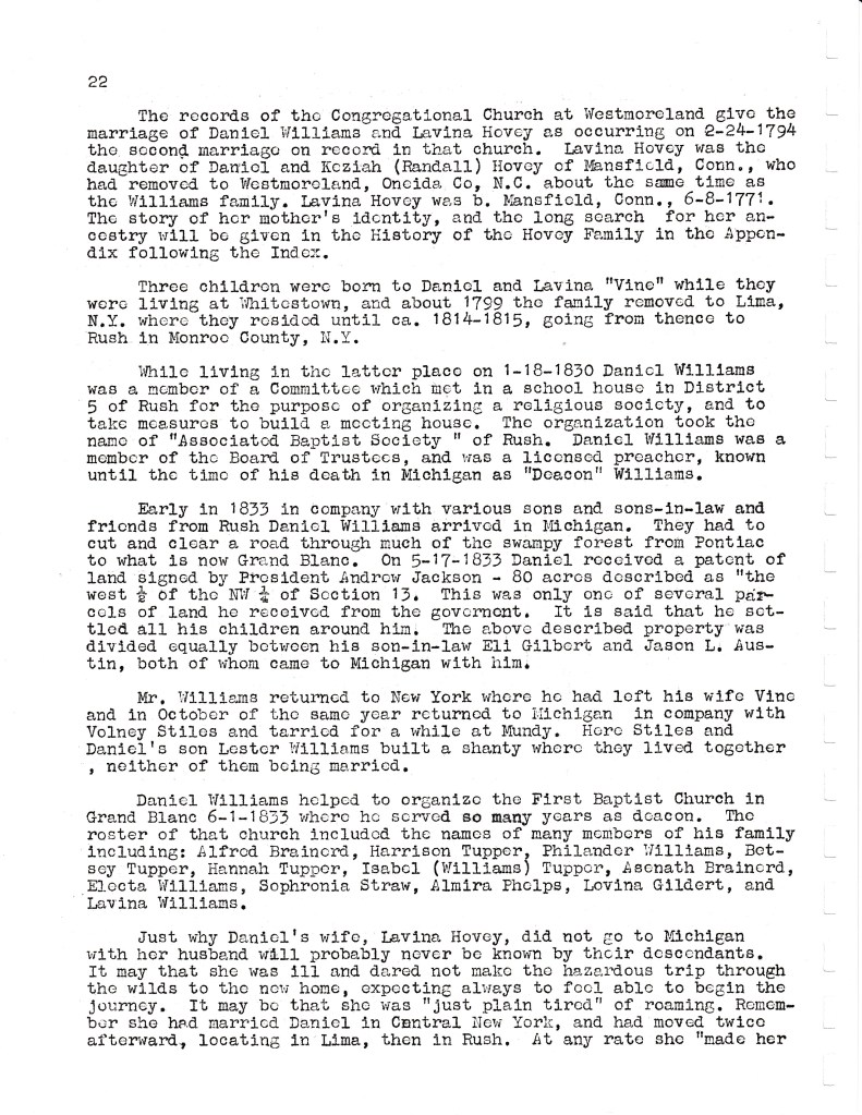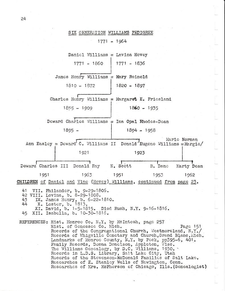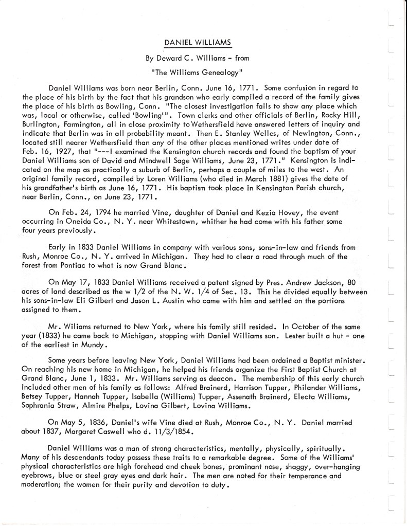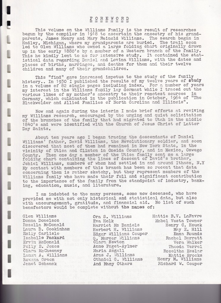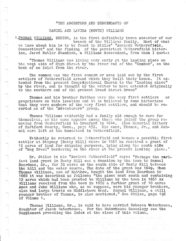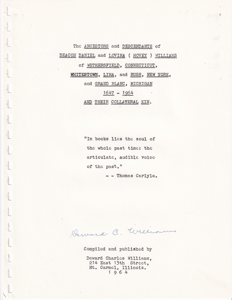 The ancestors and descendants of Daniel & Lovina Hovey Williams of Wethersfield, Connecticut, Whitestown, Lima and Rush, New York, and Grand Blanc, Michigan 1647-1964 and collateral kin.