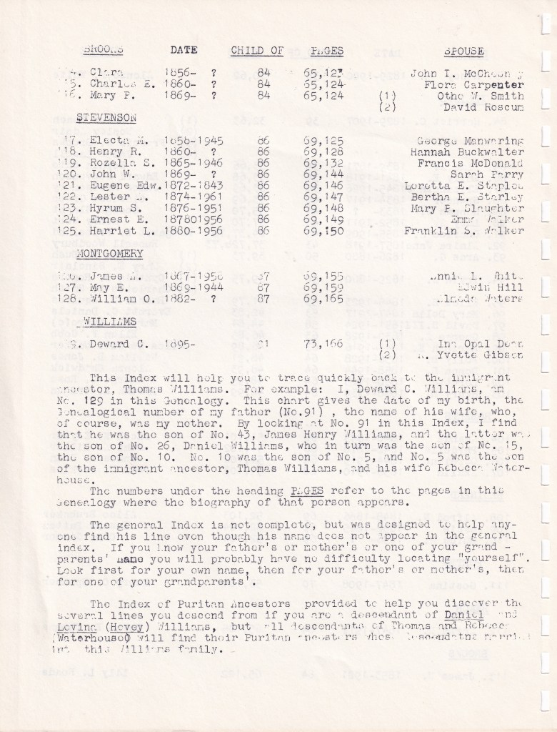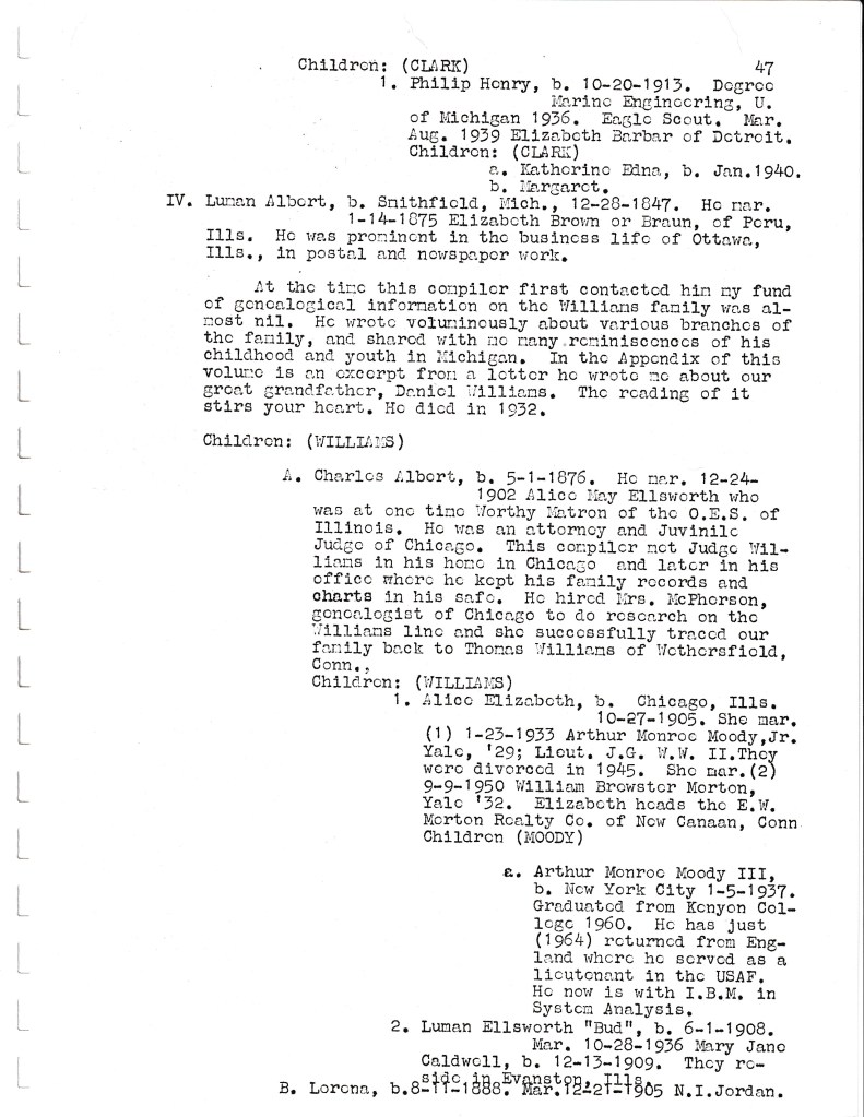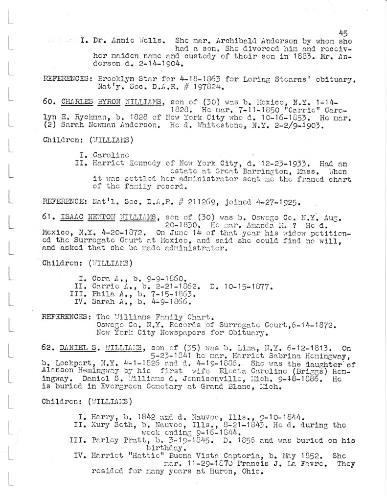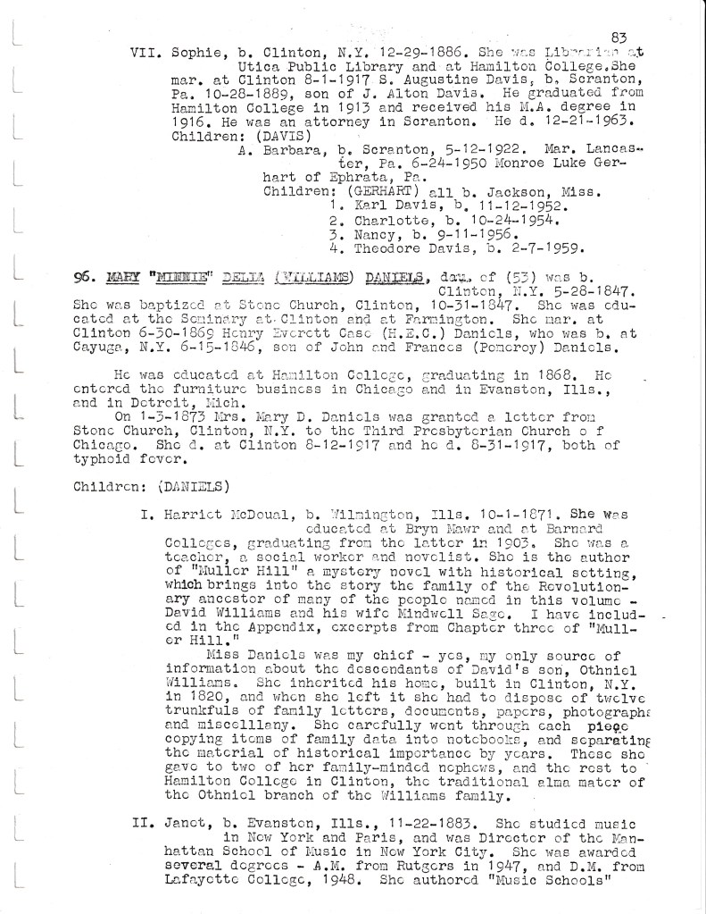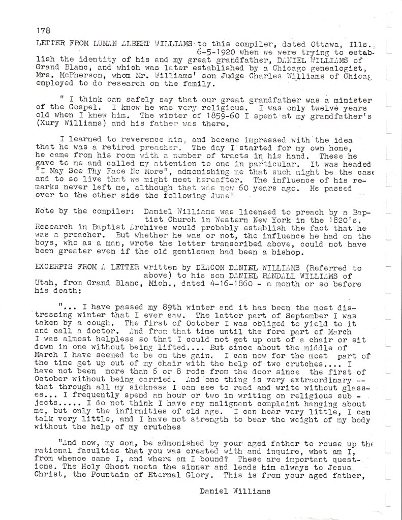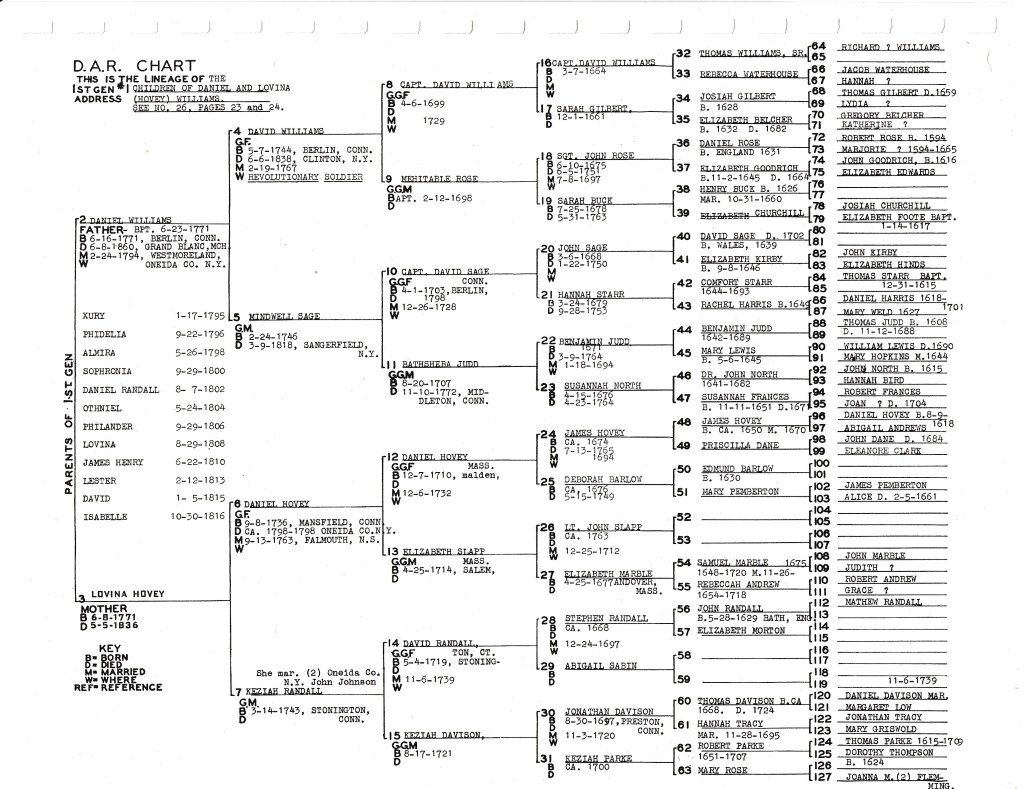 The ancestors and descendants of Daniel & Lovina Hovey Williams of Wethersfield, Connecticut, Whitestown, Lima and Rush, New York, and Grand Blanc, Michigan 1647-1964 and collateral kin.