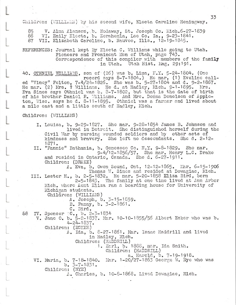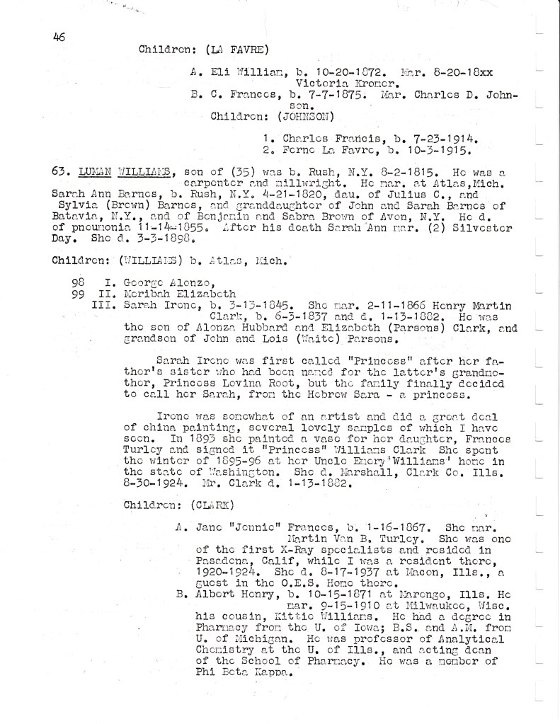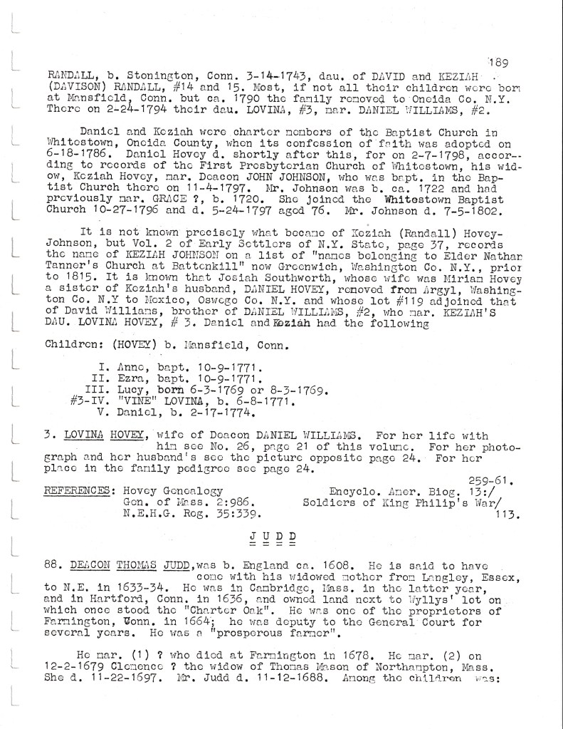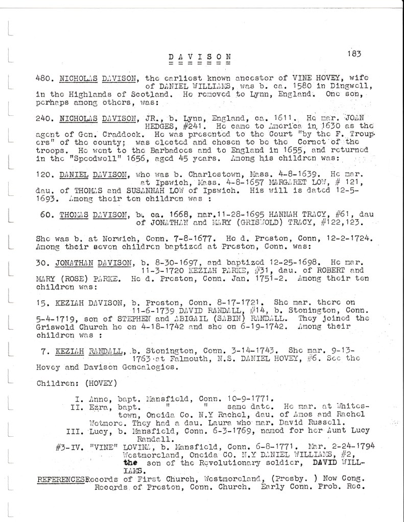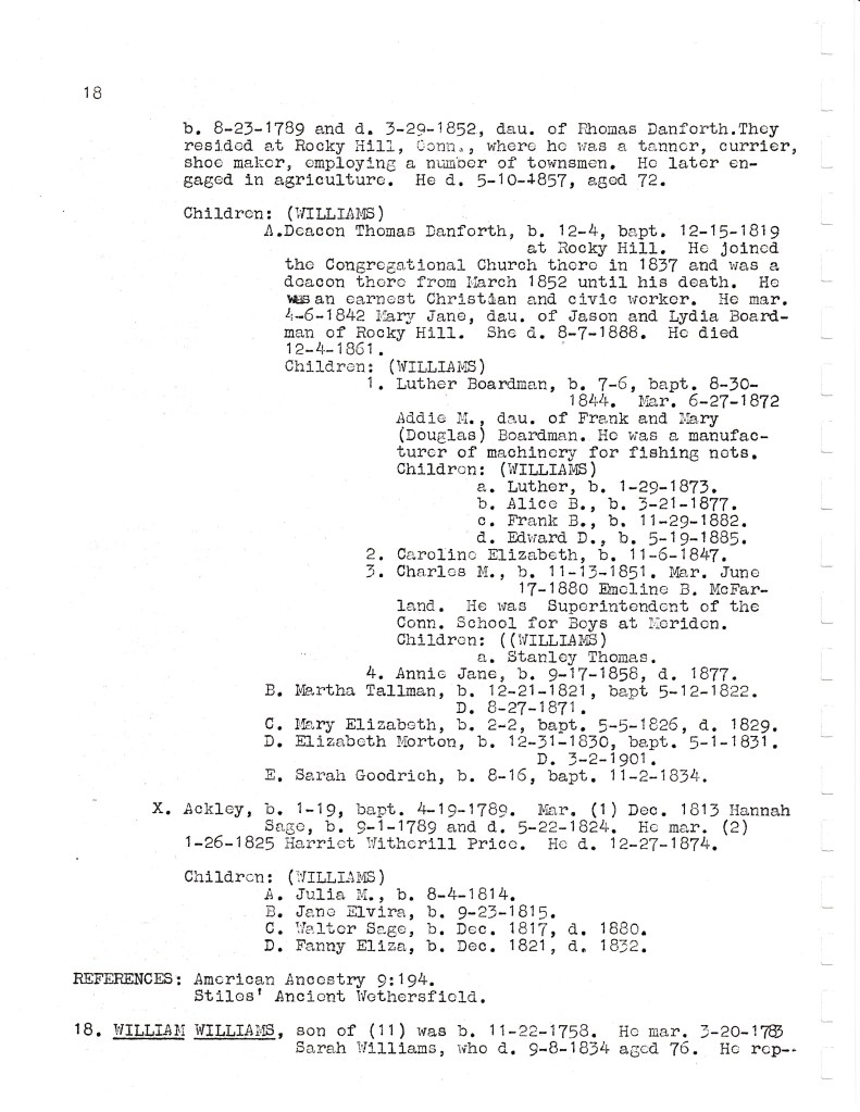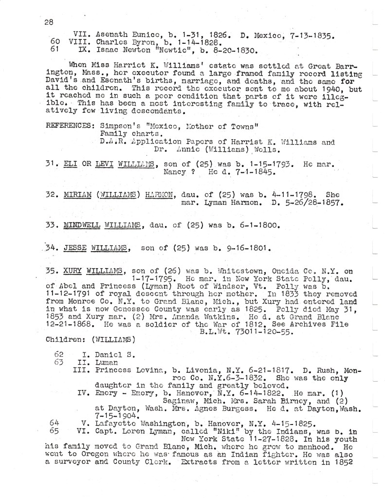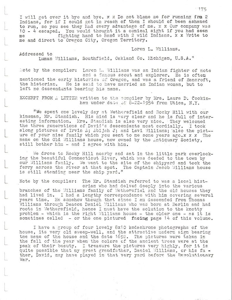 The ancestors and descendants of Daniel & Lovina Hovey Williams of Wethersfield, Connecticut, Whitestown, Lima and Rush, New York, and Grand Blanc, Michigan 1647-1964 and collateral kin.