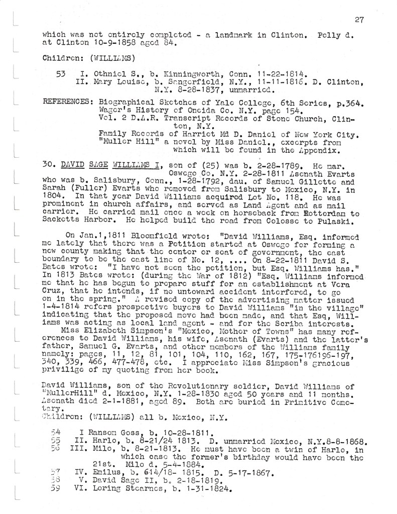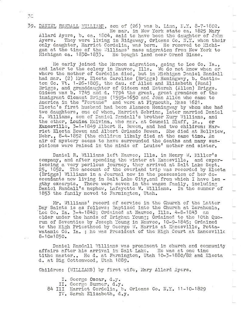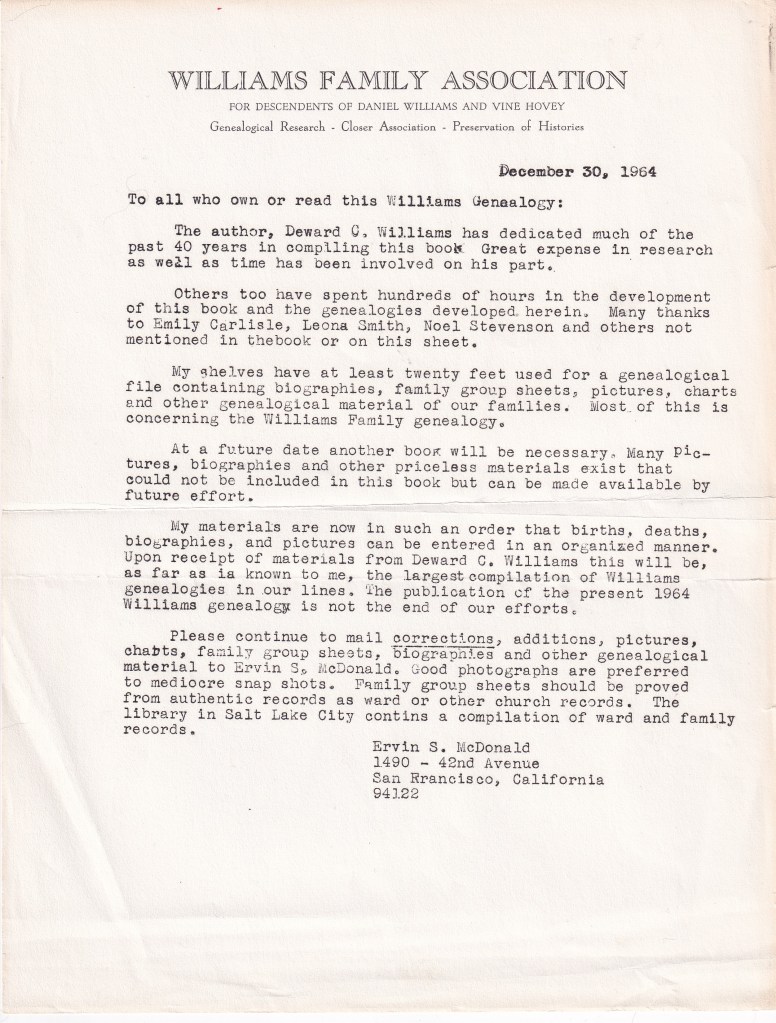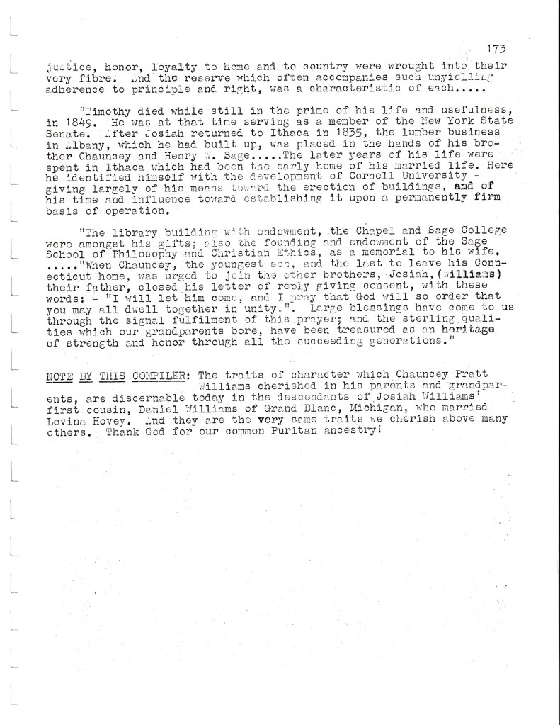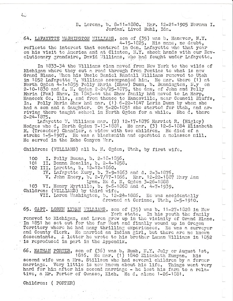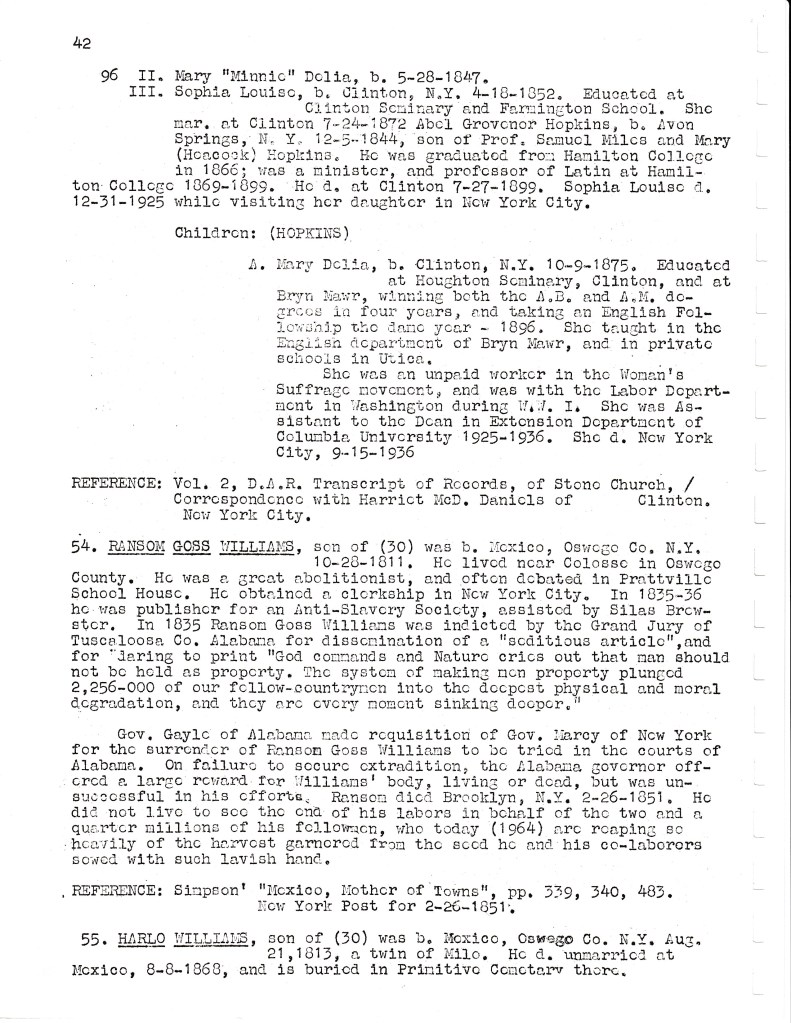 The ancestors and descendants of Daniel & Lovina Hovey Williams of Wethersfield, Connecticut, Whitestown, Lima and Rush, New York, and Grand Blanc, Michigan 1647-1964 and collateral kin.