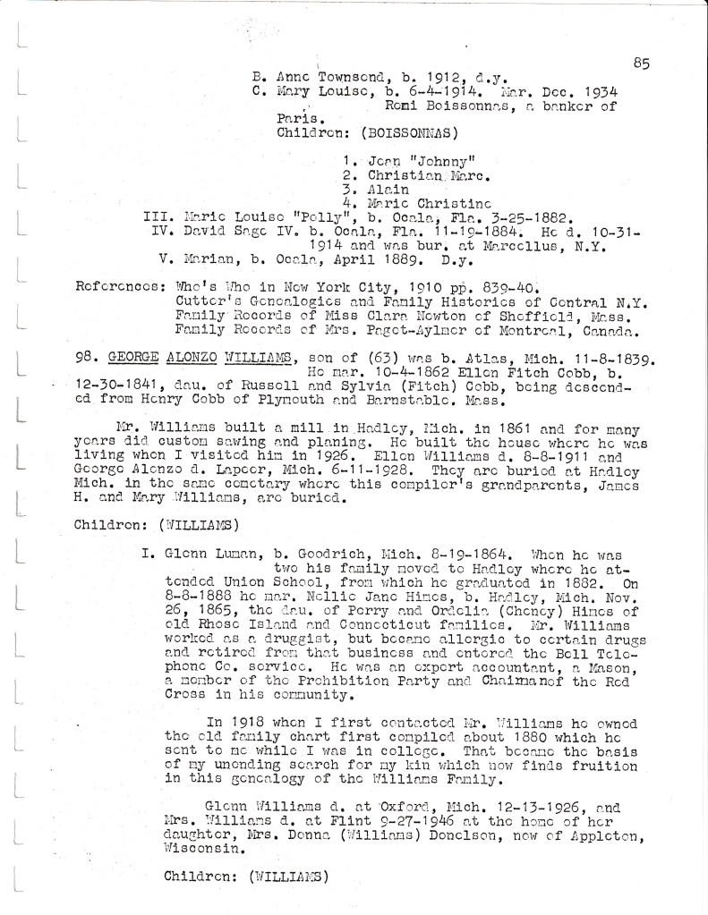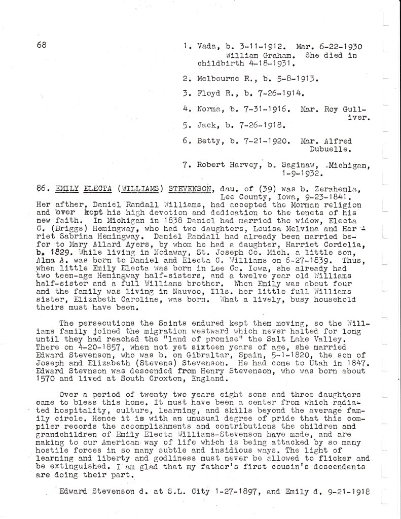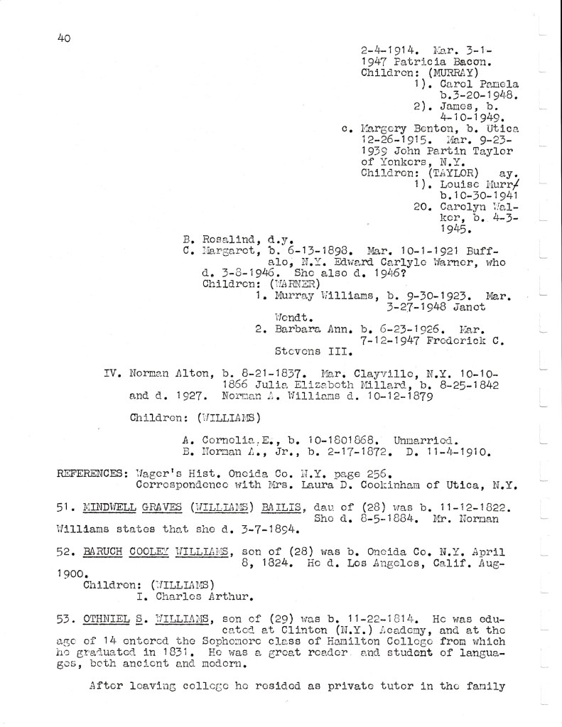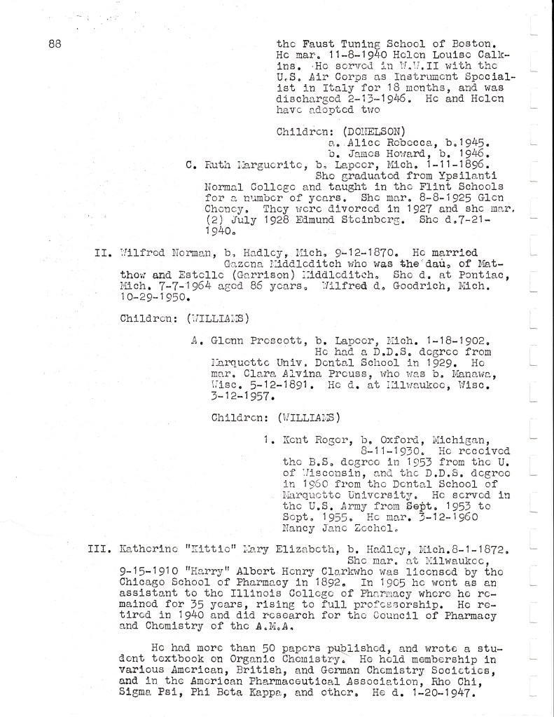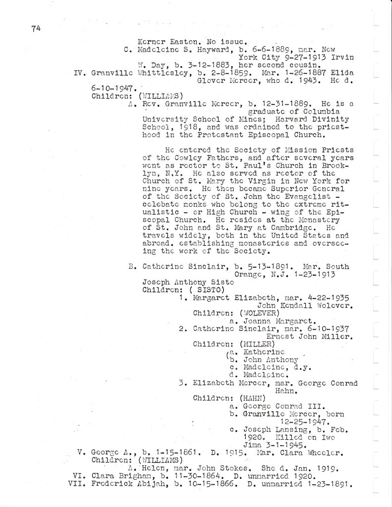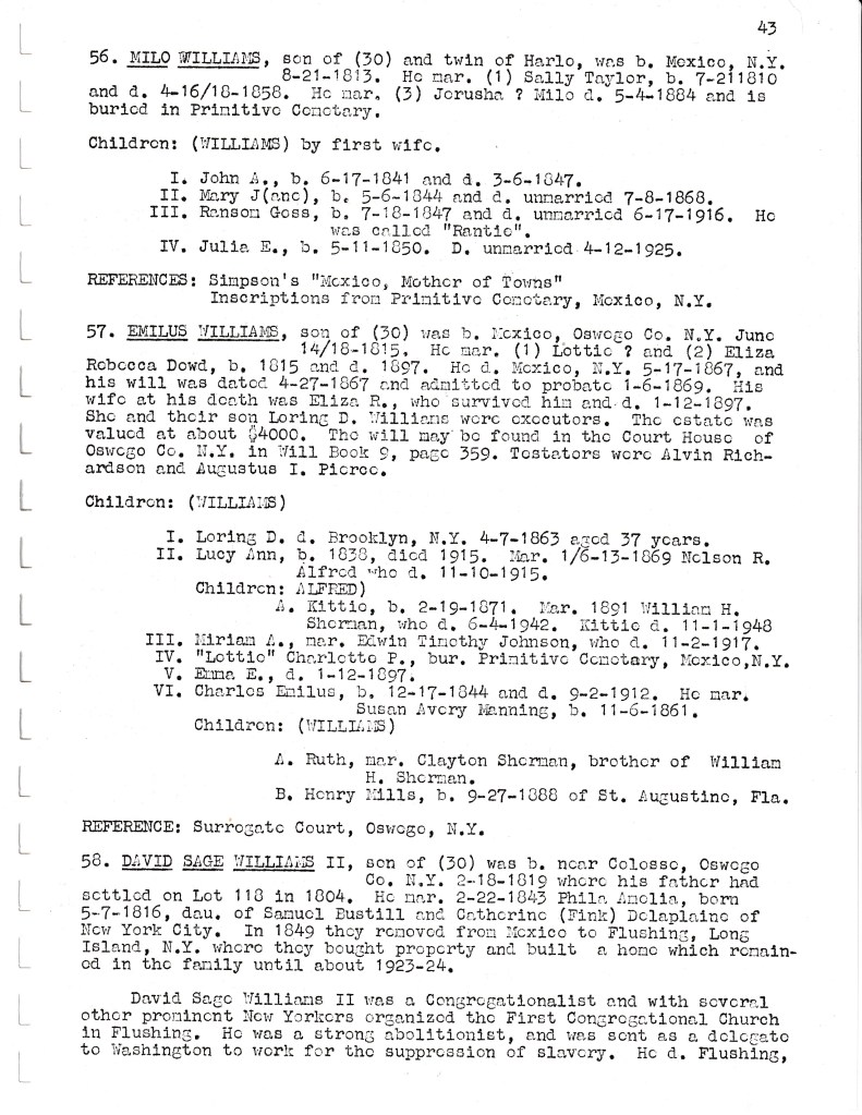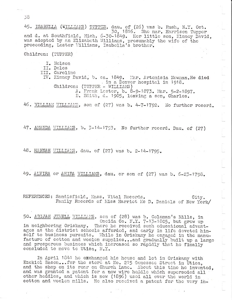The ancestors and descendants of Daniel & Lovina Hovey Williams of Wethersfield, Connecticut, Whitestown, Lima and Rush, New York, and Grand Blanc, Michigan 1647-1964 and collateral kin.