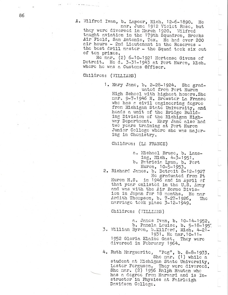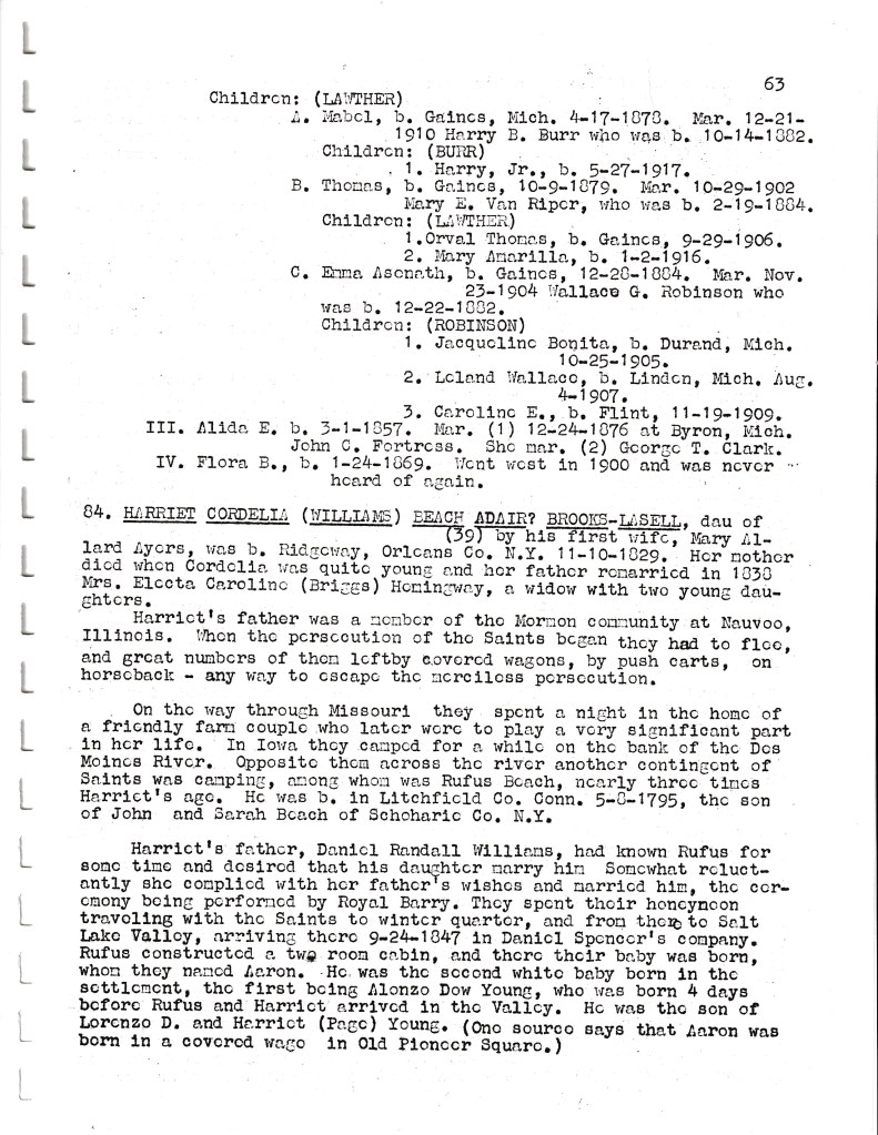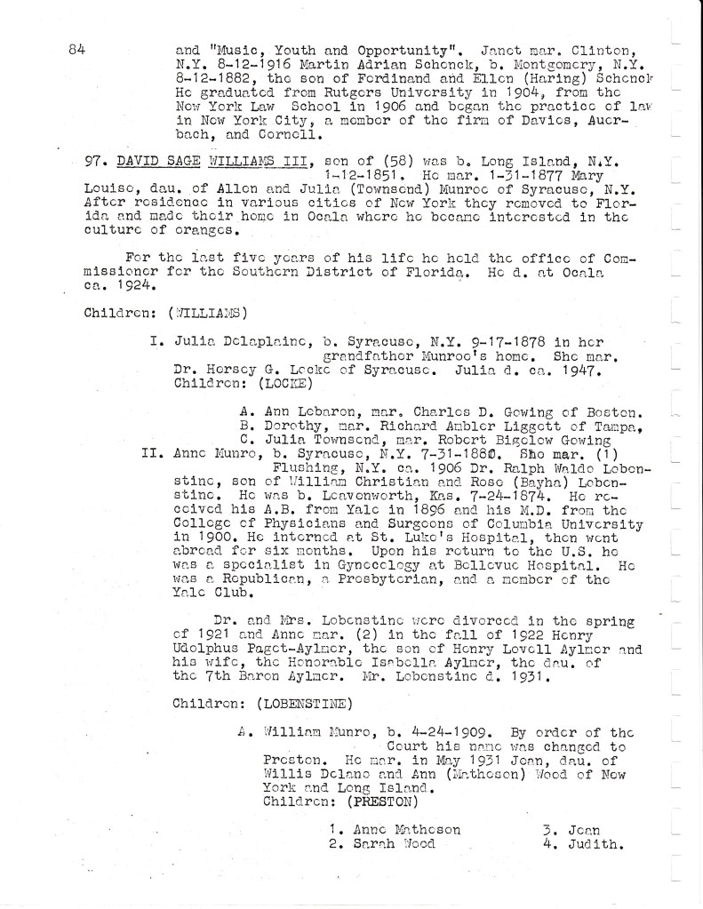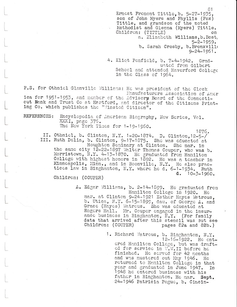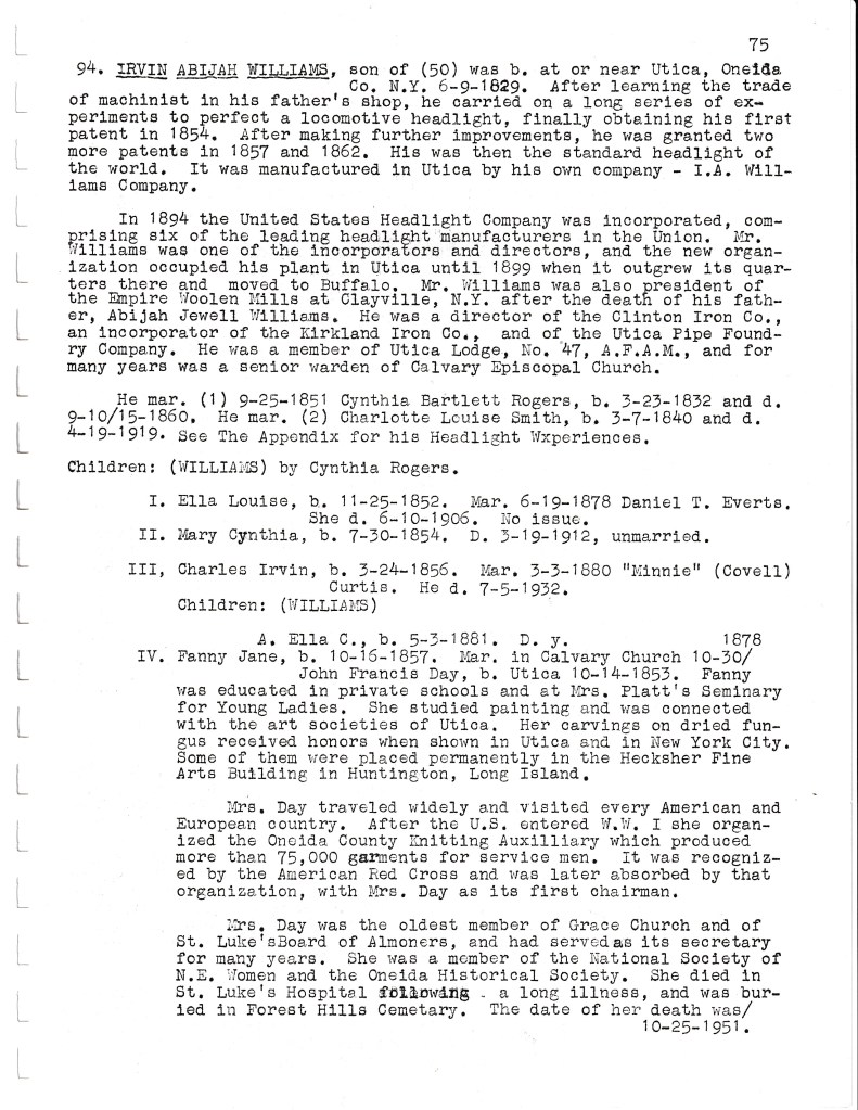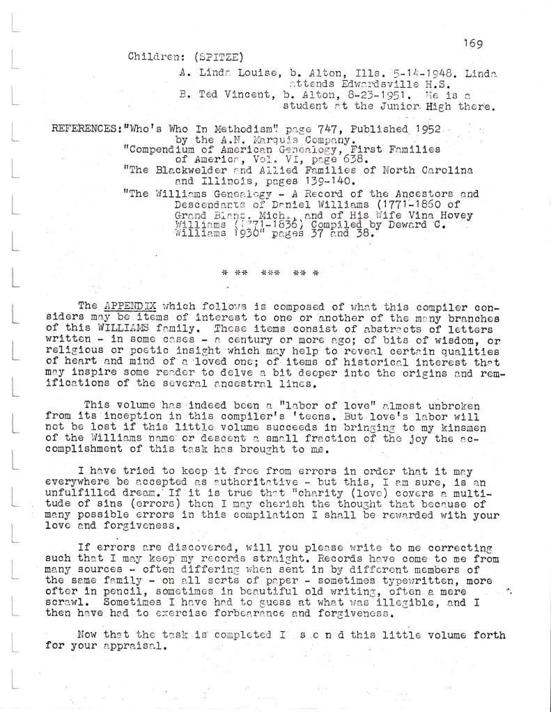 The ancestors and descendants of Daniel & Lovina Hovey Williams of Wethersfield, Connecticut, Whitestown, Lima and Rush, New York, and Grand Blanc, Michigan 1647-1964 and collateral kin.