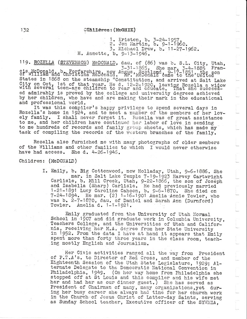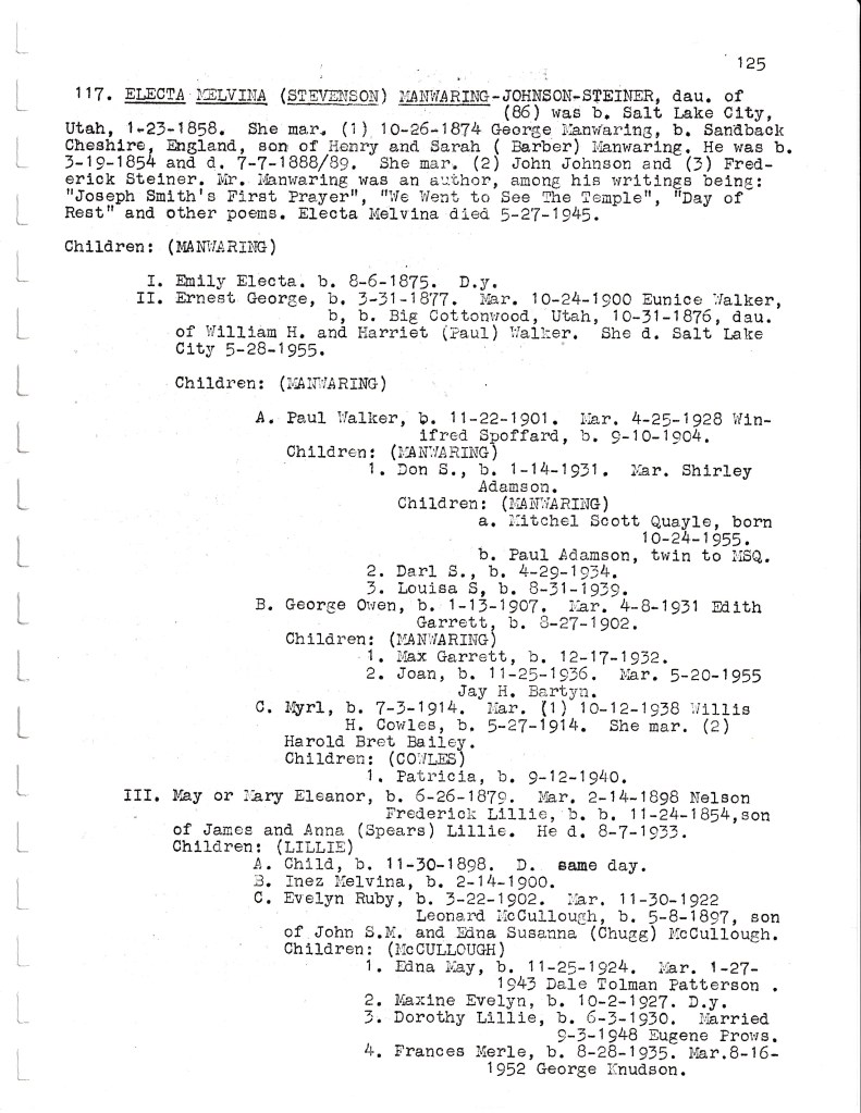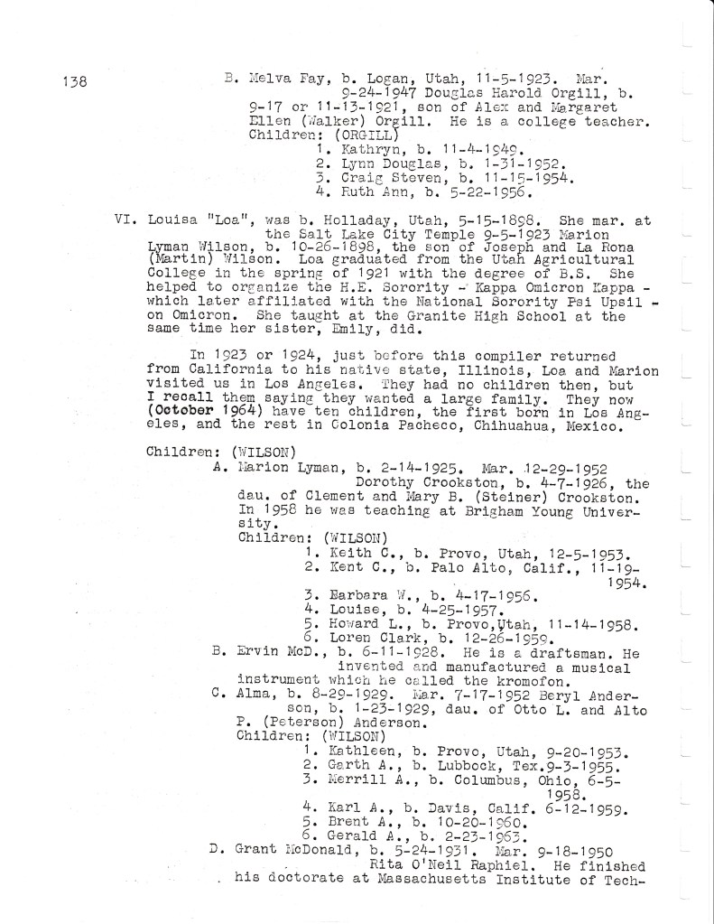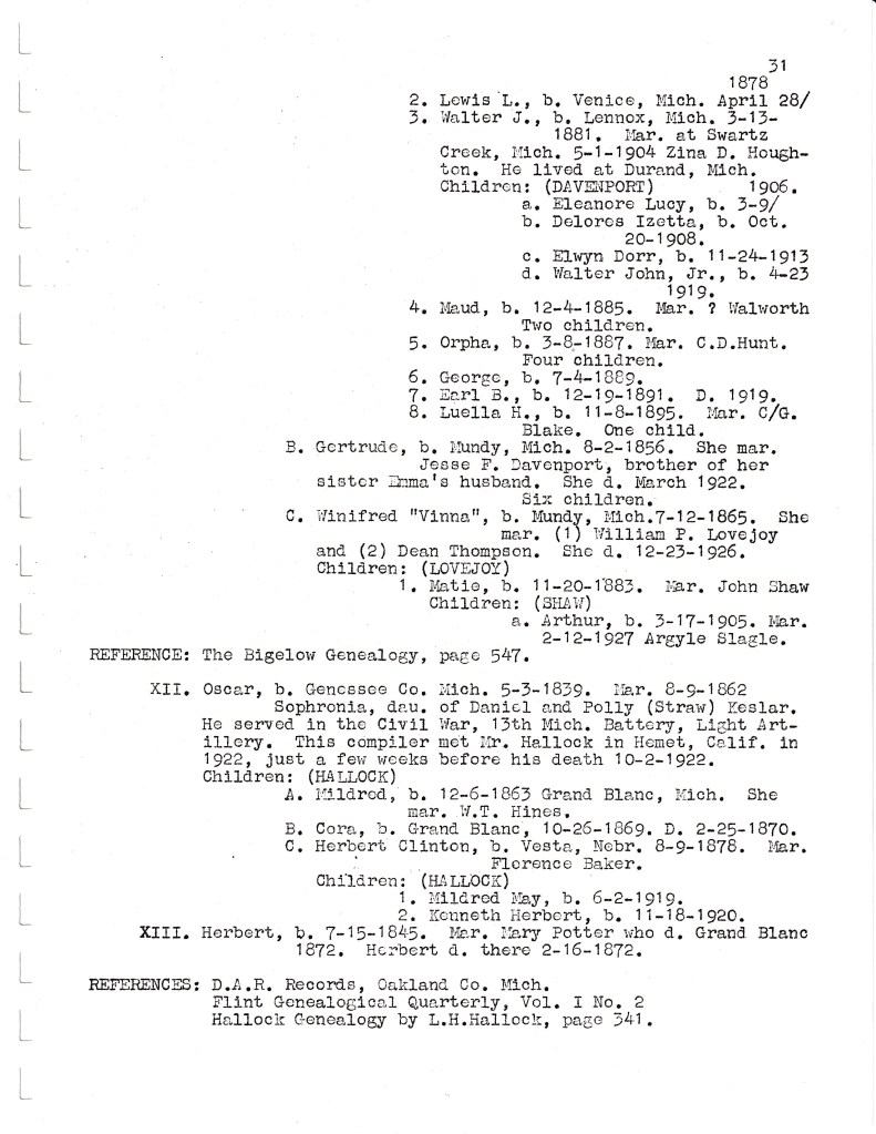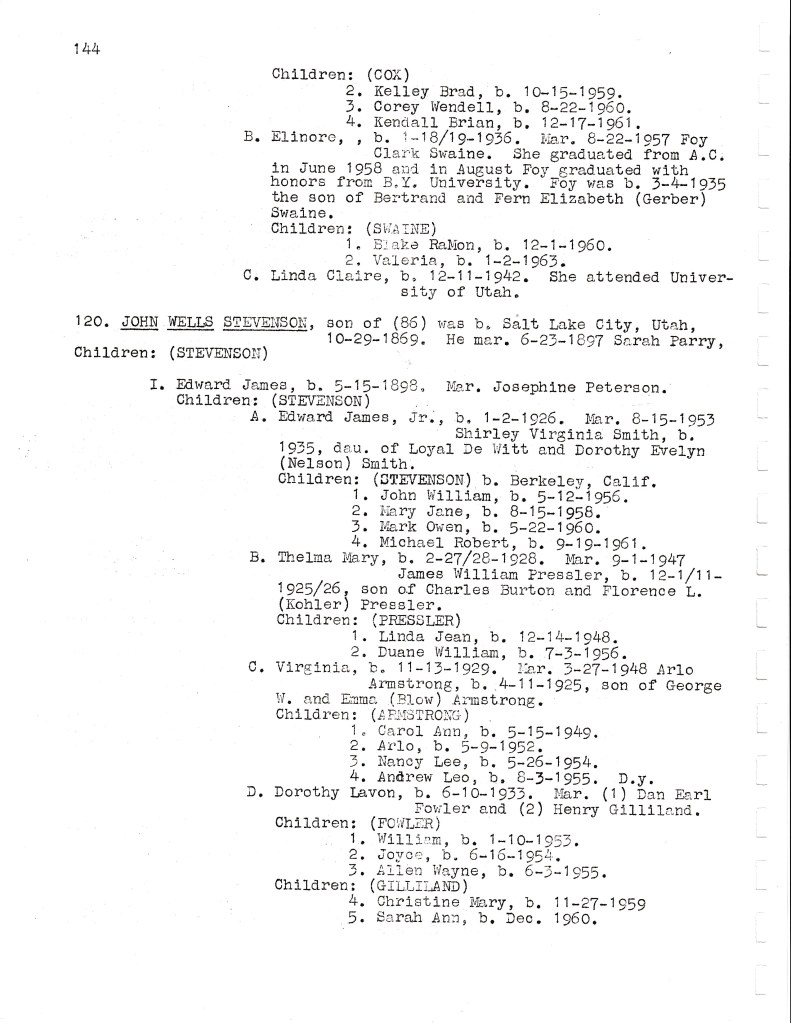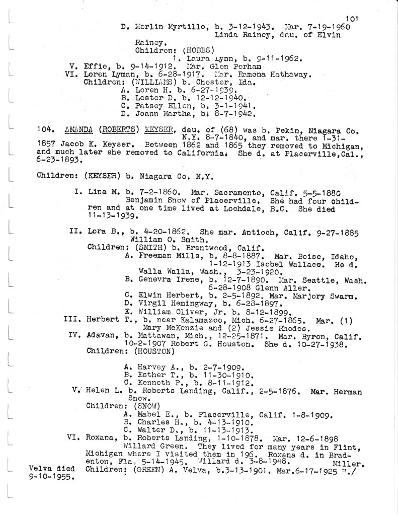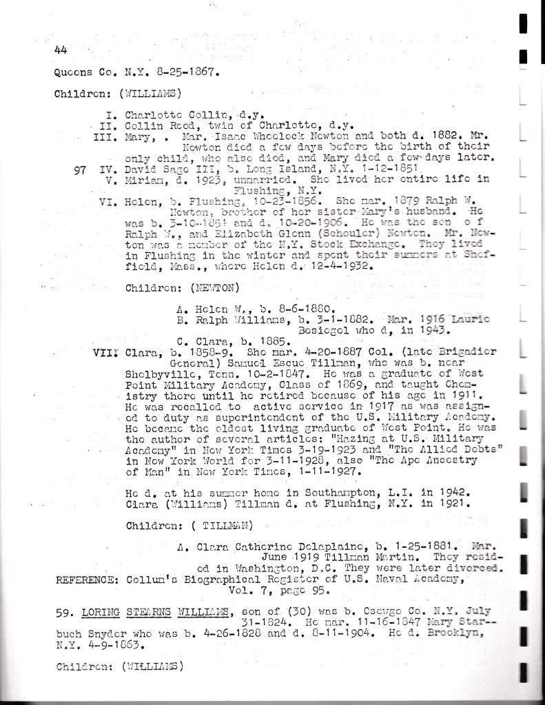 The ancestors and descendants of Daniel & Lovina Hovey Williams of Wethersfield, Connecticut, Whitestown, Lima and Rush, New York, and Grand Blanc, Michigan 1647-1964 and collateral kin.