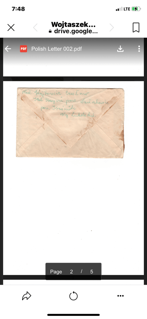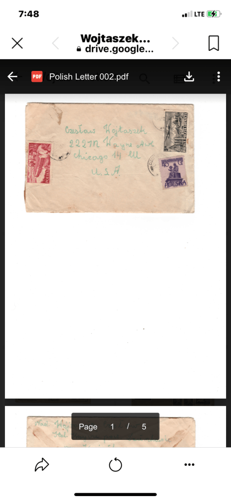 A group of old family letters that I am looking to return to family or if not, to donate to an organization like a Polish immigrant museum or genealogical organization. I have already scanned and uploaded them to FamilySearch, Ancestry & a public Google Drive folder. The recipient is Tomasz Wojtaszek of Chicago in the 40s & 50s. Addresses can be seen on the scans in the linked Google Drive Folder. The Polish Museum in Chicago had no interest in them.